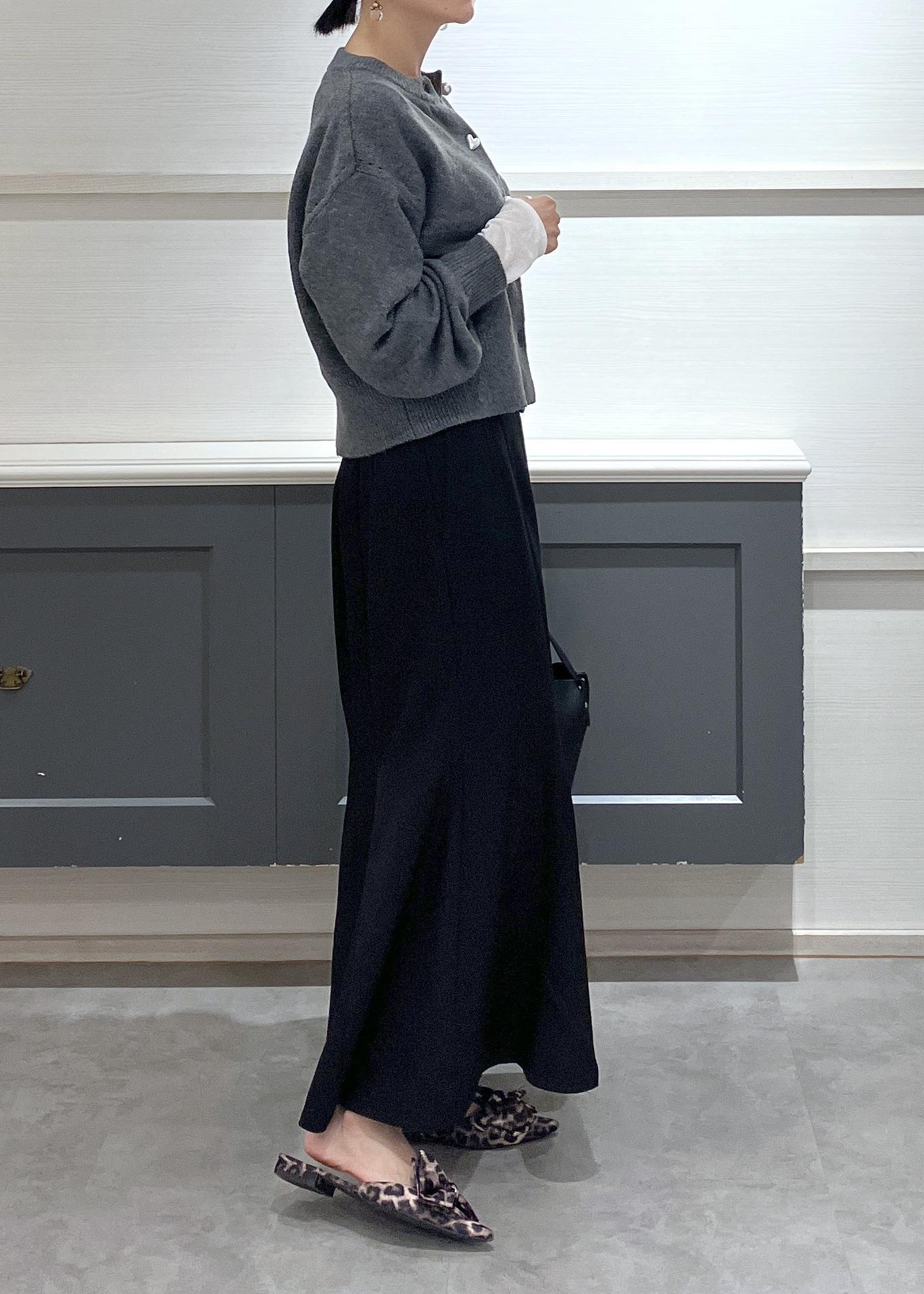 ファンシーなカーディガンもグレーのワントーンコーデなら大人でも着れましたよ〜♩