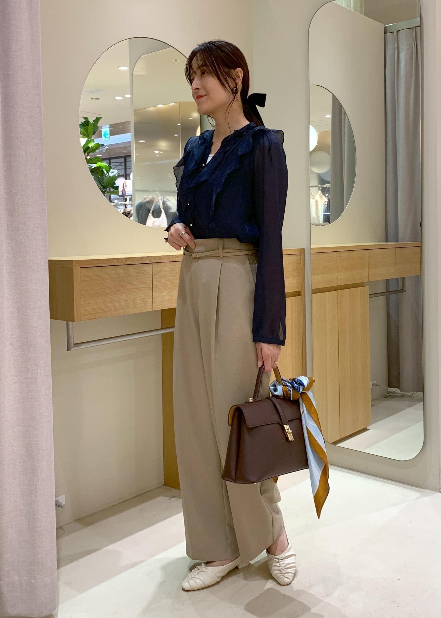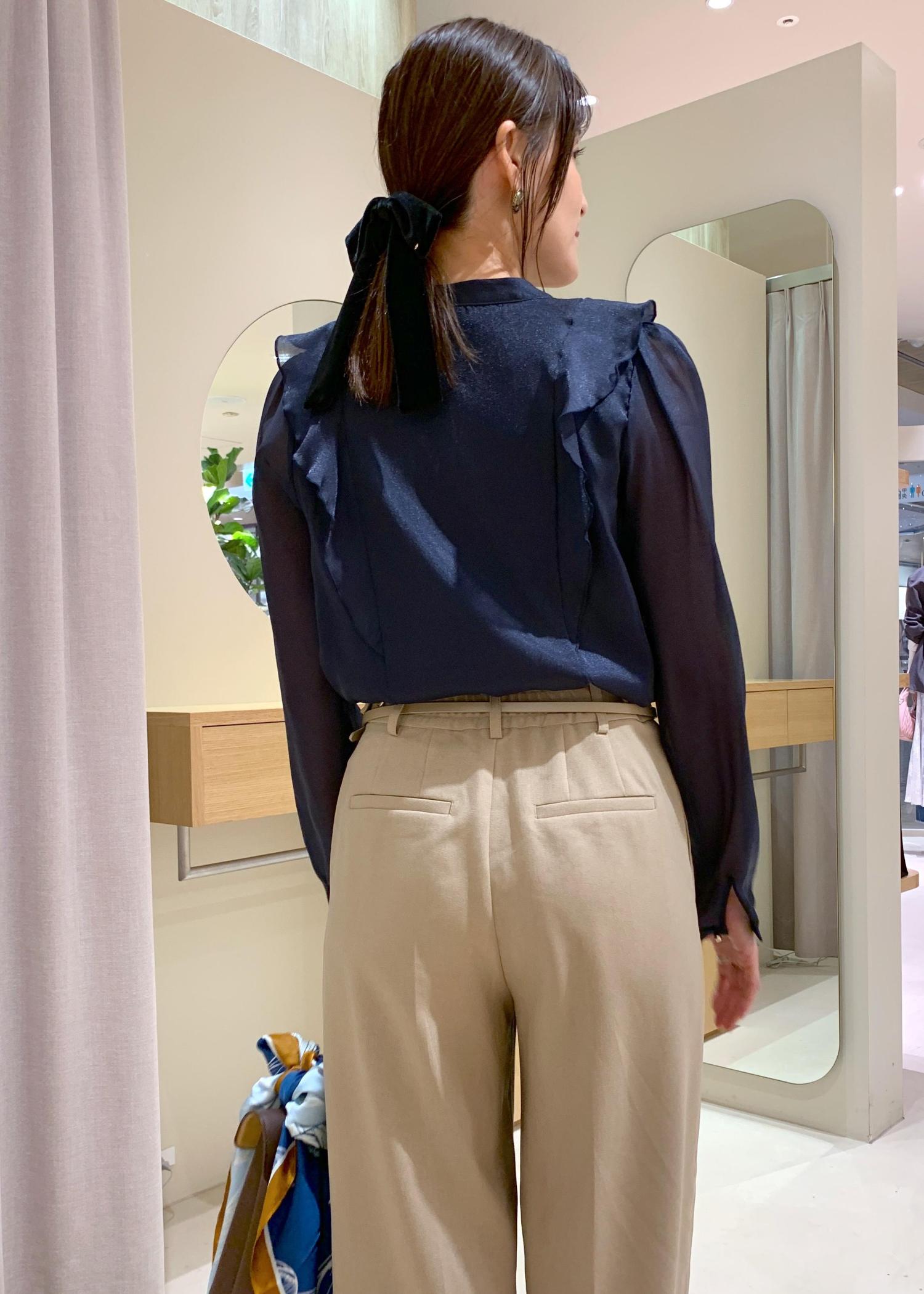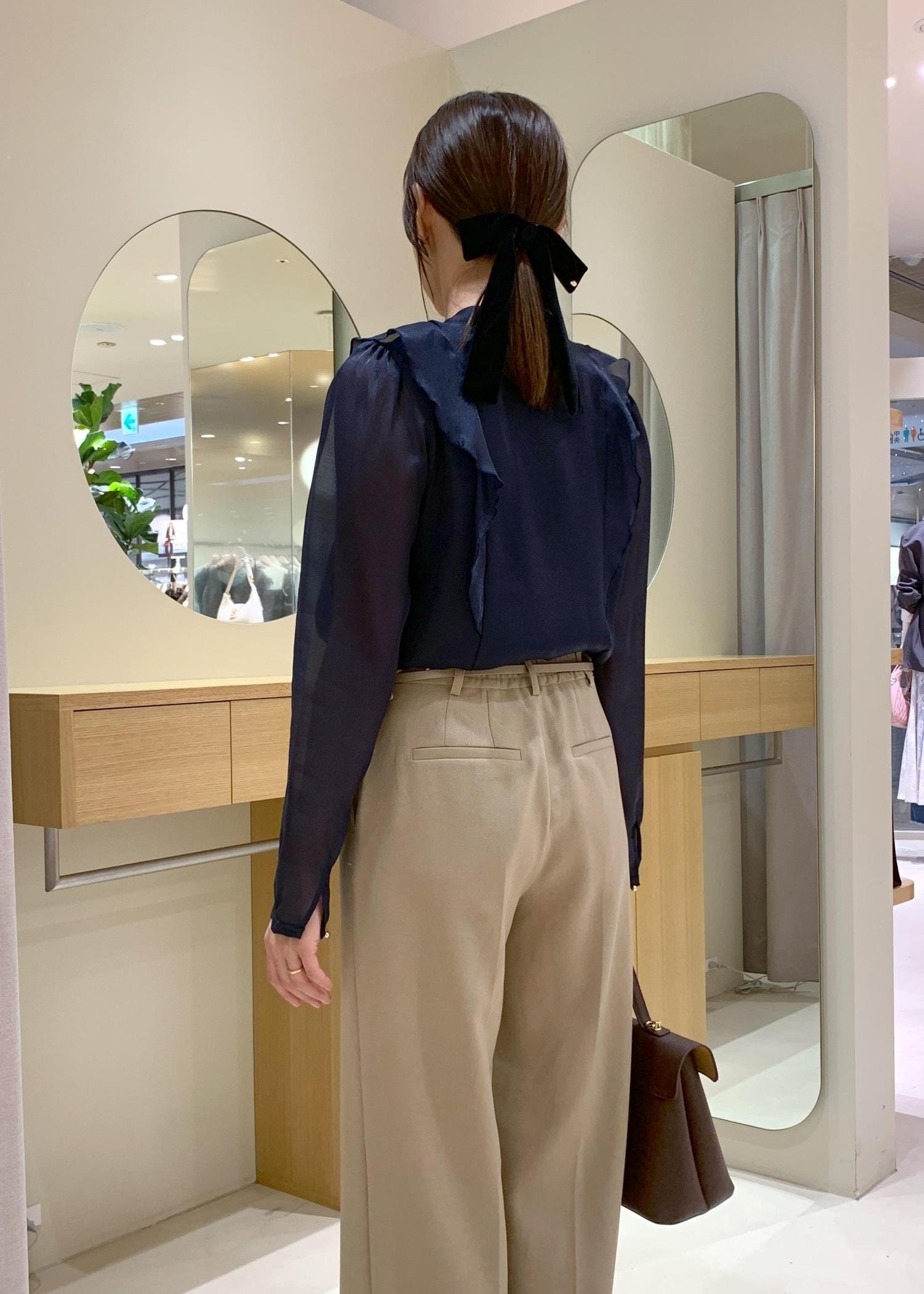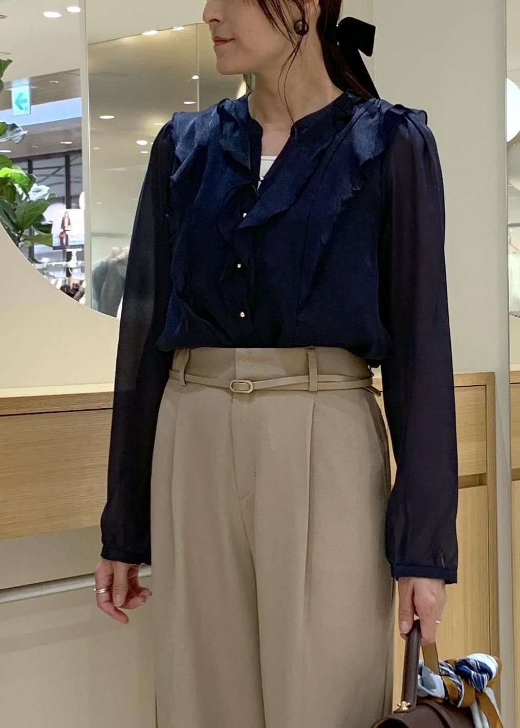 VISシアーラッフルブラウス/イージーケアネイビー / F¥3,842レビュー柔らかい質感でサラッと使える生地です。