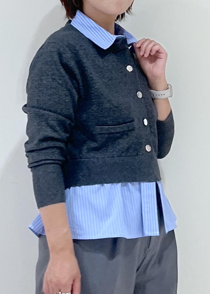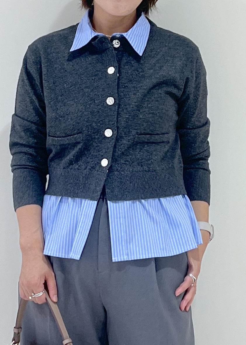しっかり襟付きシャツにカーデを合わせている感じが出るので綺麗め見えしてお仕事着にもぴったりです!