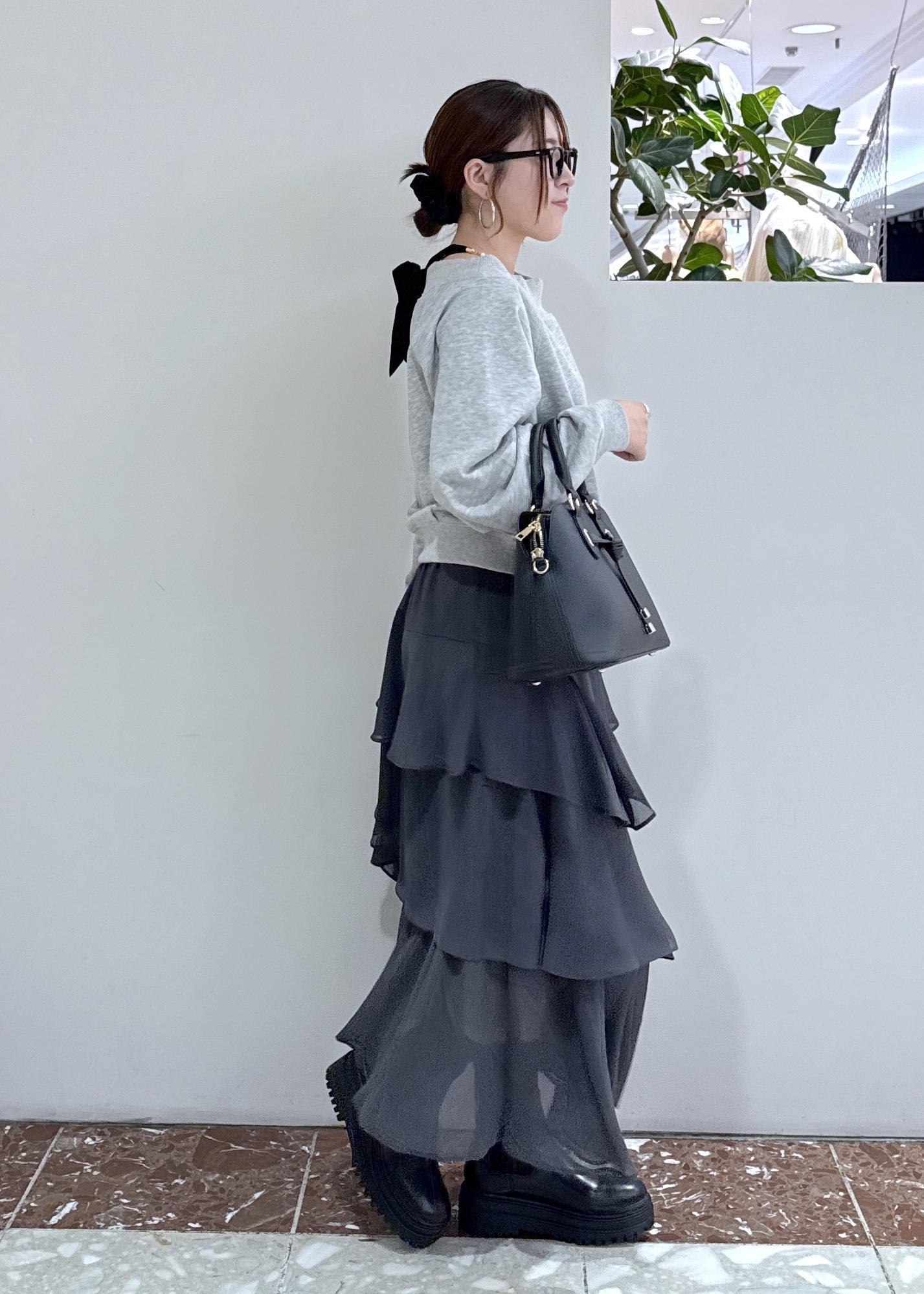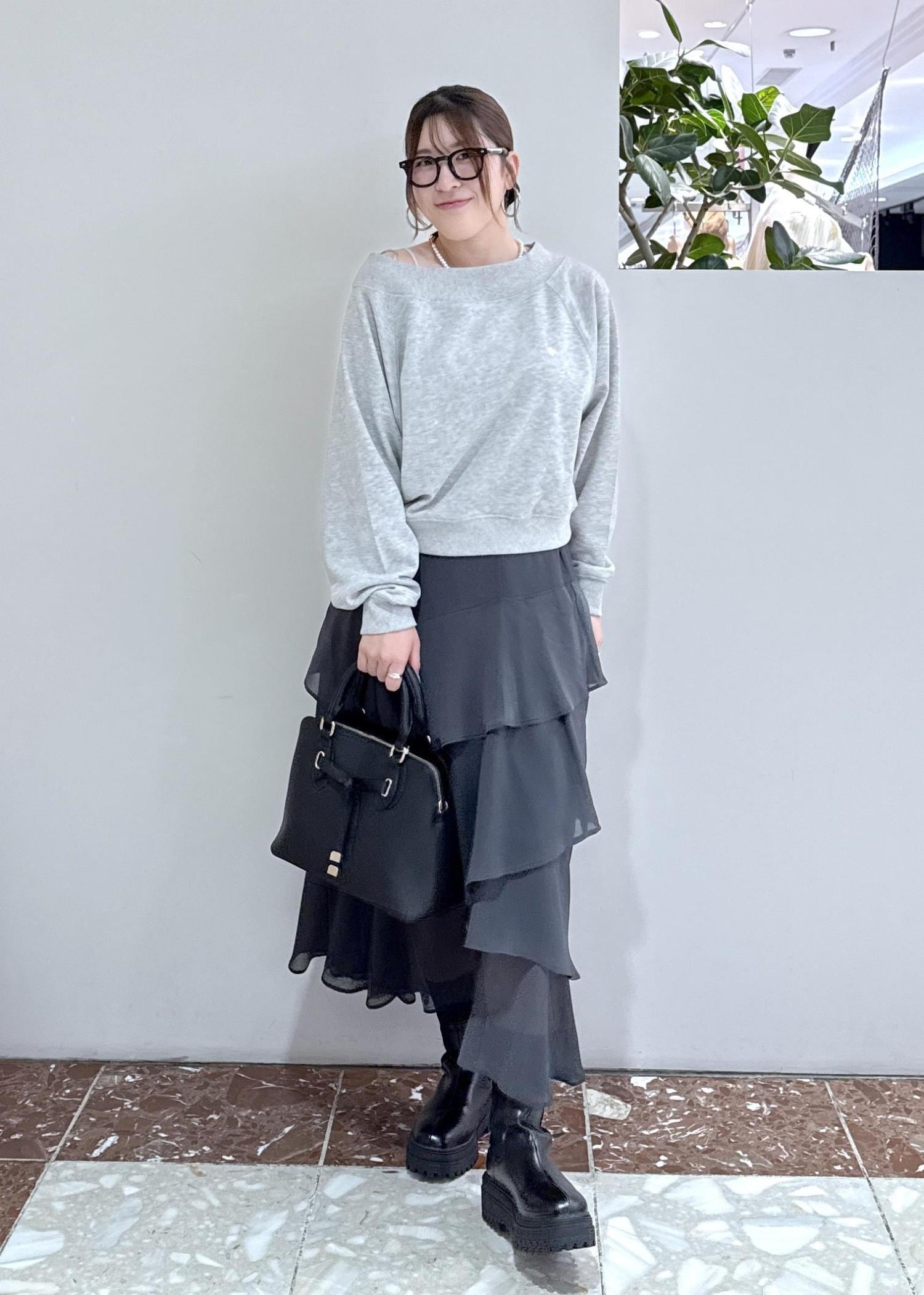 裾はシアー感のある素材でブーツ合わせなどでも足元が重くなりすぎないです。
