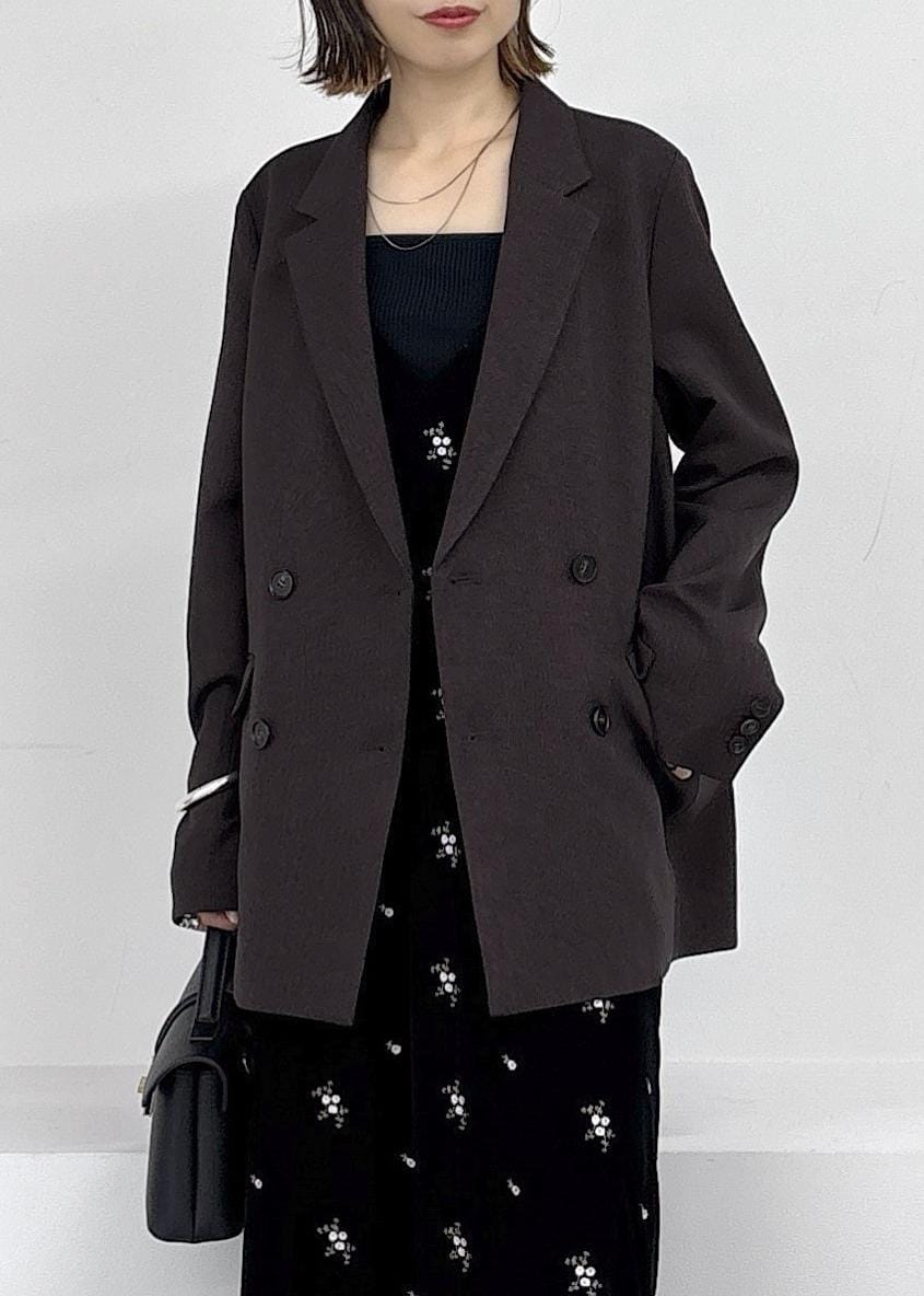 VIS【美easy】ウーリッシュダブルブレストテーラードジャケット【セットアップ対応/洗える】ダークブラウン / M¥8,899レビュー人気シリーズ「美easy」の秋冬バージョンのジャケット♪程よいハリのある生地ですがさらっとした着心地でとても着やすいです。裏地がついているので袖も通しやすく、折り返すとストライプ柄が見えるのもさりげないオシャレ感◎全体的に程よくゆったりめ、着丈はお尻が隠れるくらいの長さでした。