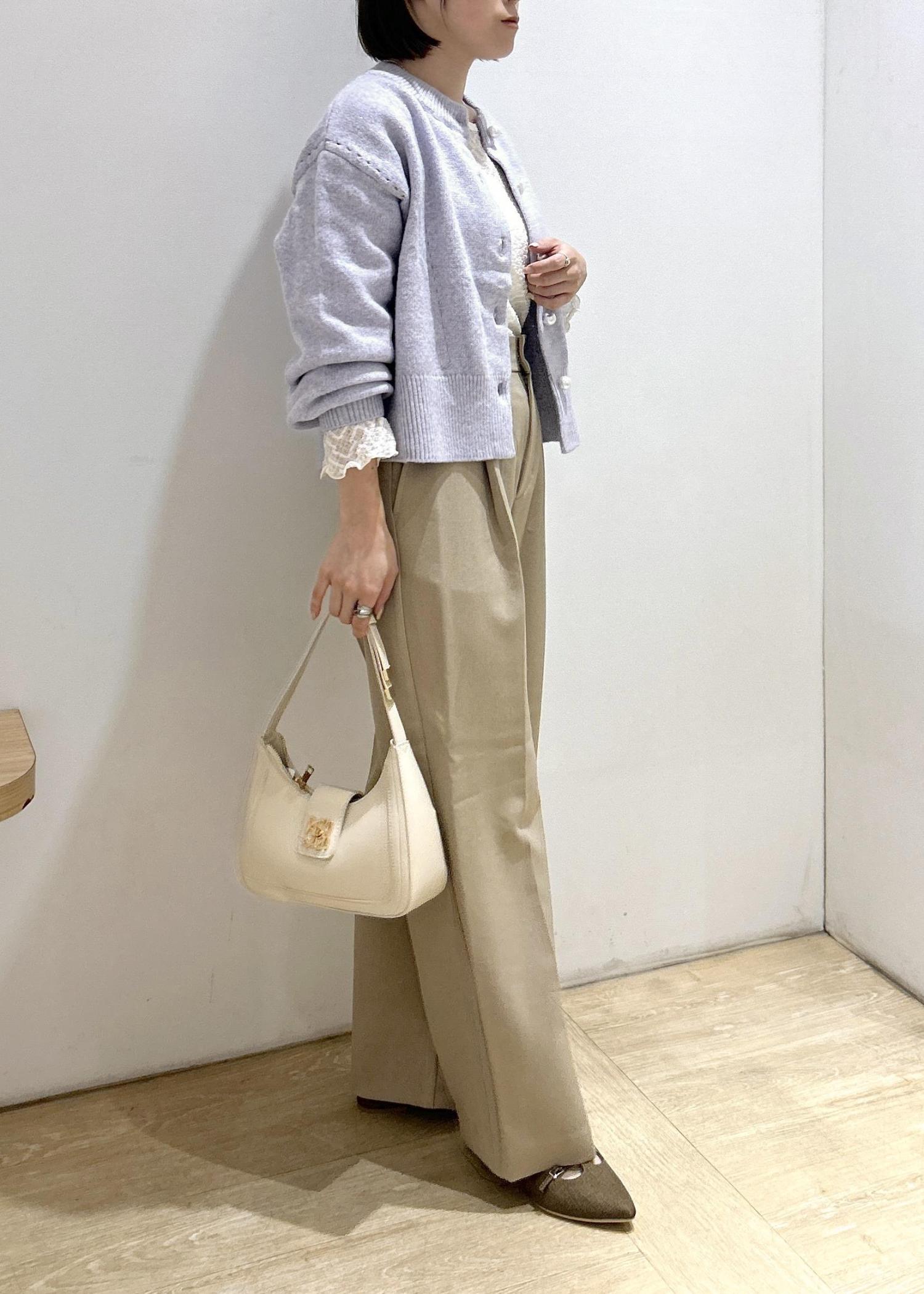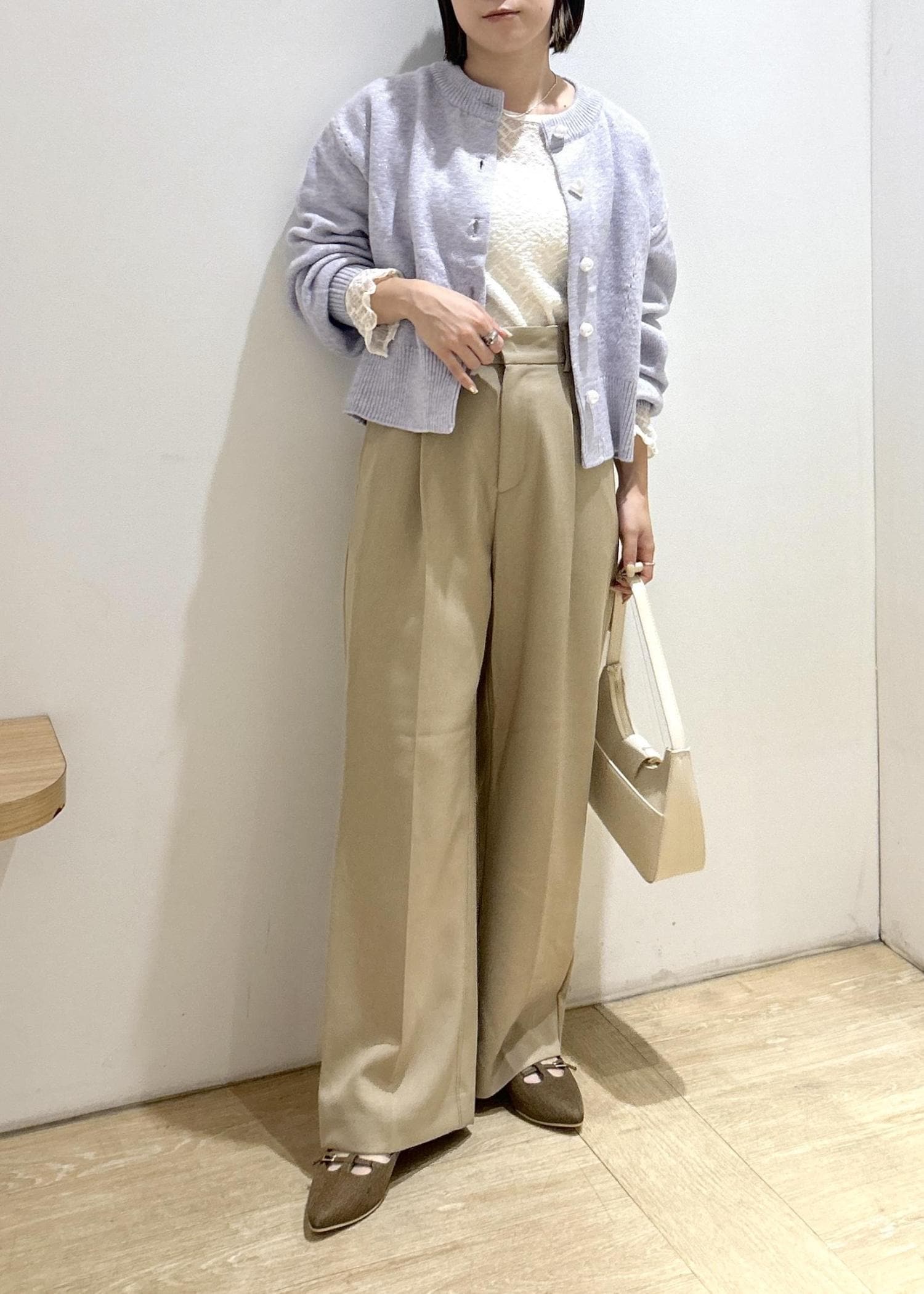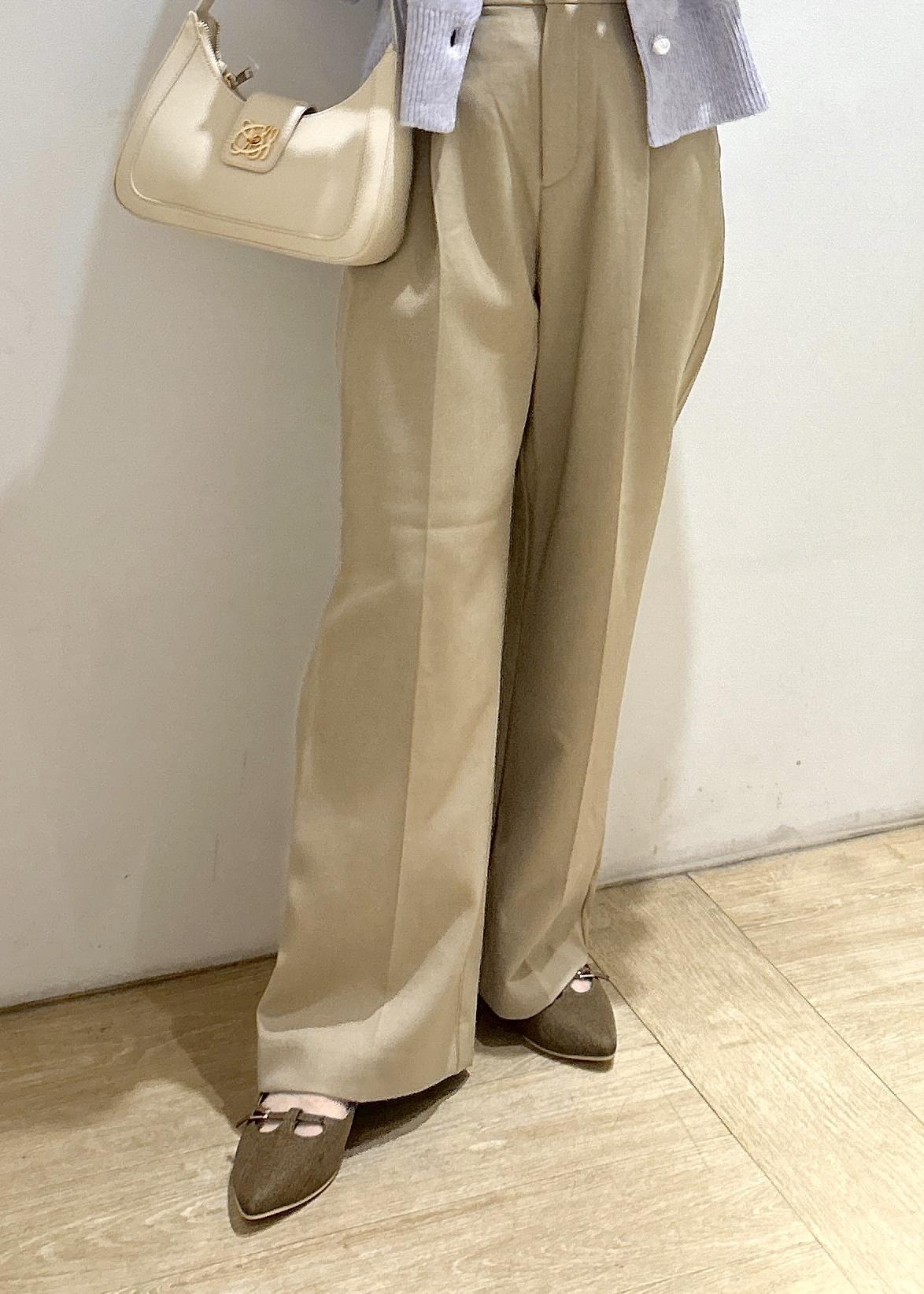 予約VIS【美easy】ウーリッシュワンタックワイドパンツ【セットアップ対応/洗える】ベージュ / SS¥6,589レビュー150cmでウエスト、丈のどちらもジャストサイズでした。ウエストが細すぎず、ベルト幅もあるので、お尻や腰骨が目立ちにくいシルエットです。シワになりにくく、お洗濯できます!