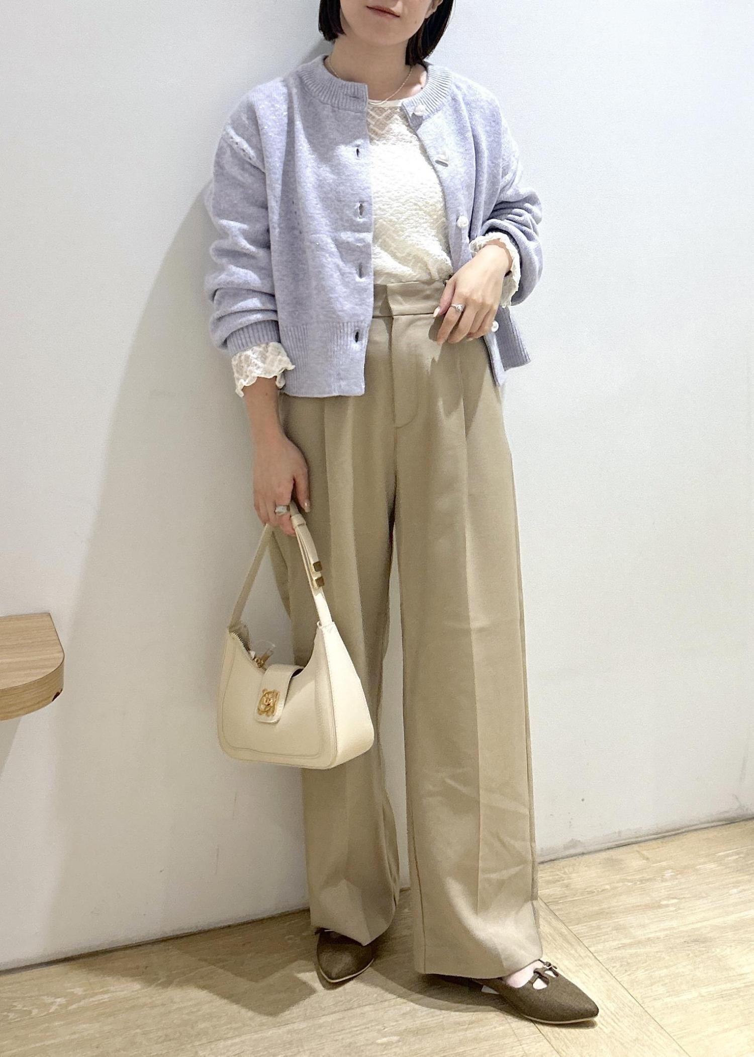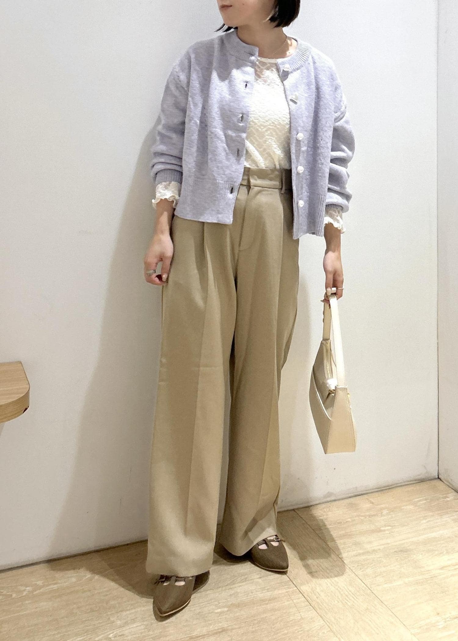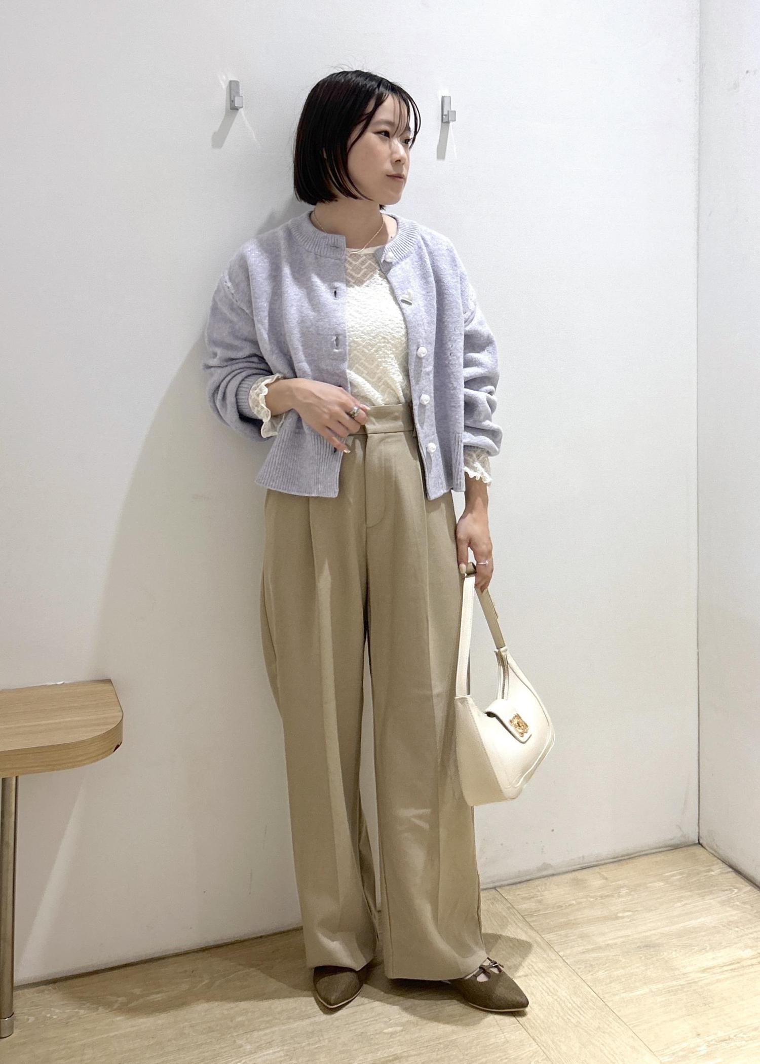 ゆとりのあるサイズですが、丈が長すぎないのでパンツもスカートも合わせやすい着丈です。