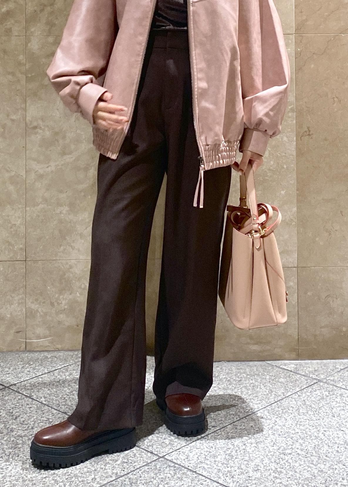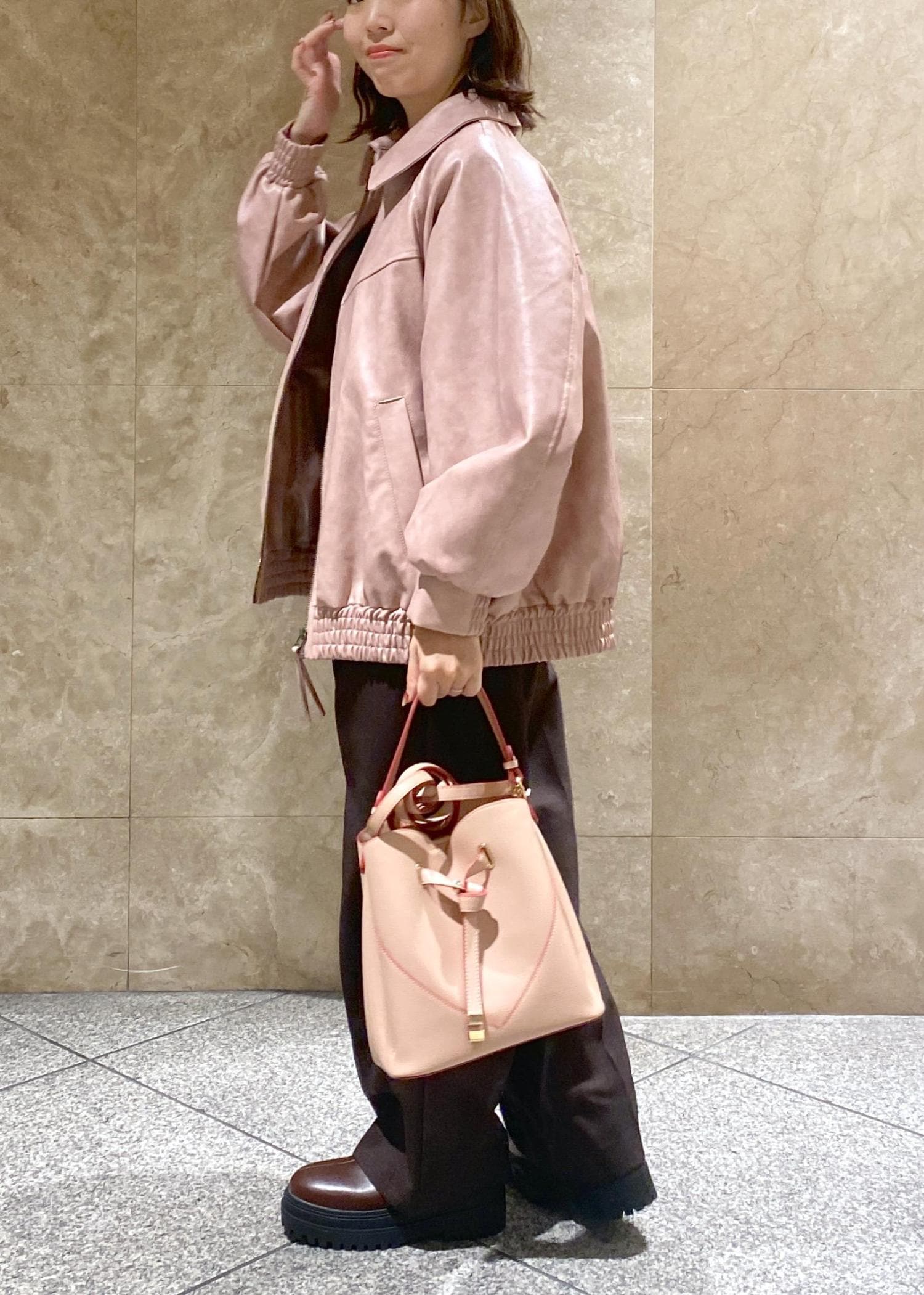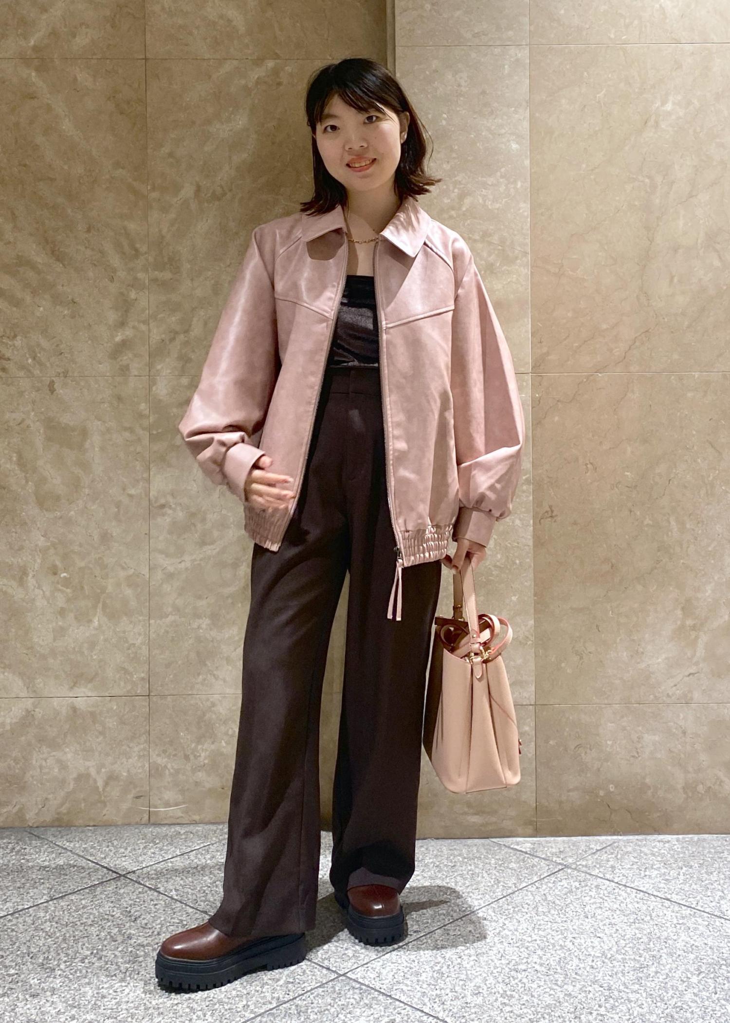 ブラウンでまとめ少し甘くしたいと思い、差し色でピンクを羽織りました◎