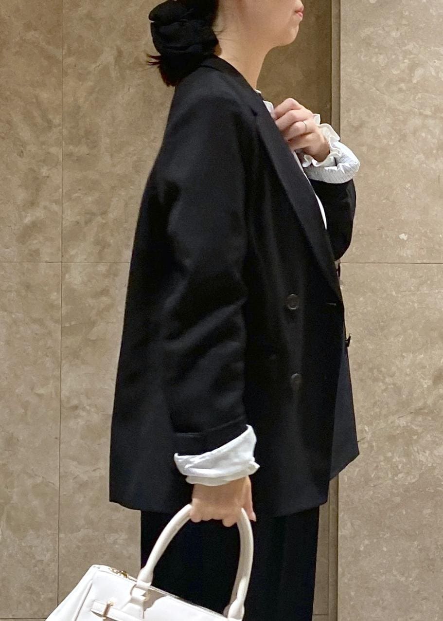 VIS【美easy】ウーリッシュダブルブレストテーラードジャケット【セットアップ対応/洗える】ブラック / S¥8,899レビュー身長150cmでSサイズを着用し、お尻が少し隠れる丈感でした!オーバーサイズかと思いましたが、低身長のわたしでも大きすぎずとてもピッタリで着用出来ました!