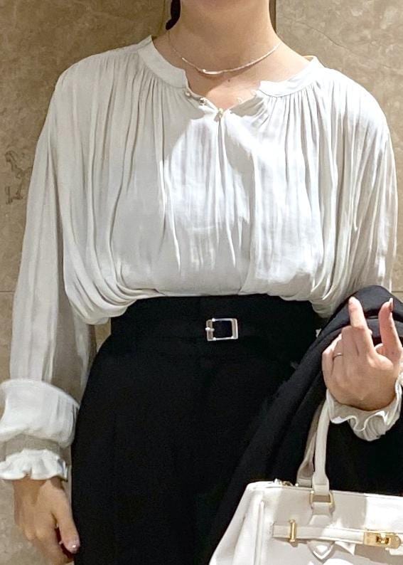 VIS割繊シャーリングブラウス/2WAY・イージーケアオフホワイト / F¥5,489レビュー身長150cmで腰にかかる丈感でした!