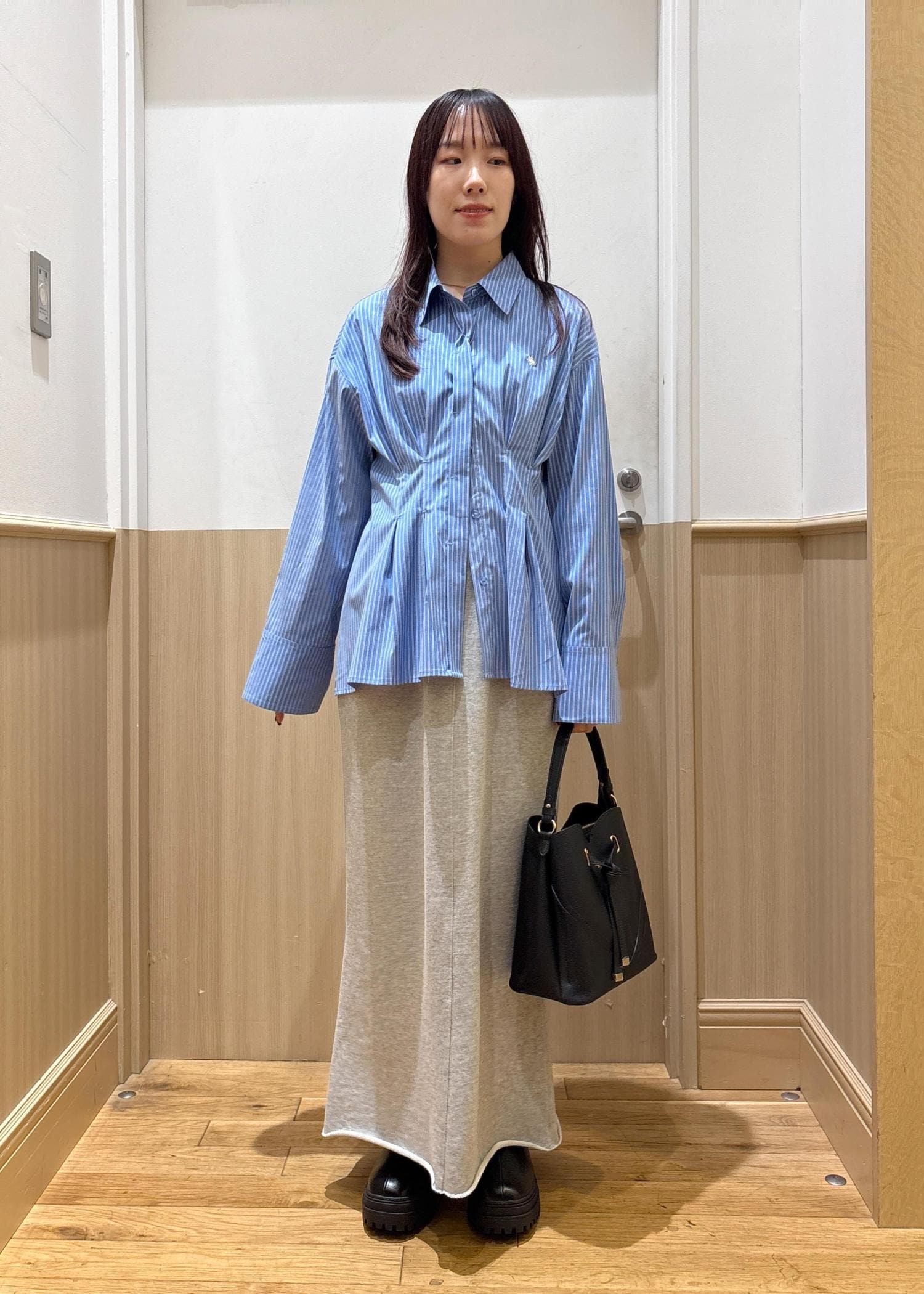VIS【POLOBCS】VIS別注ウエストタックフレアシャツブルー系 / F¥6,930レビュー丈はヒップがすっぽり隠れるくらいの安心感のある丈感ですが、ペプラムデザインで脚長、すっきり効果がありスタイルアップできます◎