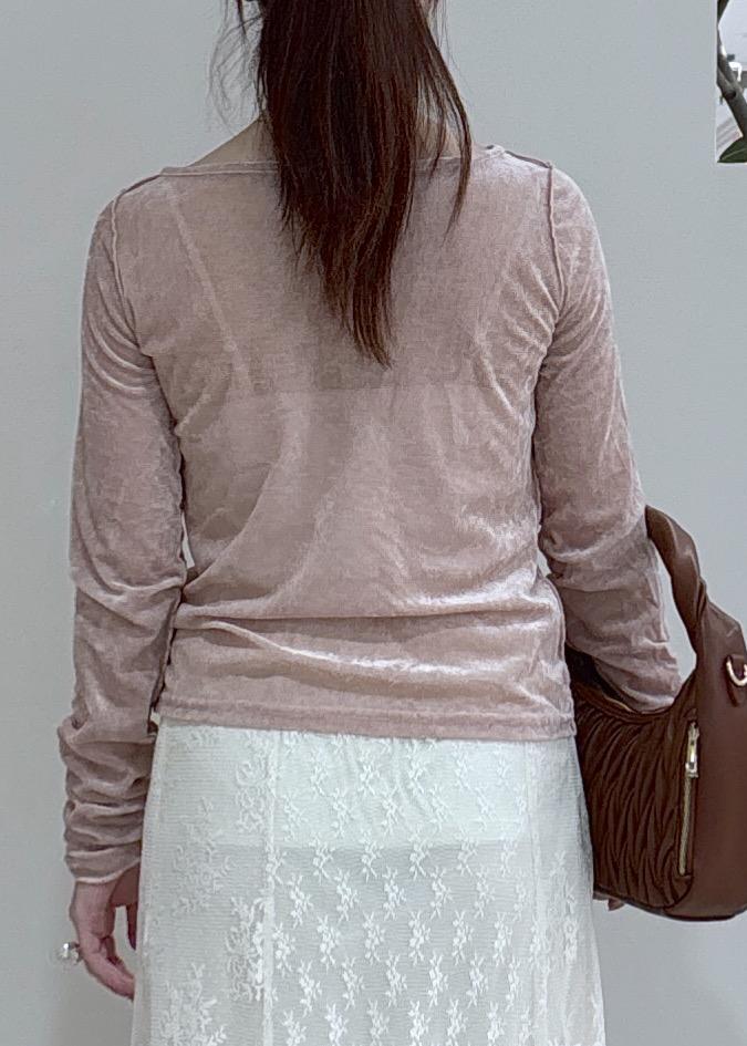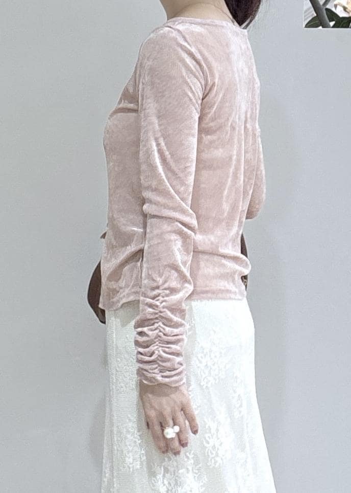 VIS【2WAY】花柄&無地アソート袖シャーリングベロアカーディガンピンク / F¥3,951レビュー着丈は腰が隠れるくらいで、程よく身体に沿うデザインです。袖丈は手首より少し長いくらいで、腕が長くみえます◎