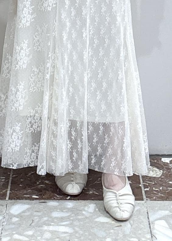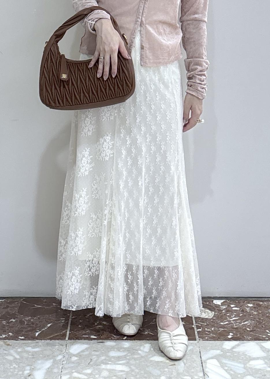 着丈は158cmでレースの部分は足首くらい、下地の部分は膝と足首の真ん中くらいでした! -