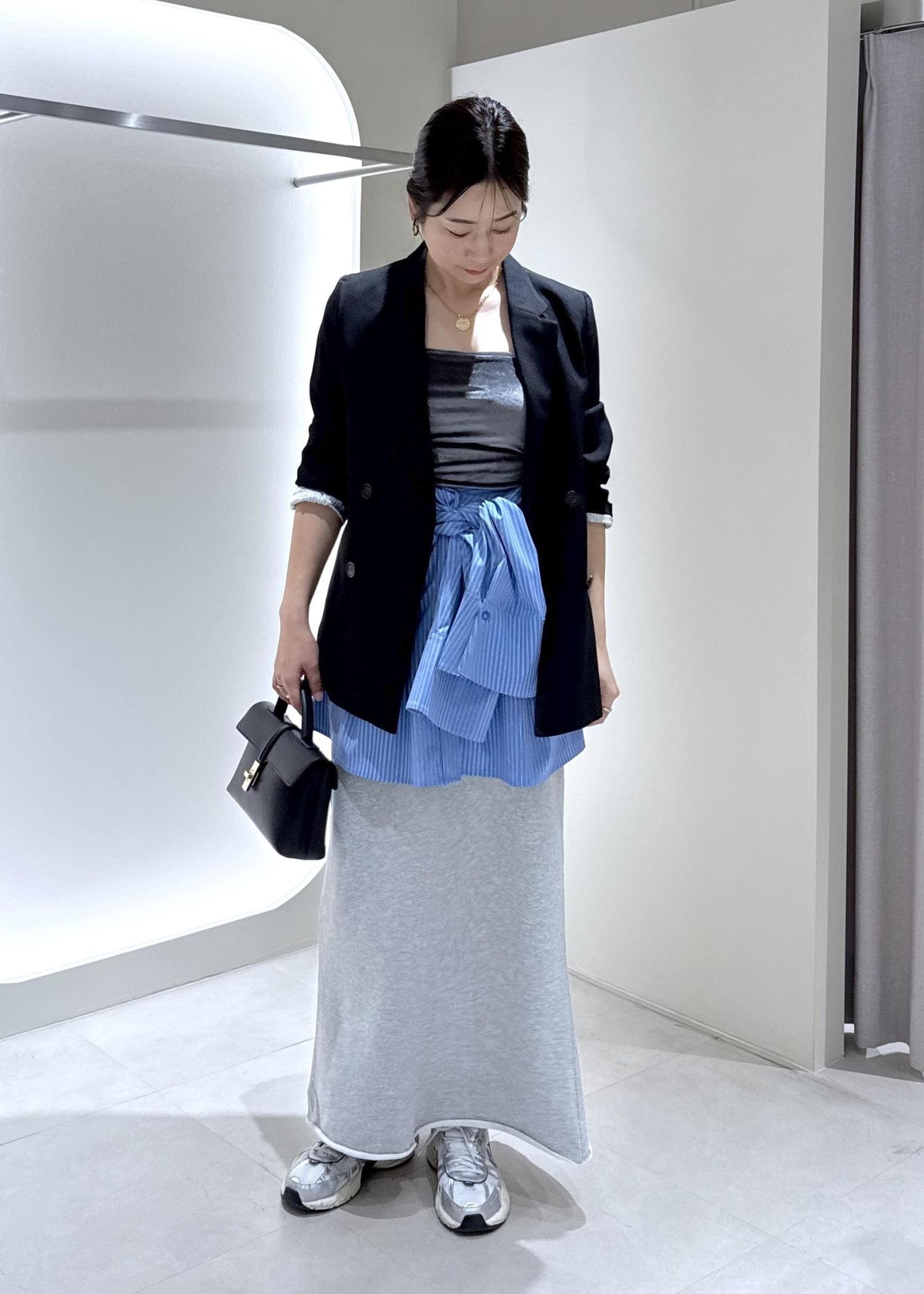 ウエストにタックが入っているのでスッキリとした印象で着れます。