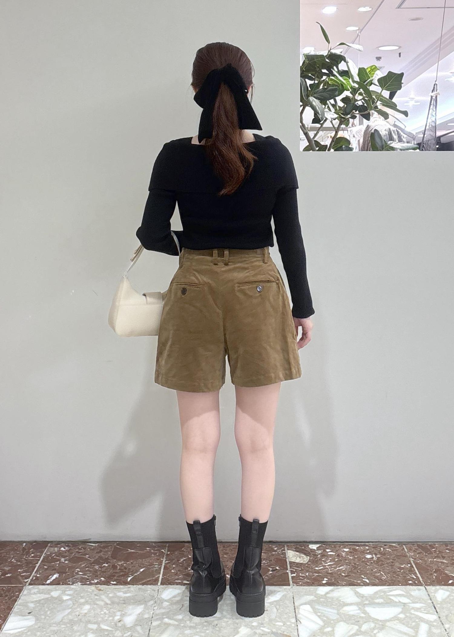 VISフロッキーグルカショートパンツベージュ系 / F¥6,589レビュー158cmで着丈は太ももの半分より少し上くらい。ウエストはまだ少し余裕があったので厚手の生地のトップスもインできそうでした!