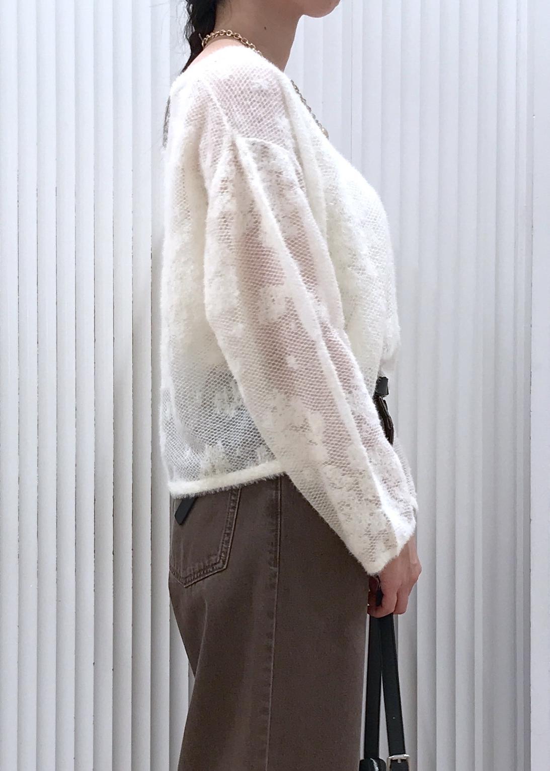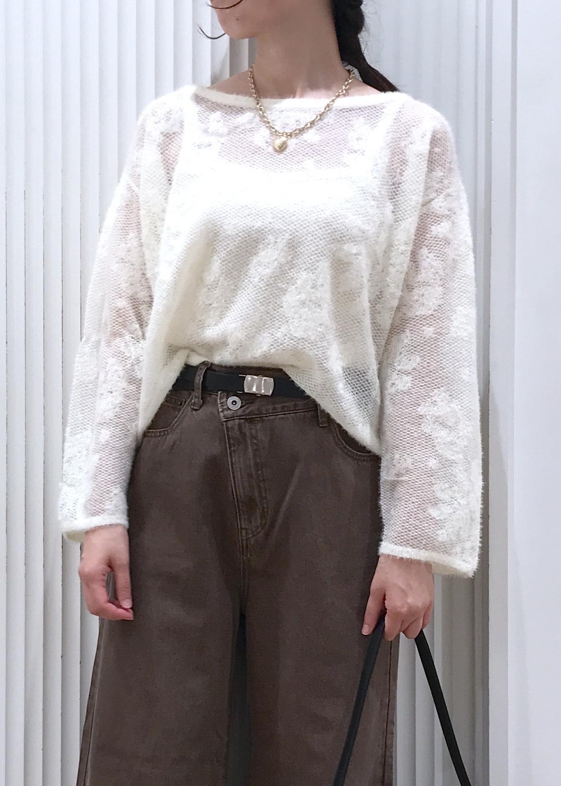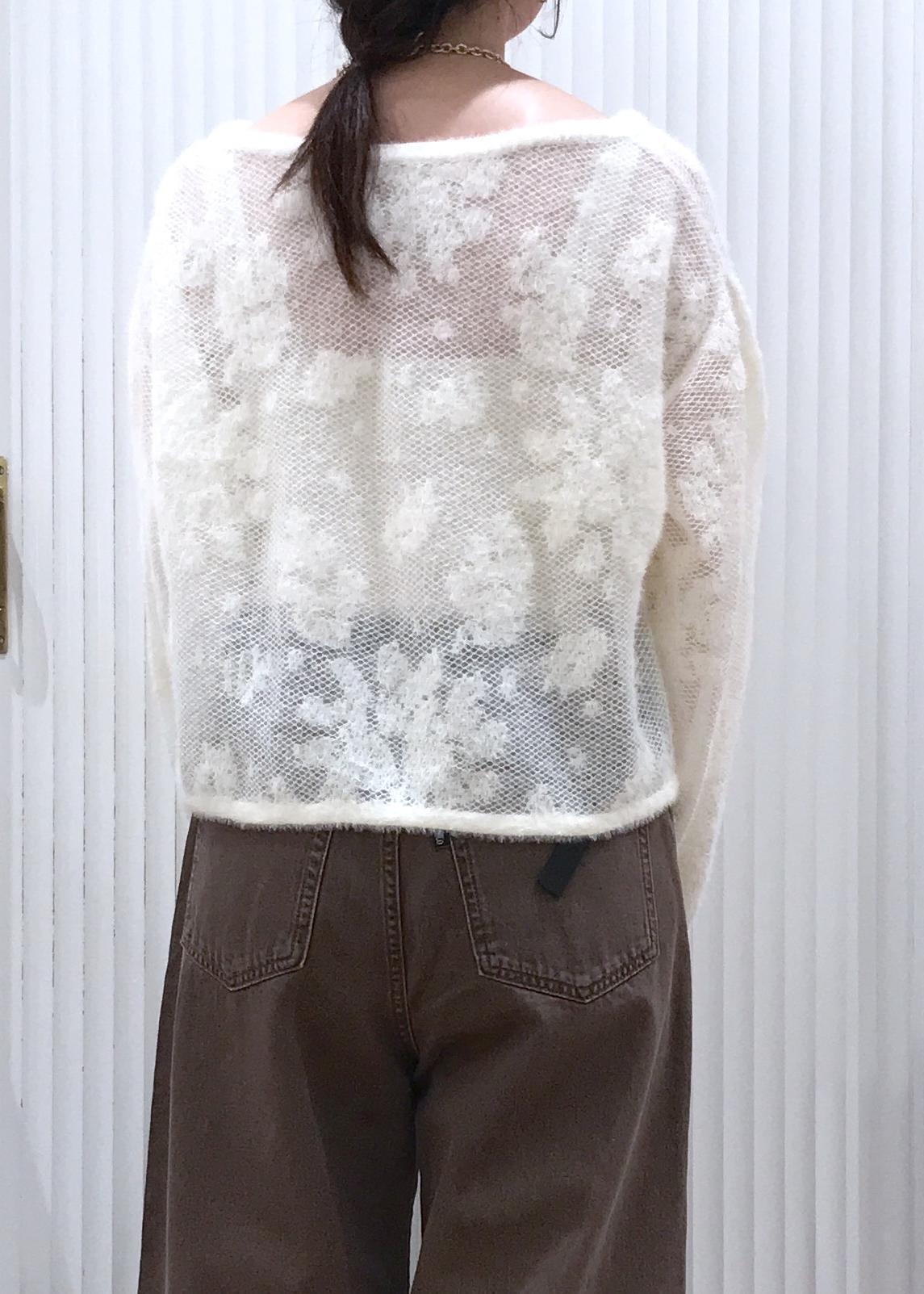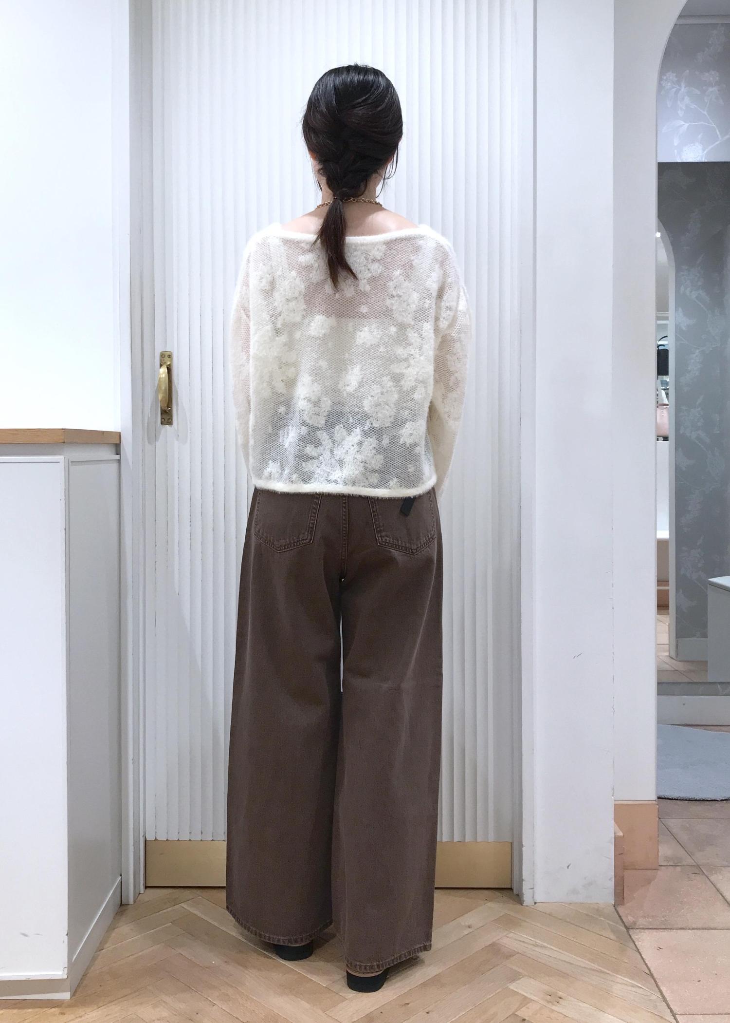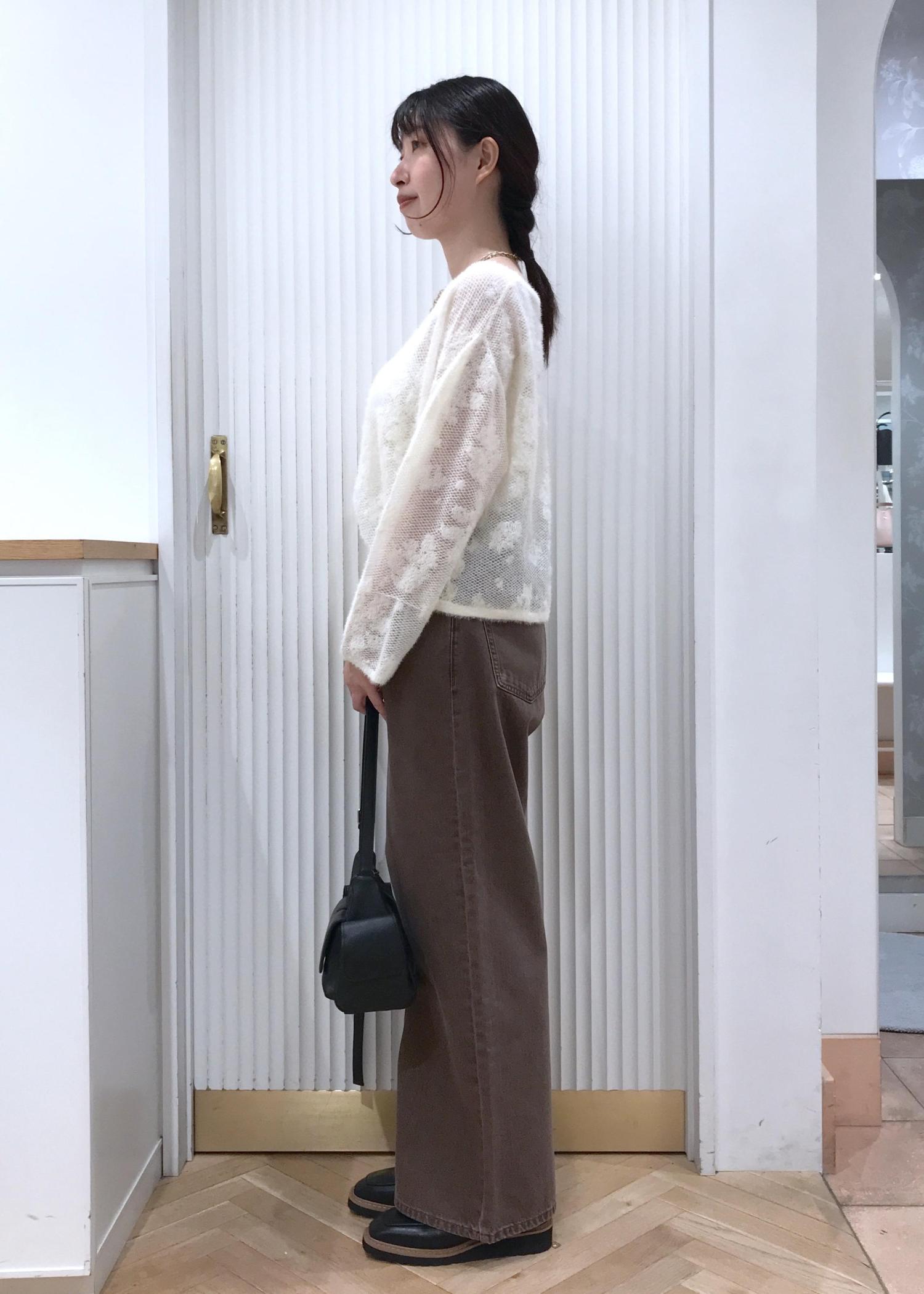 VISフラワーモチーフフェザーシアーニットオフホワイト / F¥3,842レビュー私の身長で腰にかかる着丈感です。