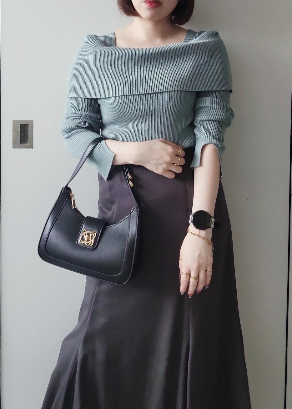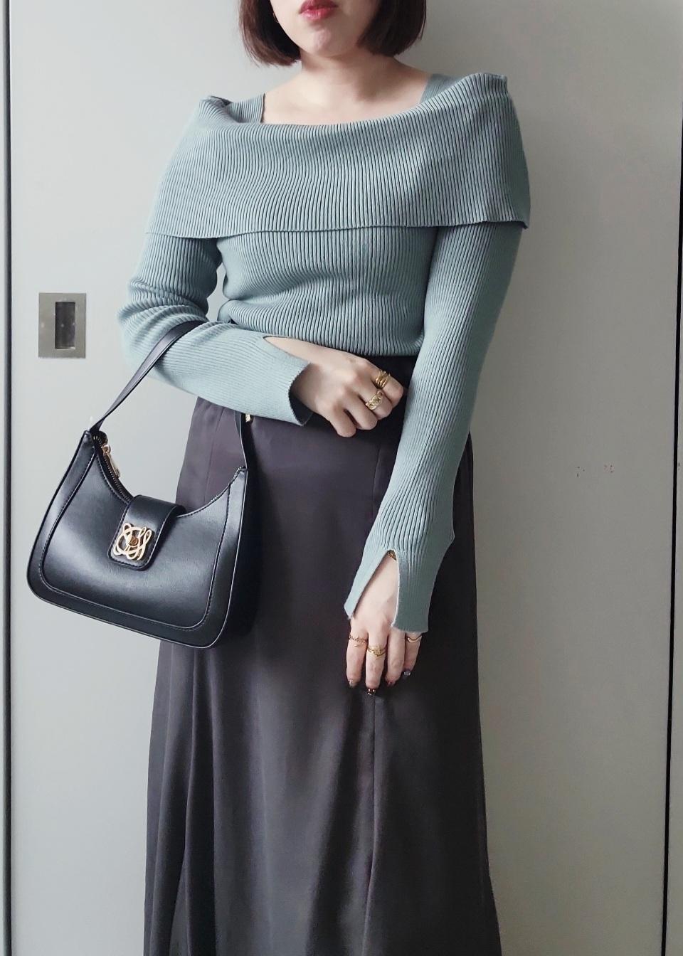 VISオフショルダーモチモチリブニットグリーン系 / F¥5,489レビューちくちく感のないリブニット素材で、伸縮性も高く着心地◎