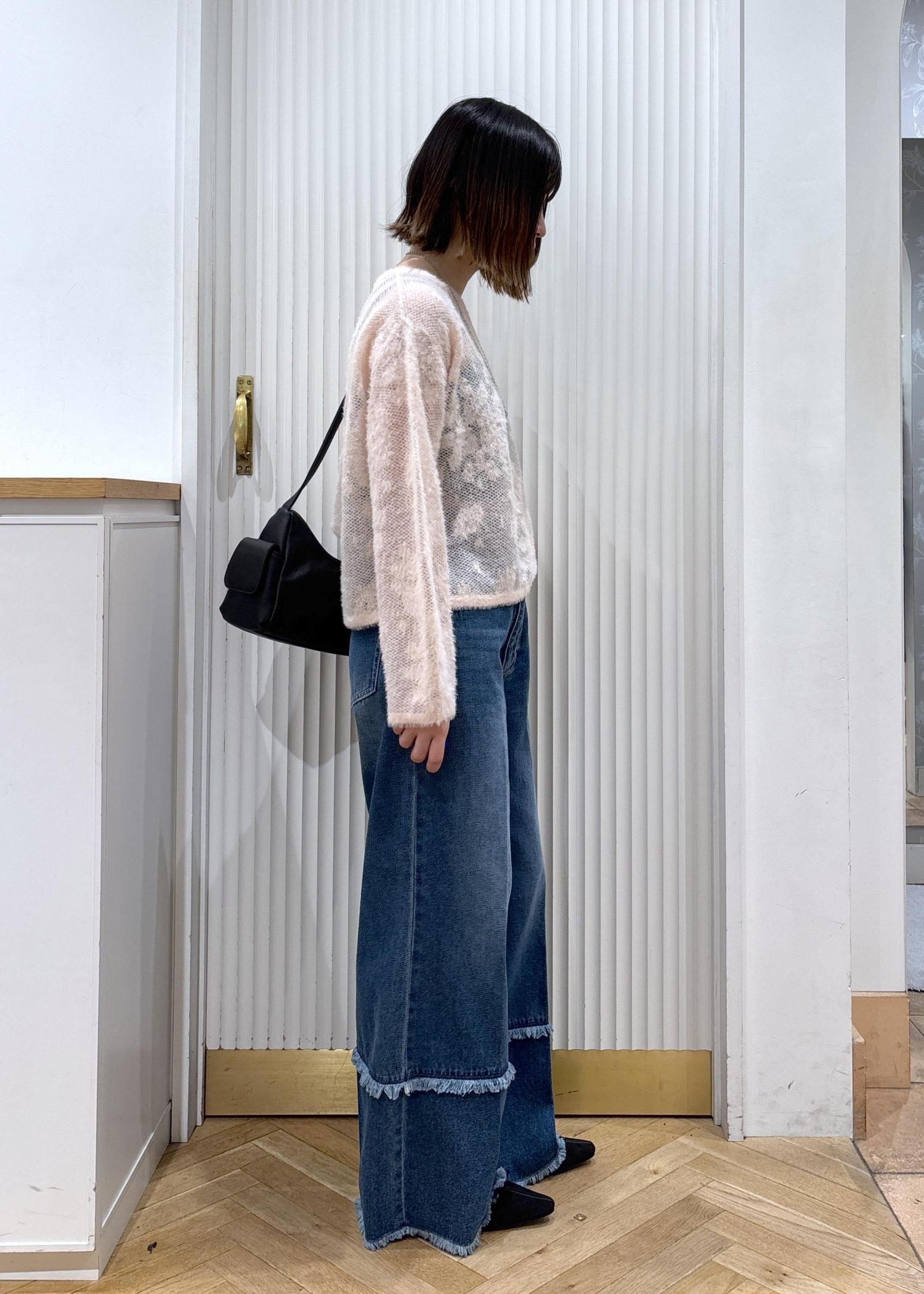 実物を見ると心配になりがちですが、着てみると胸元が開きすぎず、ハイウエストのボトムスと合わせても少しお腹が見える丈感なので着回し力◎です!!