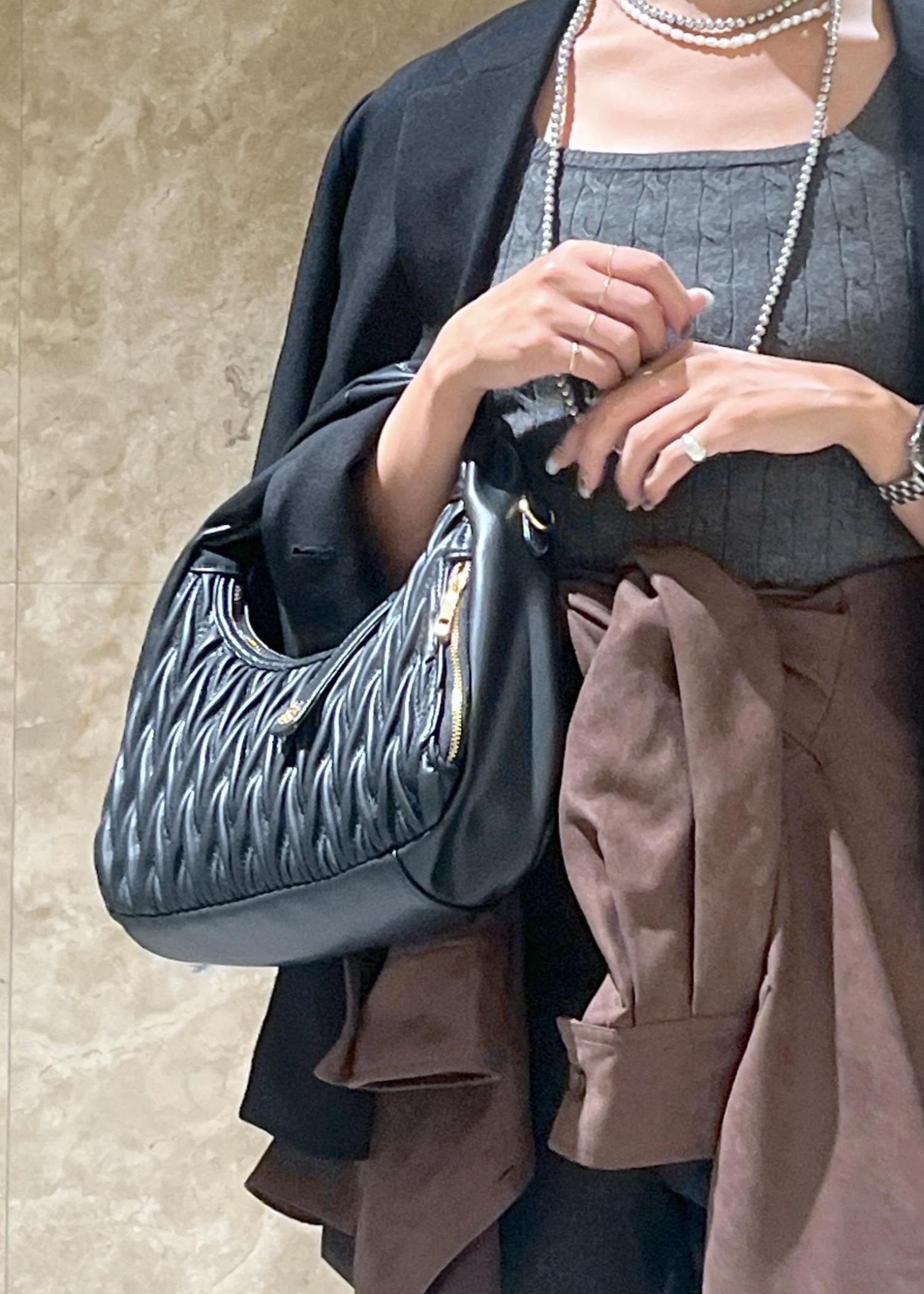 ハンドルの長さが肩に掛けるのにちょうどよく、ショルダーも付いているため、斜め掛けにもできる!
