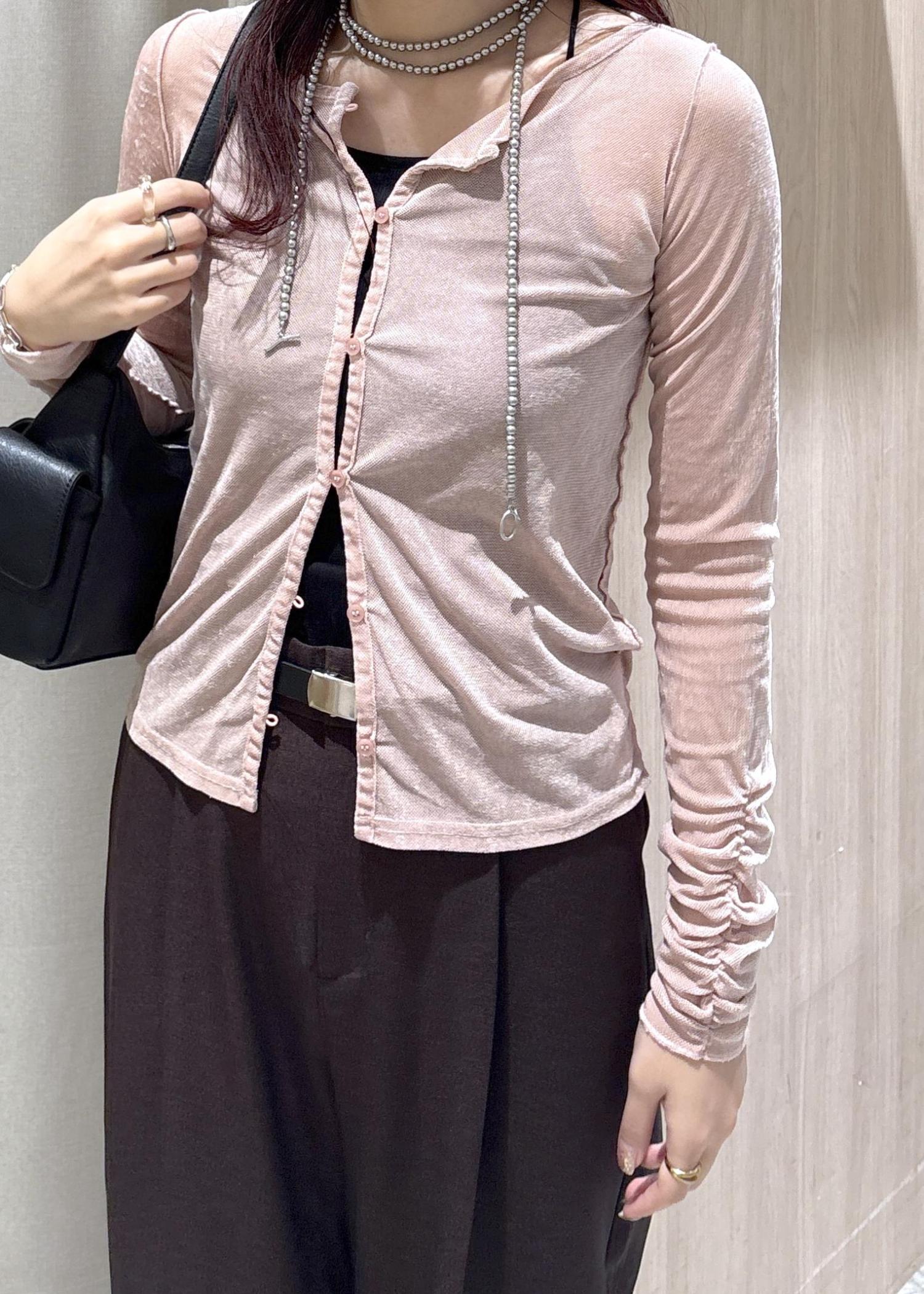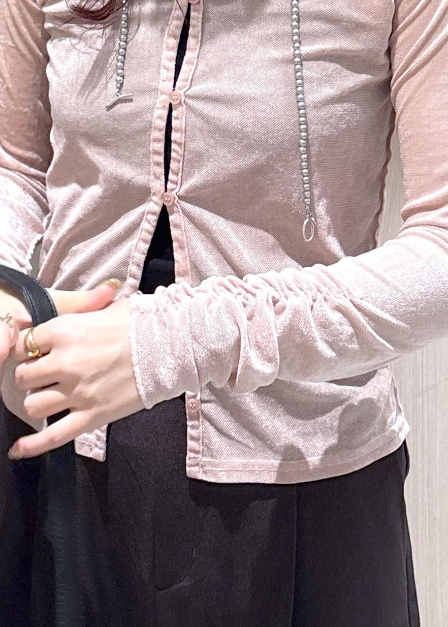 【2WAY】花柄&無地アソート袖シャーリングベロアカーディガン