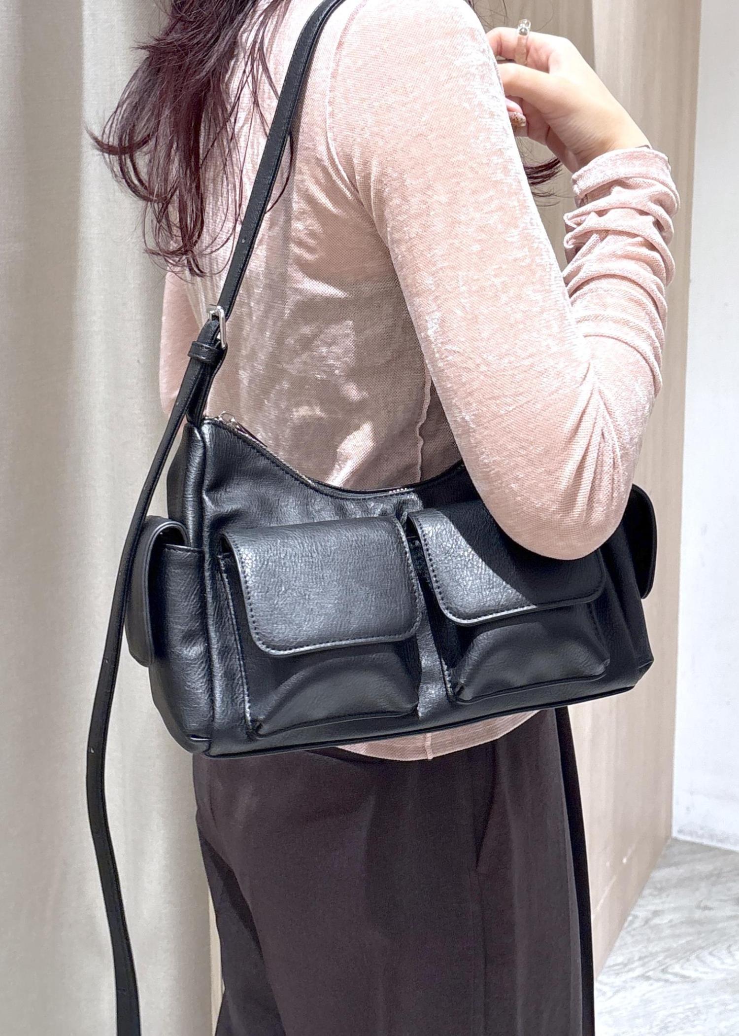 【2WAY】ビンテージ合皮クアトロポケットショルダーバッグ