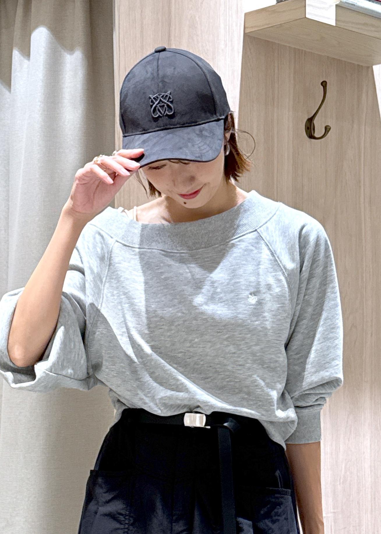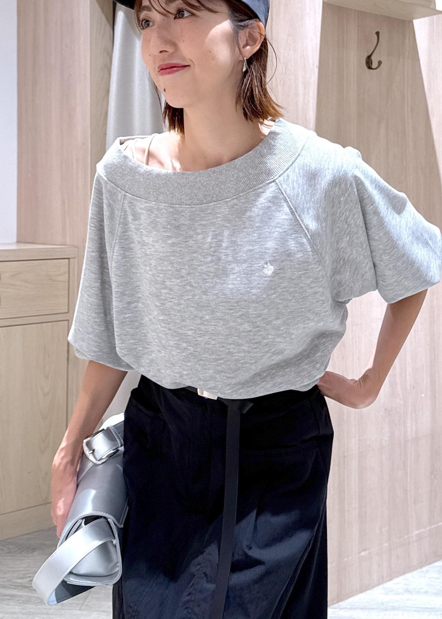 普通に着るとやや広めなボートネックのようなシルエットでした。襟元が開きすぎないので大人女子でもカジュアルに着回せます◎今っぽくゆるっとオフショルで着ると一気に女性らしく着こなせます! -