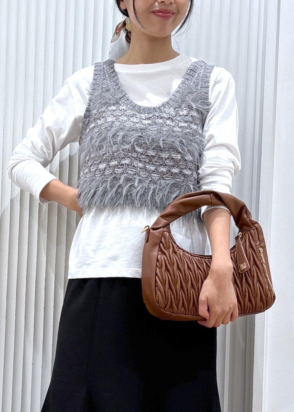 VISフェザーツイードニットビスチェ/2WAYグレー / F¥5,489レビュー前後2wayで使えるビスチェ。