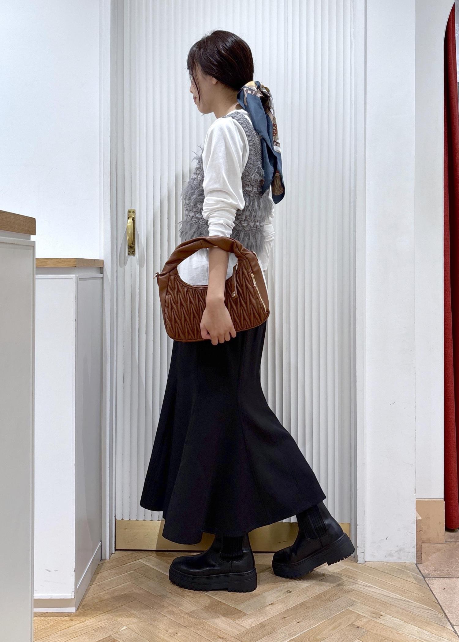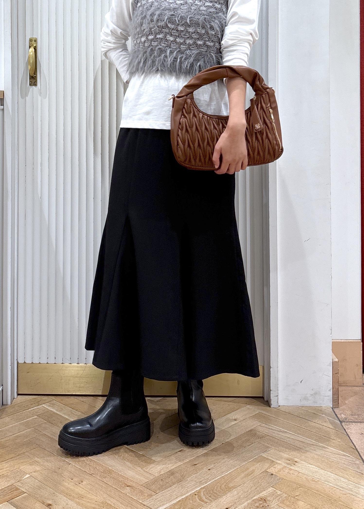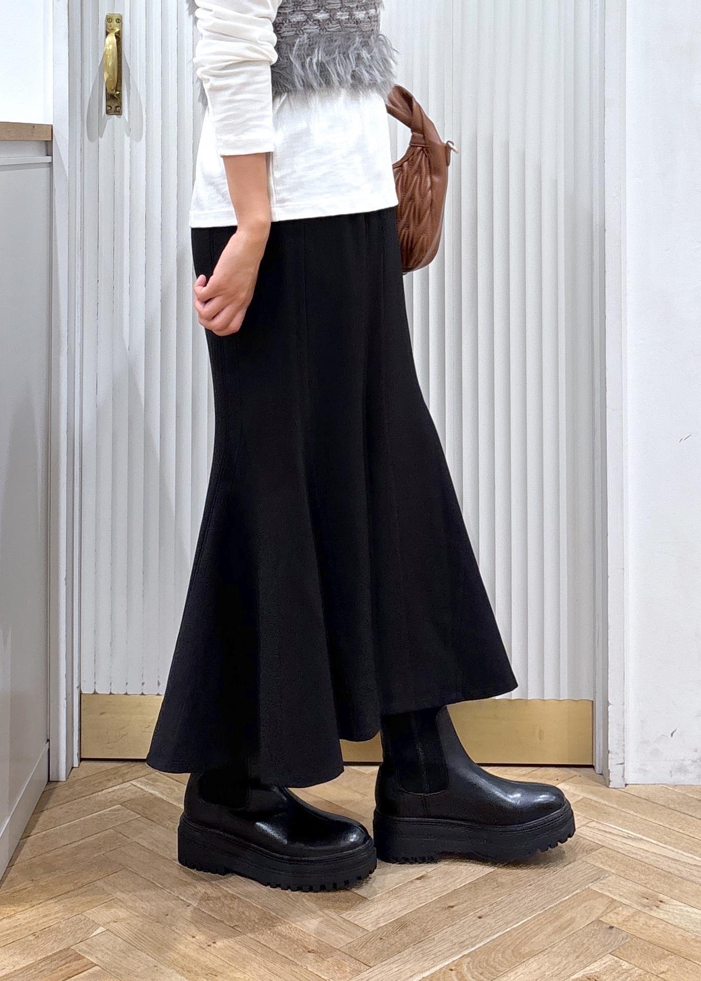 マーメイドスカートとブーツを合わせて大人カジュアルにまとめました。