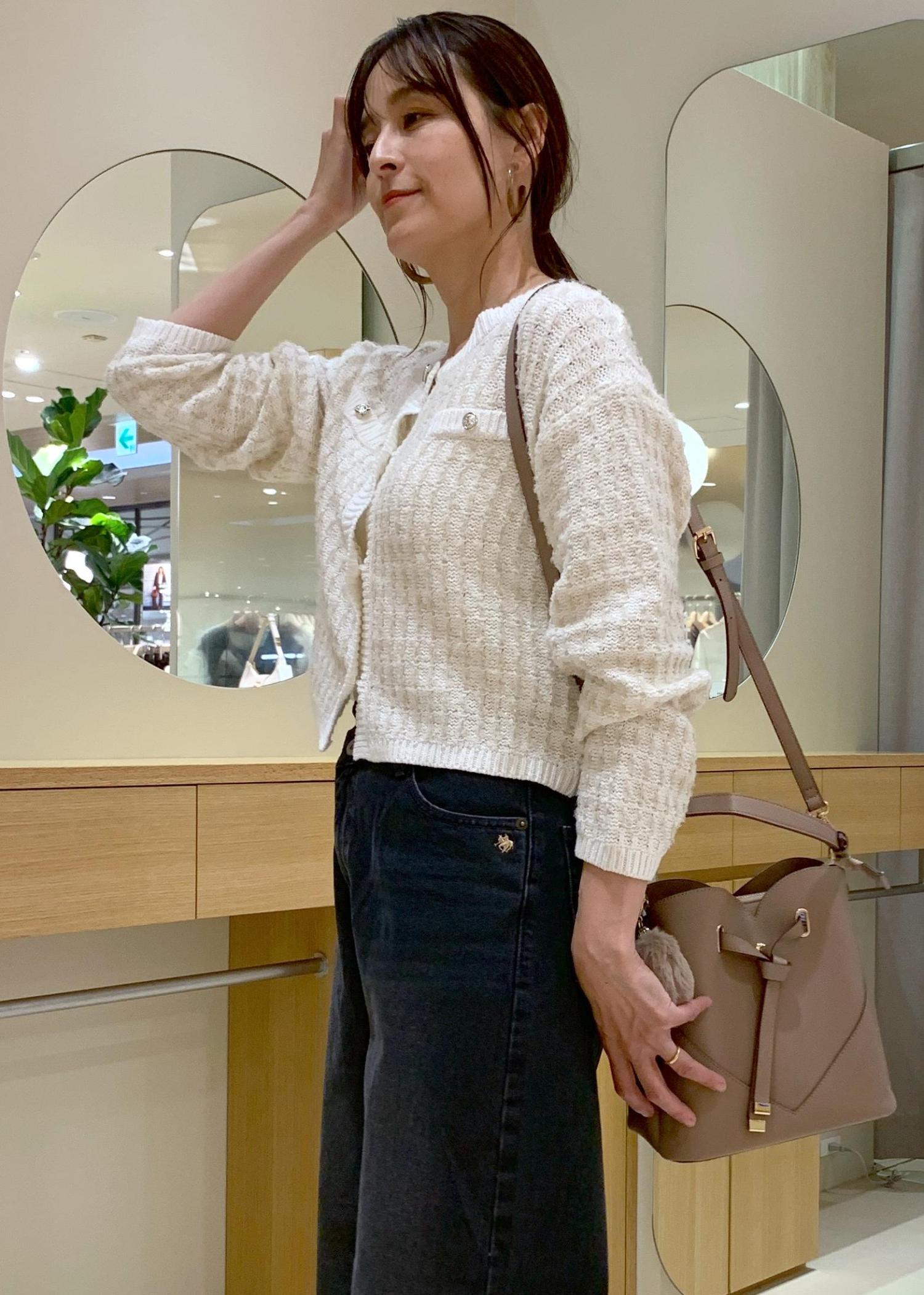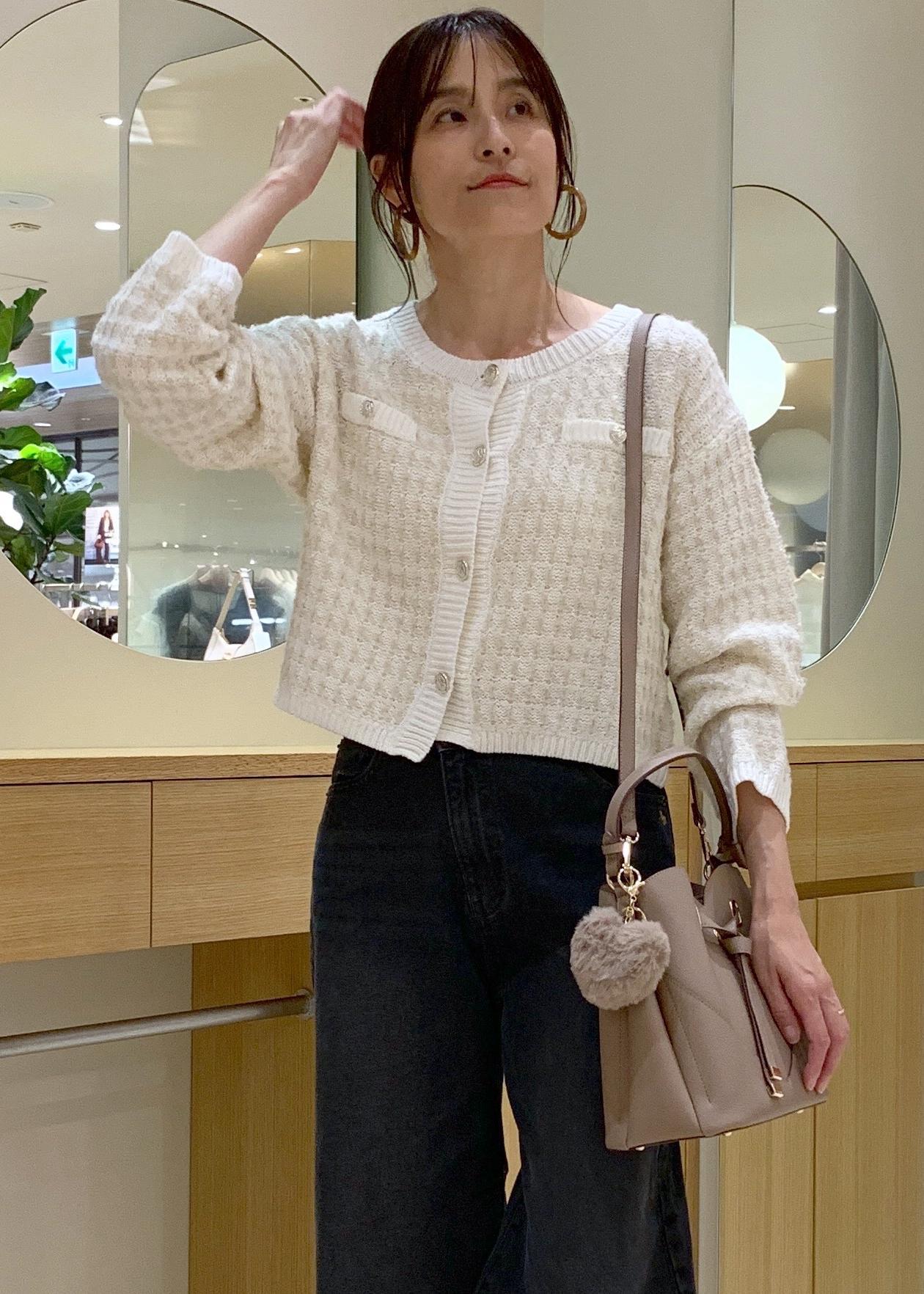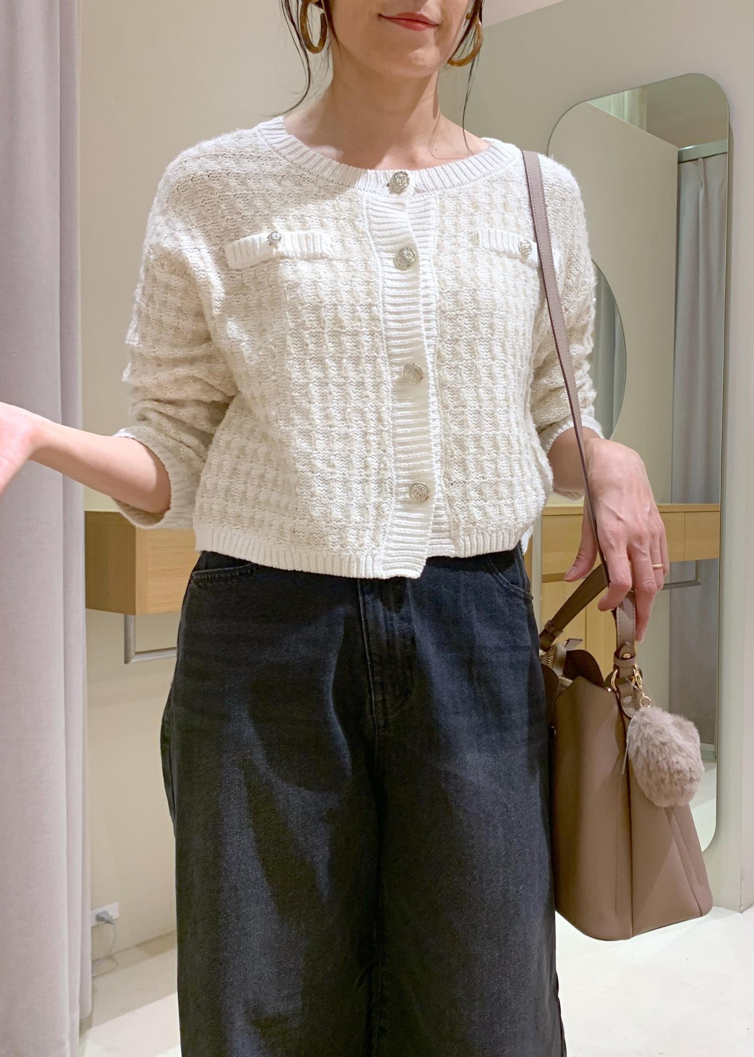 VISファンシーツイードメタルボタンカーディガンオフホワイト / F¥6,589レビュー生地が肉厚すぎないので、朝晩肌寒くなってきた今の時期から取り入れやすいです。程よいラメ感と柄がさりげなく楽しめます。