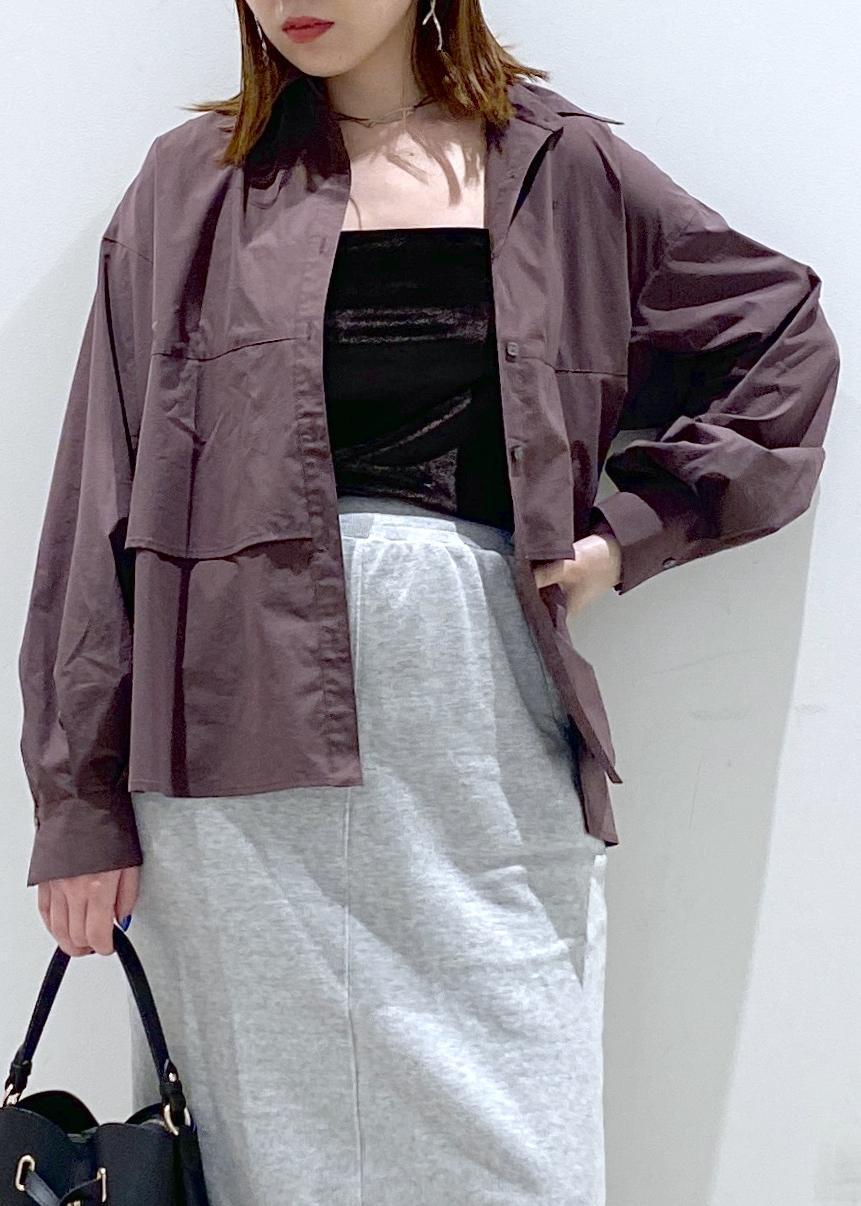 VIS裾ティアードオーバーシャツ/UVケア・イージーケアダークブラウン / F¥3,557レビュー裾ティアードのシャツは1枚で着ても