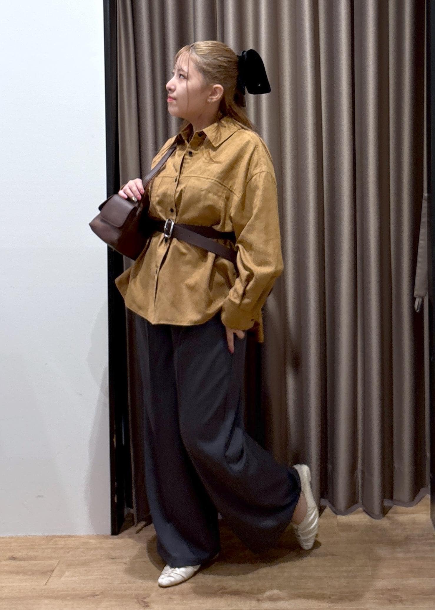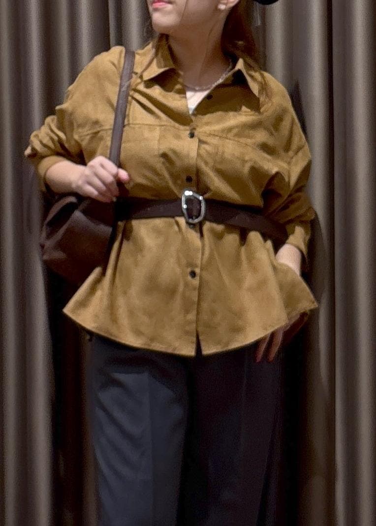 VISスエードライクロングスリーブシャツキャメル系 / F¥4,843レビュー153cmでおしりがしっかり隠れる丈感です!