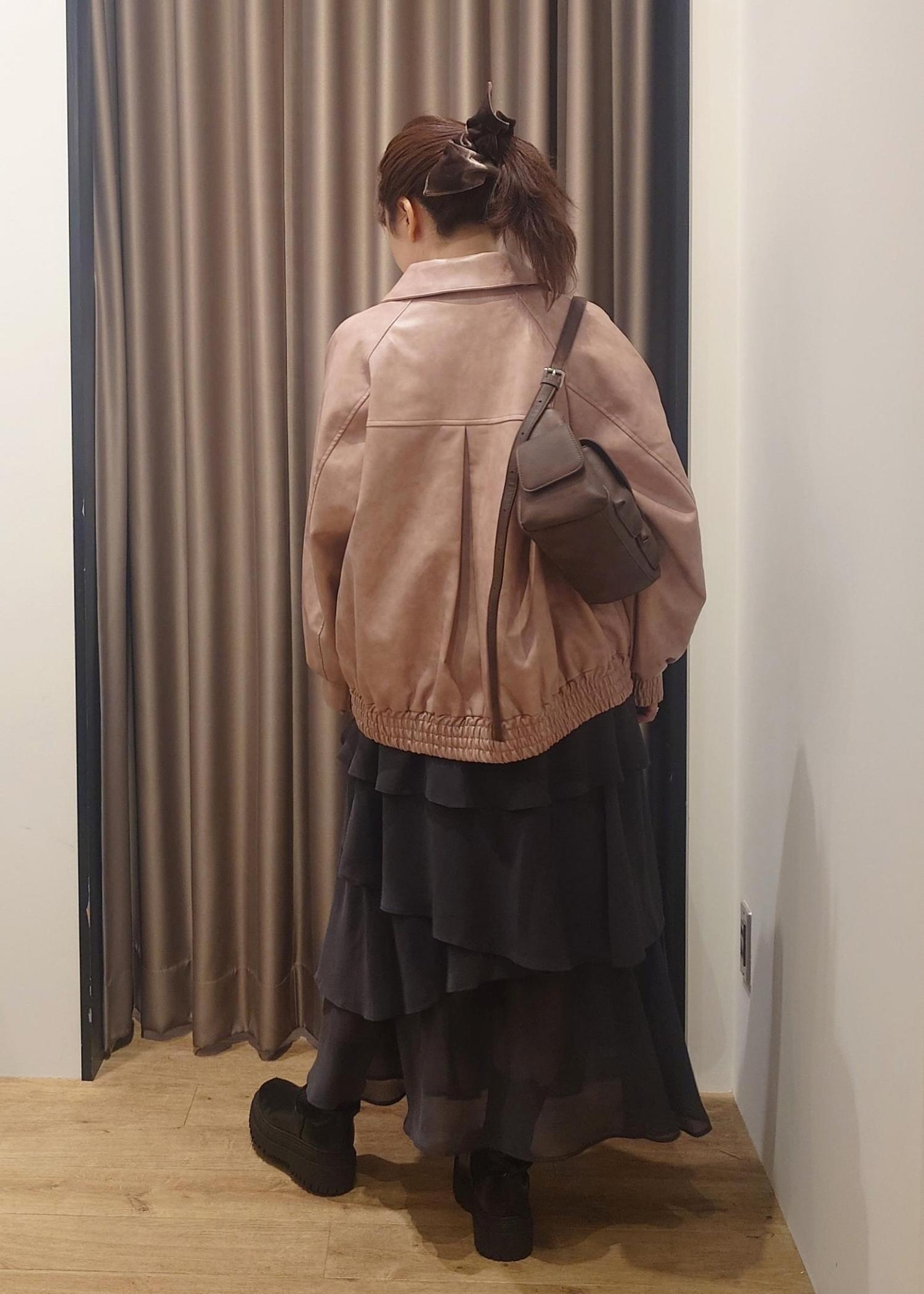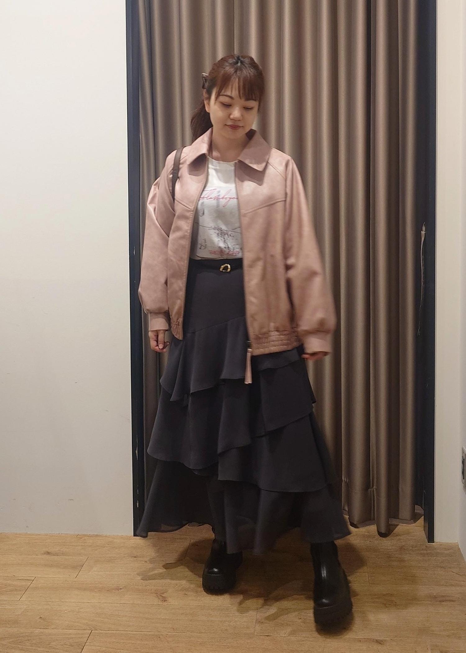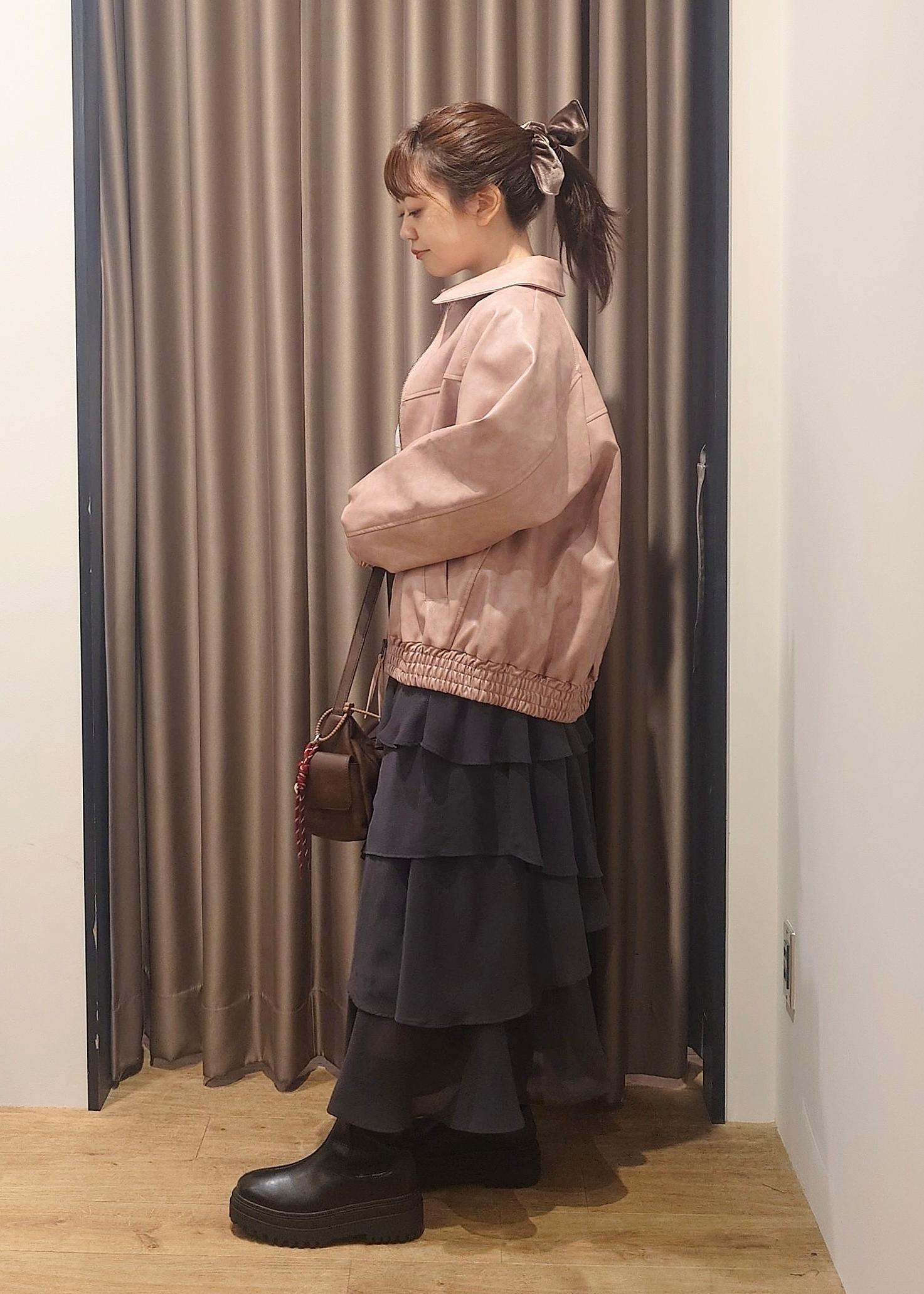ブルゾンのゆったりシルエットでカジュアル可愛いスタイルに。