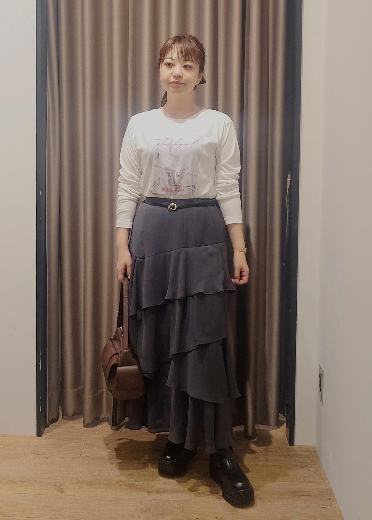 VIS花柄アソート楊柳ティアードスカートチャコール / F¥4,613レビューティアードスカートですが、チャコールだと甘すぎず程よい可愛らしさで着られます。