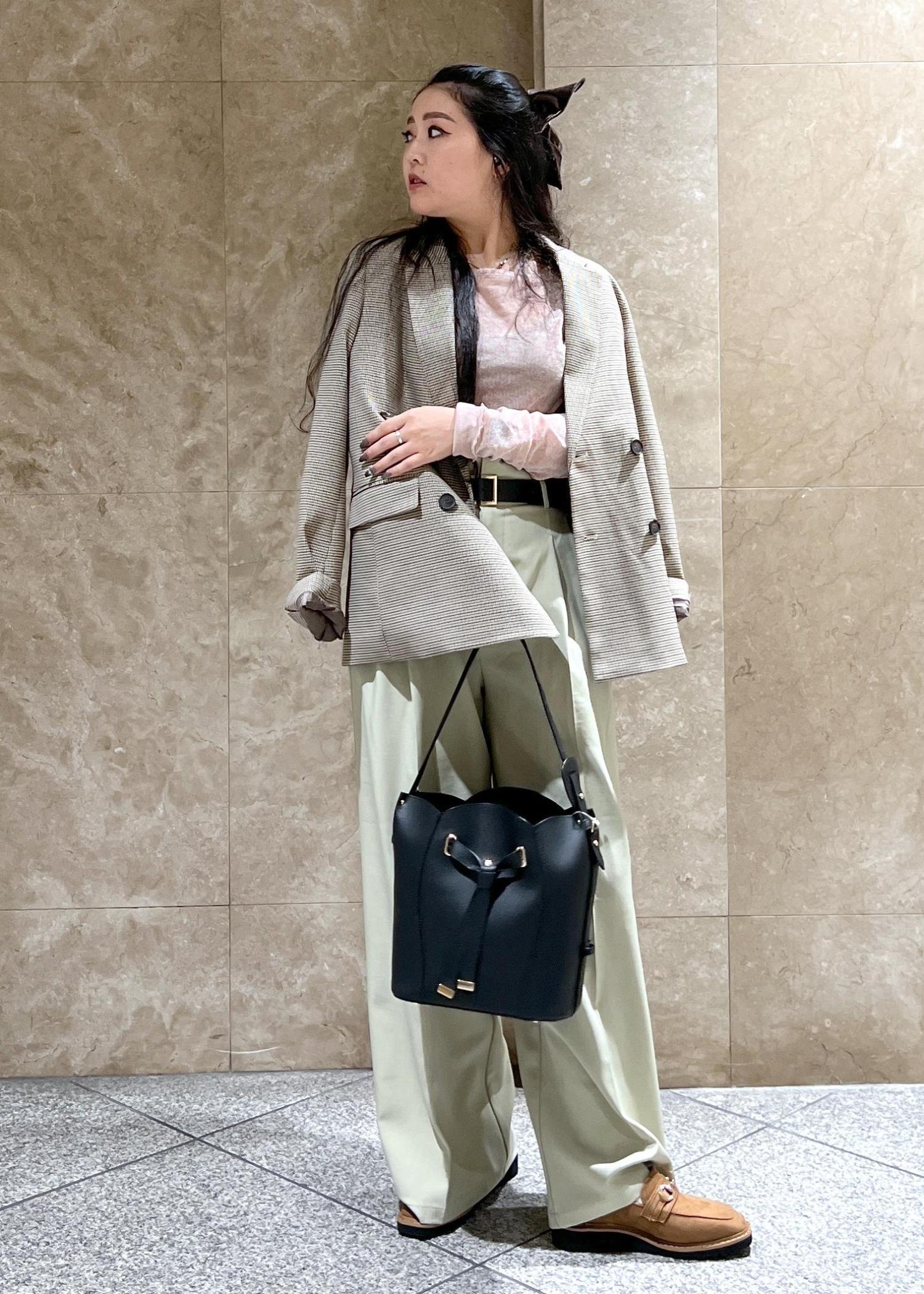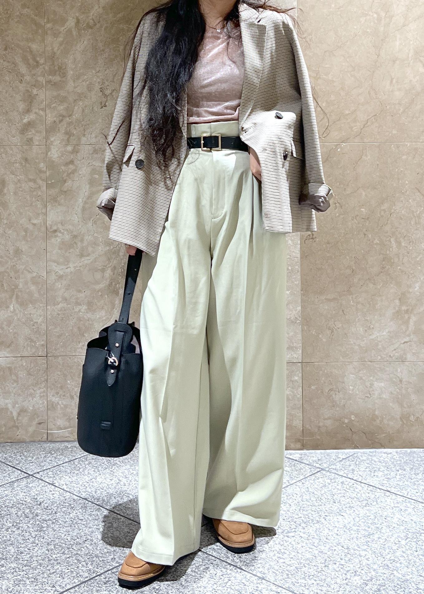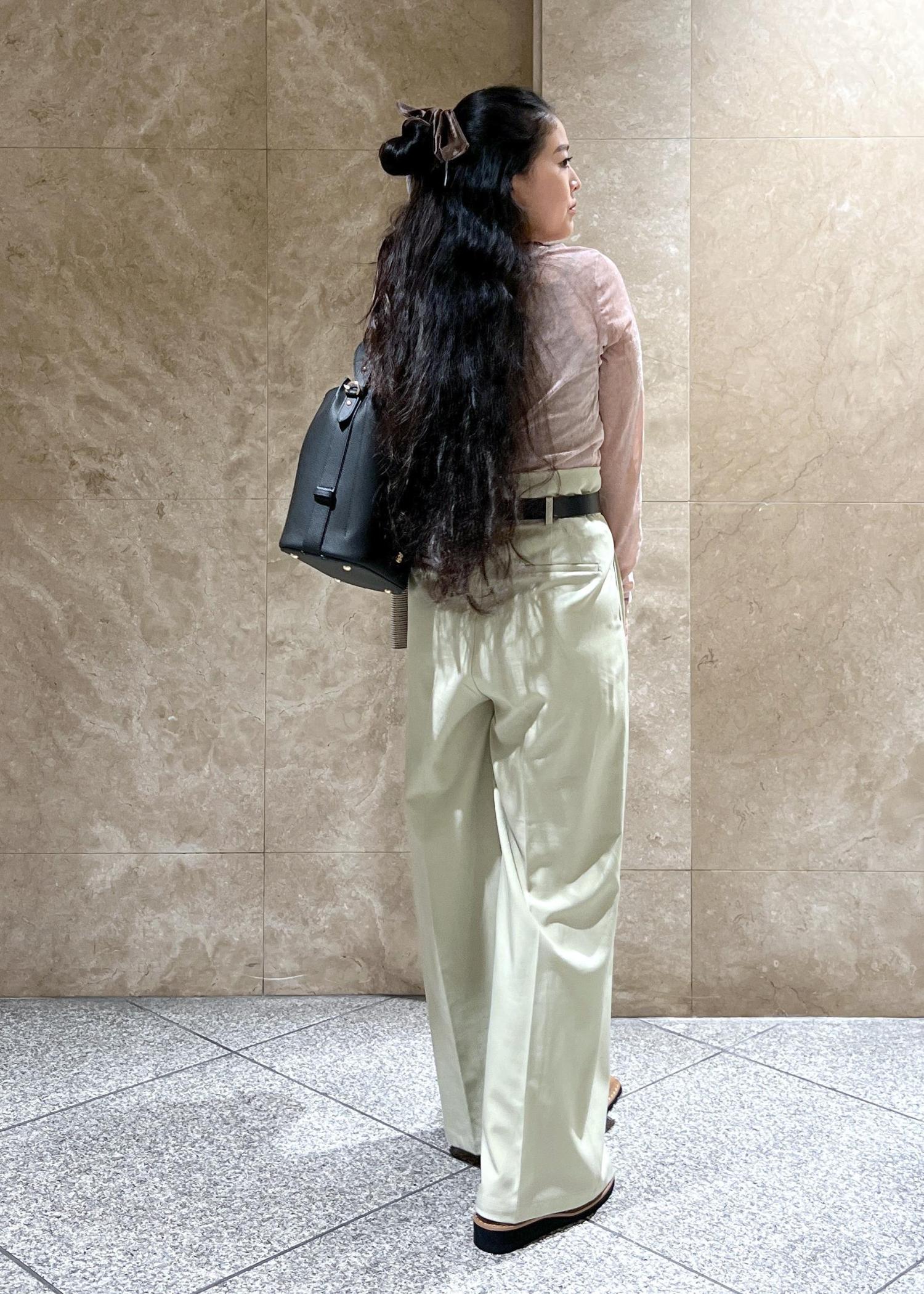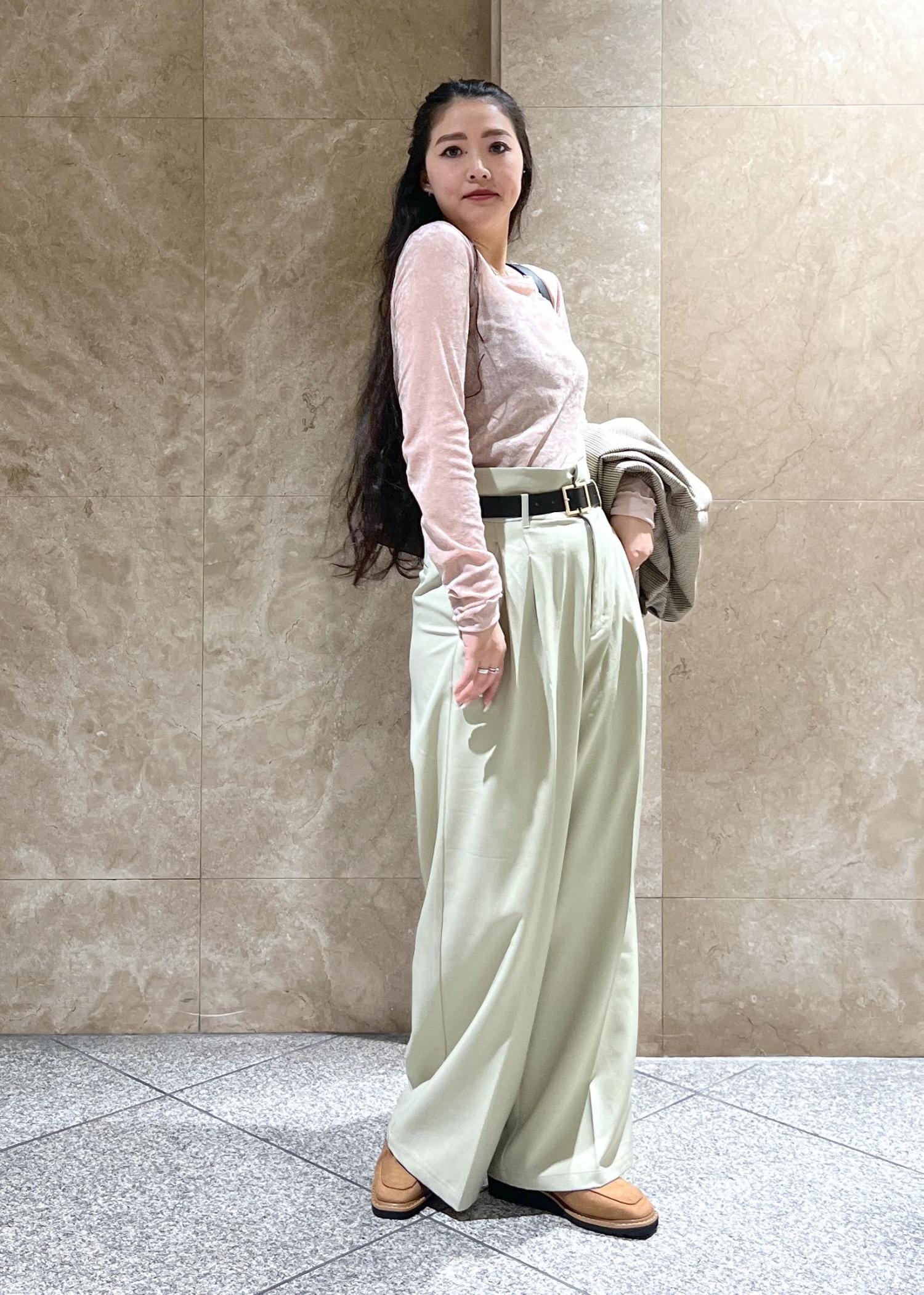 VIS【新色追加】【防シワ/接触冷感】ベルトディテールタックワイドスラックスパンツライトグリーン / M¥6,589レビュー骨格ストレートに大優勝のパンツ、、、お腹とても細見えします!!!感動しました、、、♡
