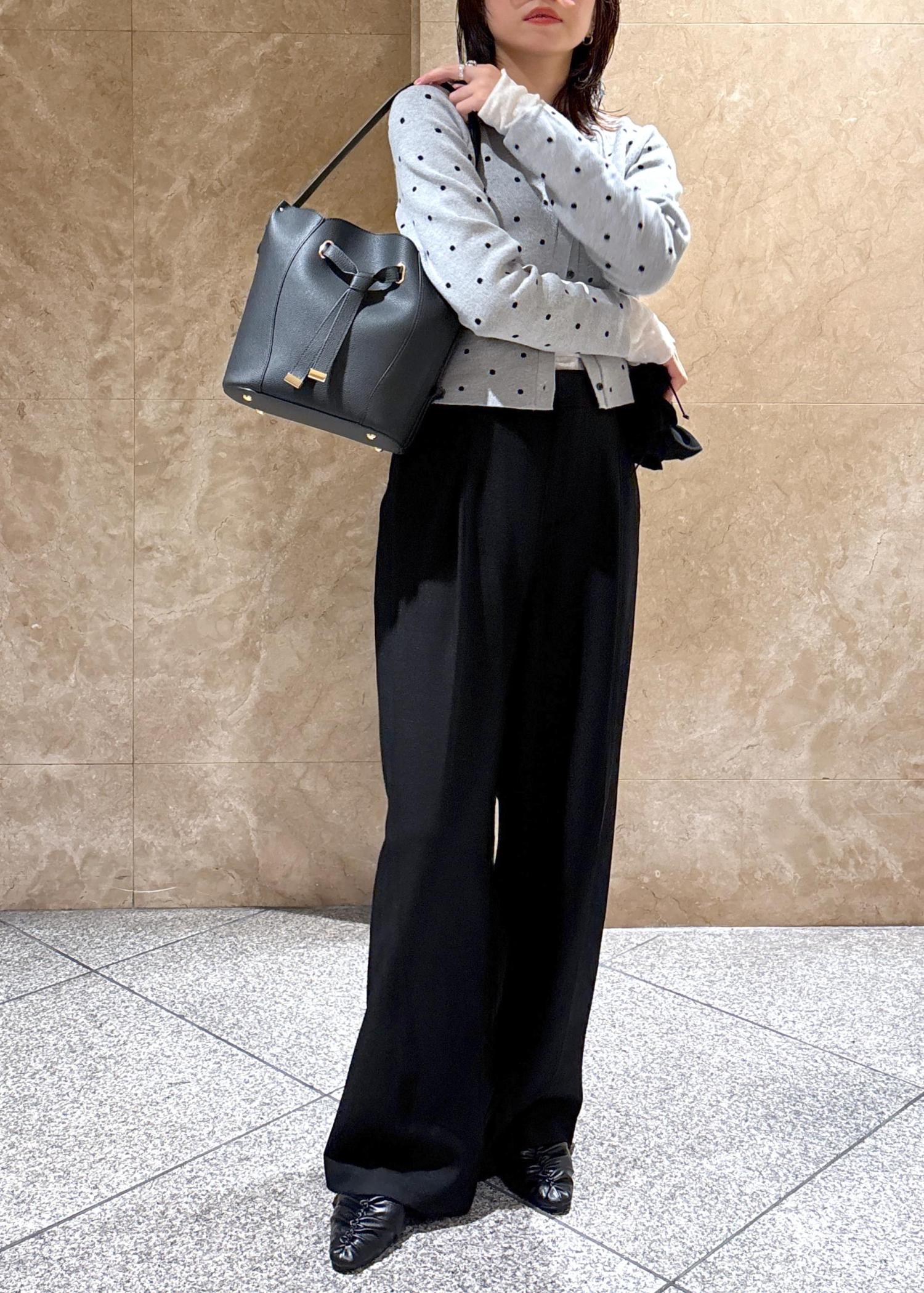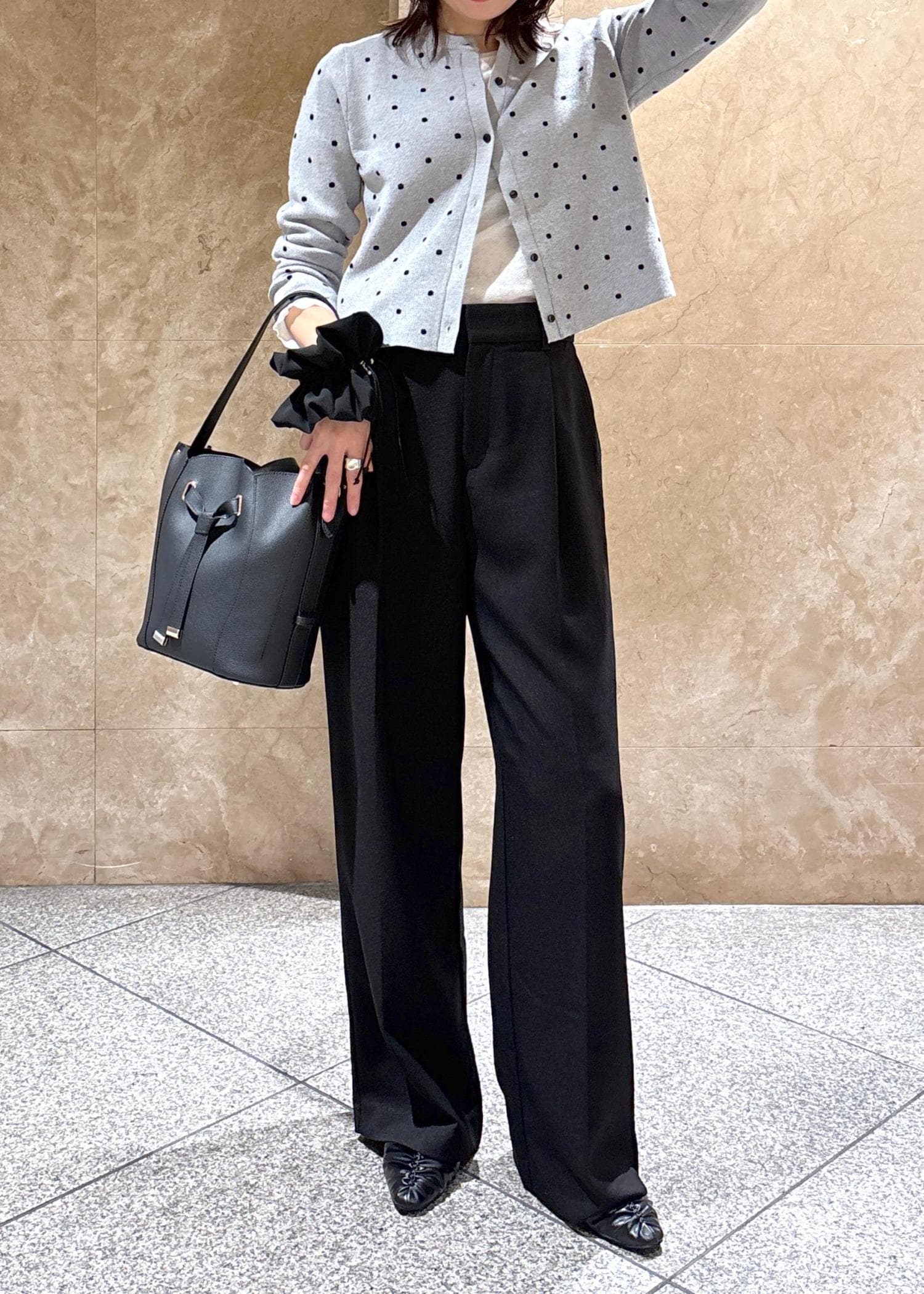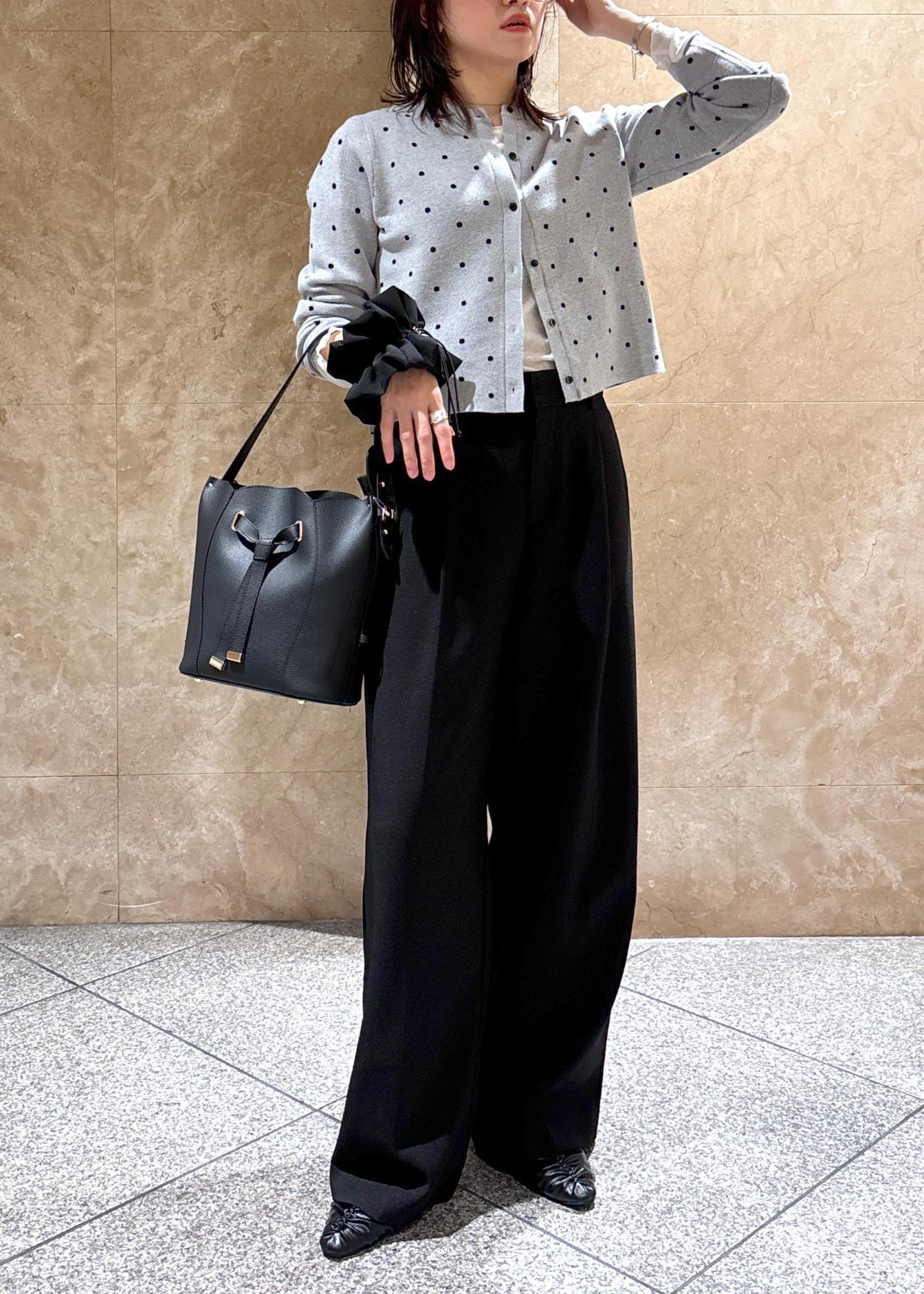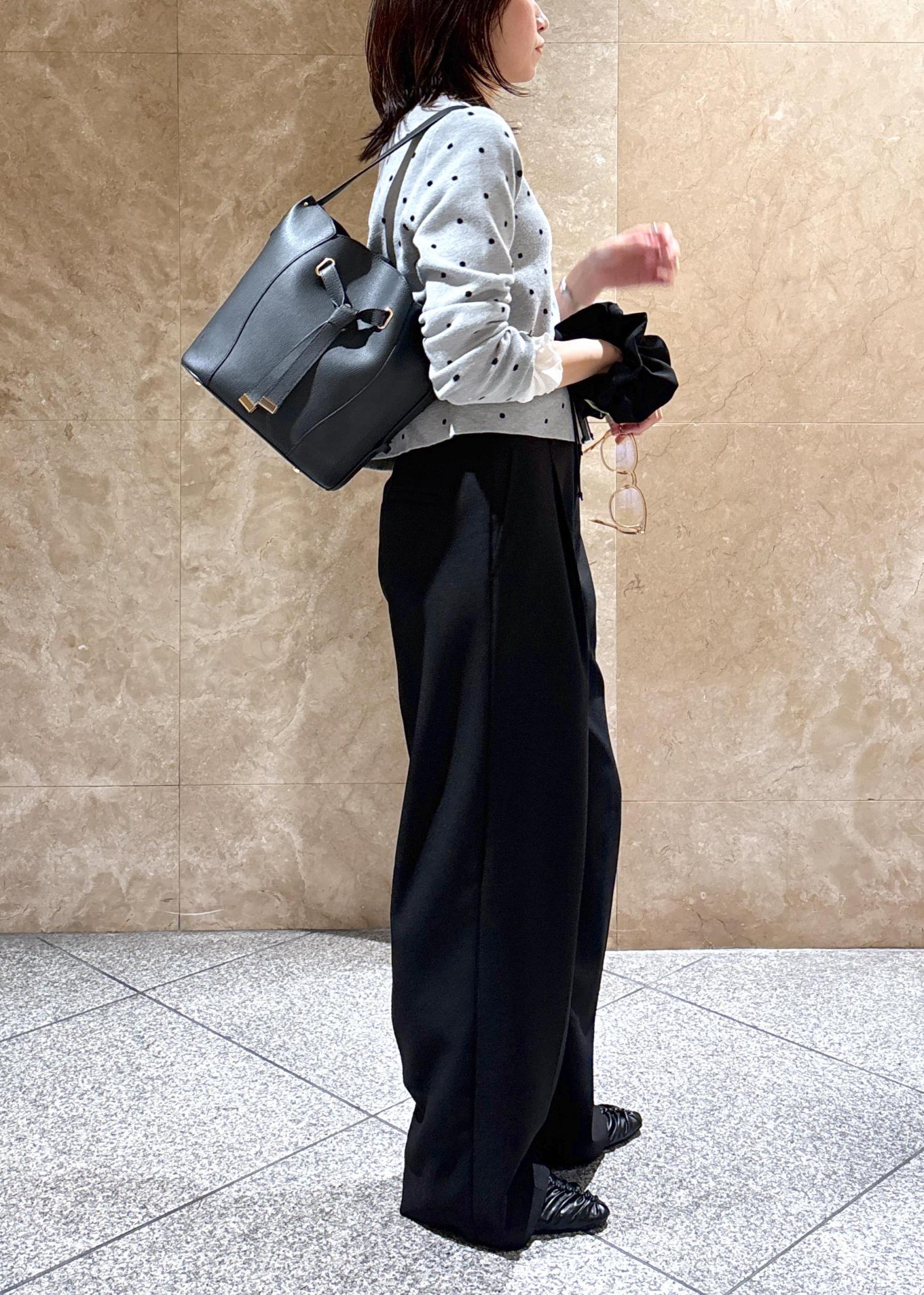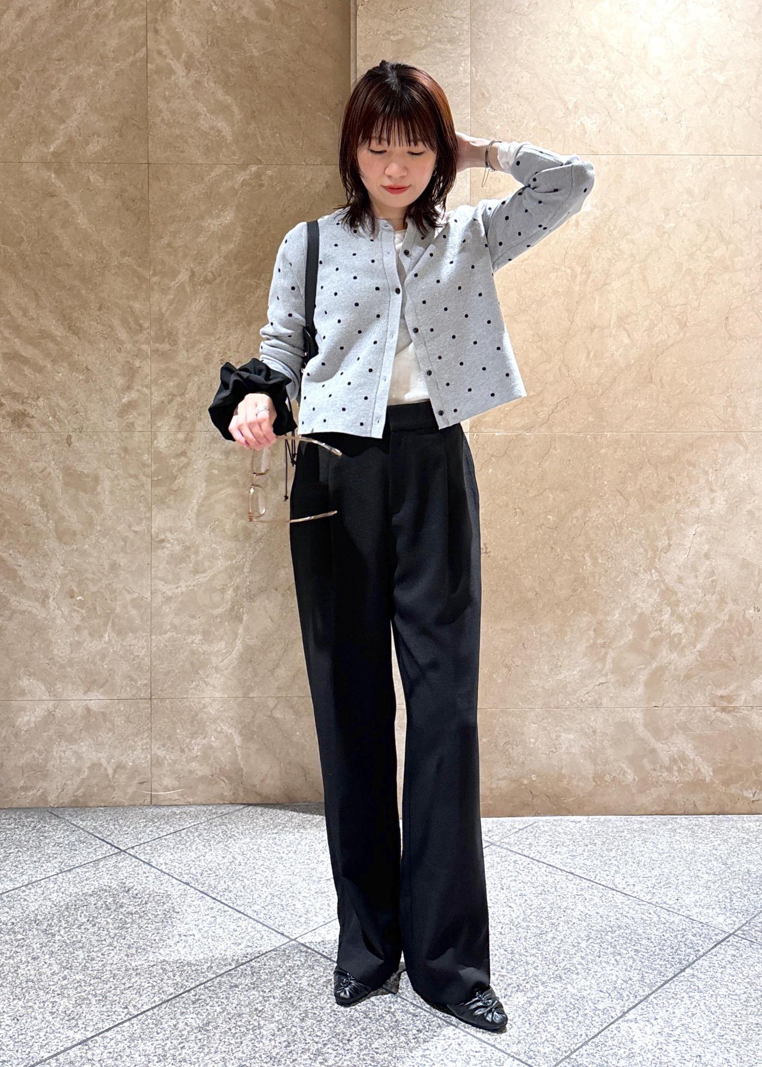 ポリエステルのサラッとした素材なので、カジュアル・キレイめ問わずコーディネートに合わせられます。 -
