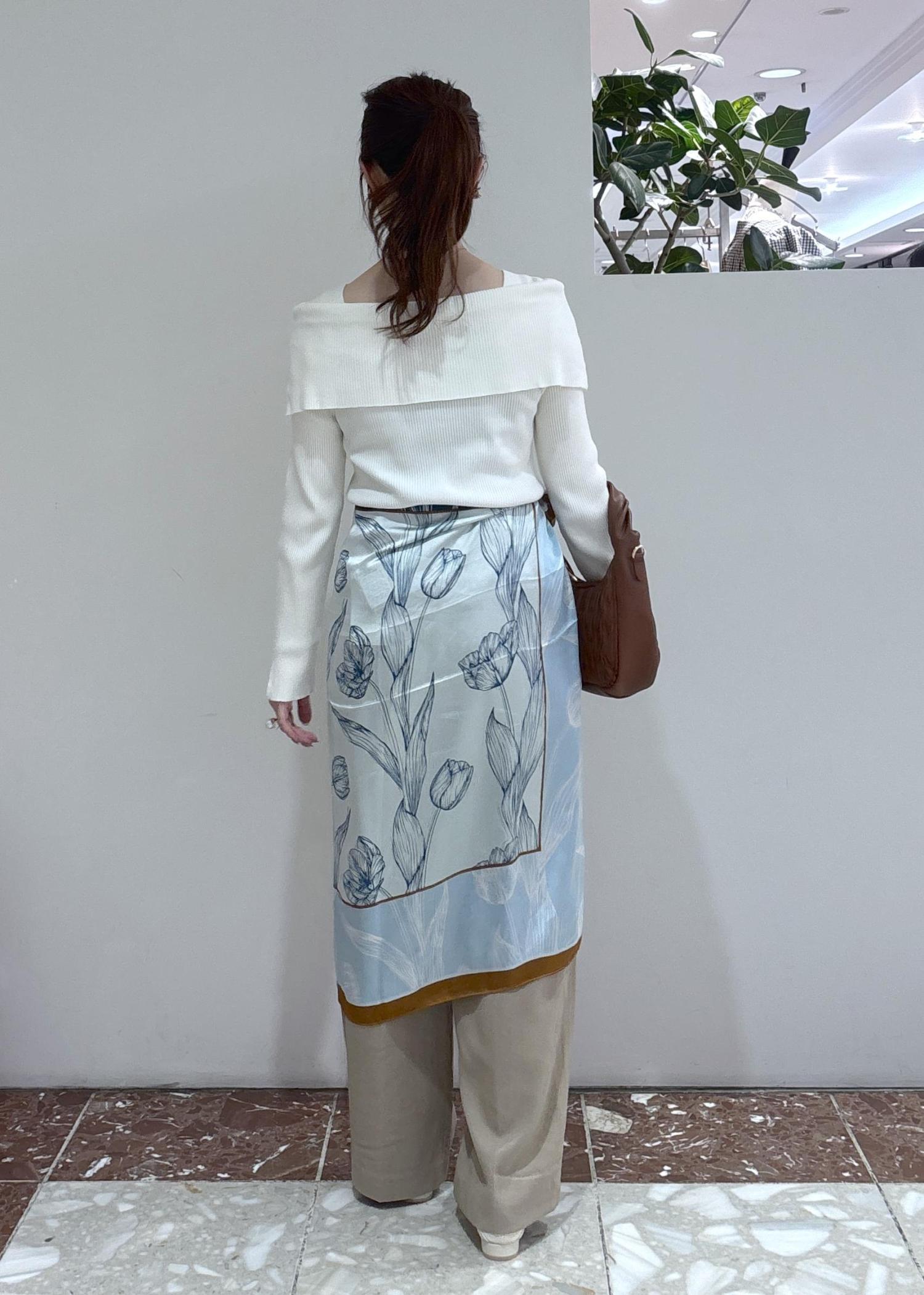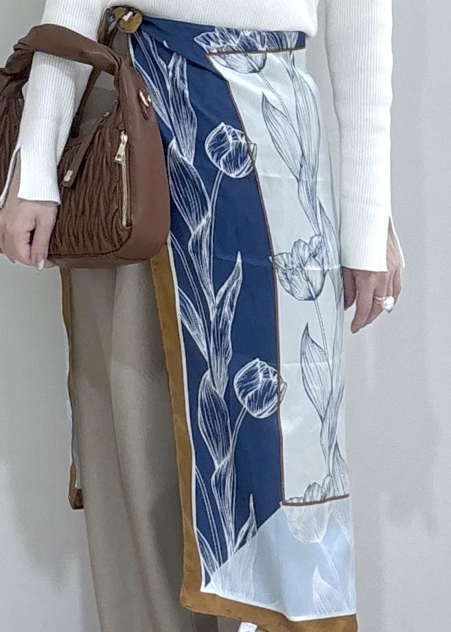 VISチューリップ柄スカーフ90×90cmブルー系 / F¥2,189レビュー大判サイズなので腰巻でもしっかり使えます◎