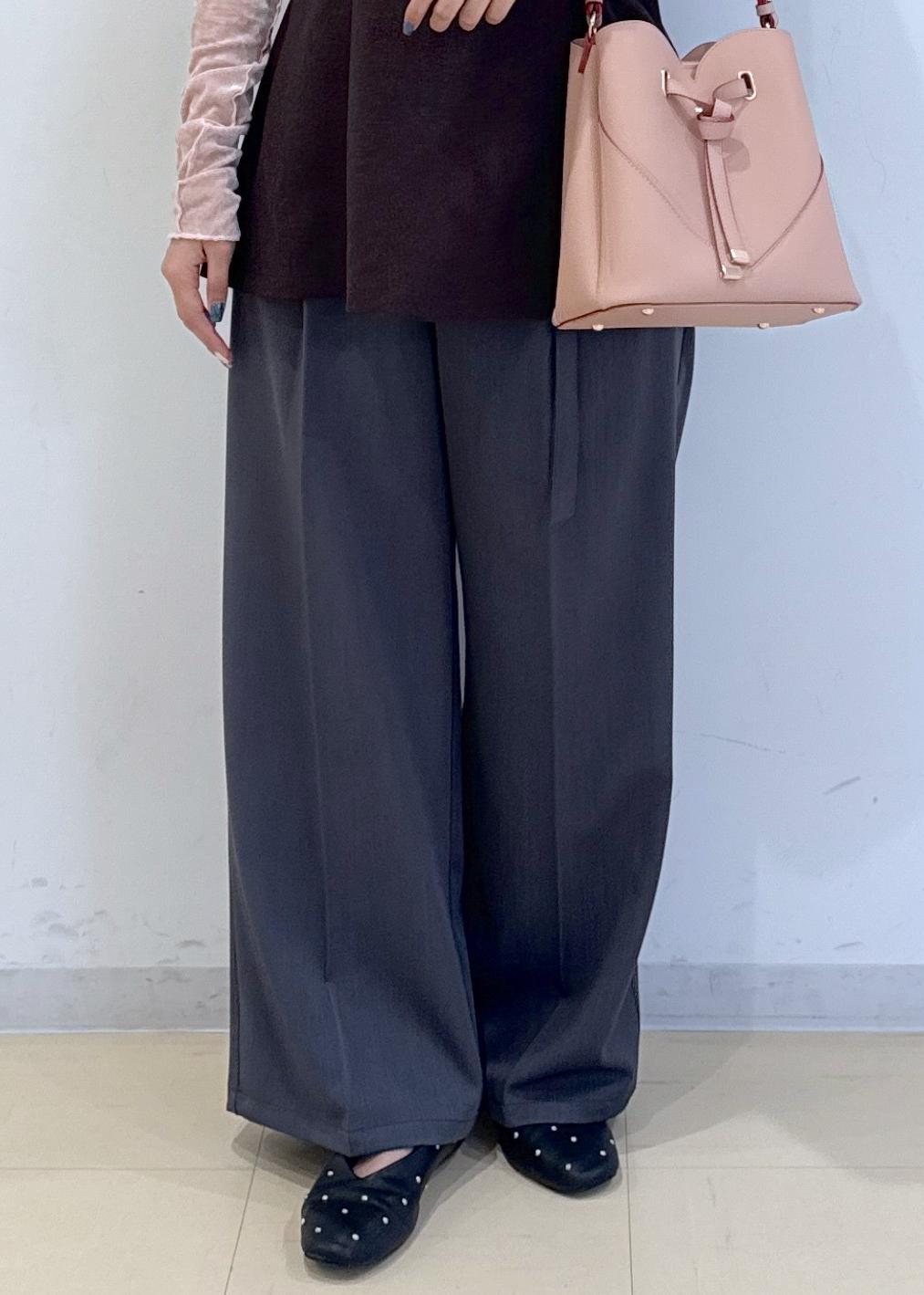 VISベルトディテールタックワイドパンツ/イージーケアチャコール / M¥6,589レビュー下にストンと落ちる生地なので、足が真っ直ぐ見えます。更にハイウエストで、脚長効果もしっかり◎とにかく動きやすくて履きやすくてシルエットが綺麗な神パンツです。ハイウエストでインをすると、バランス調整が少し難しいので、コンパクトめなトップスと合わせることをオススメします