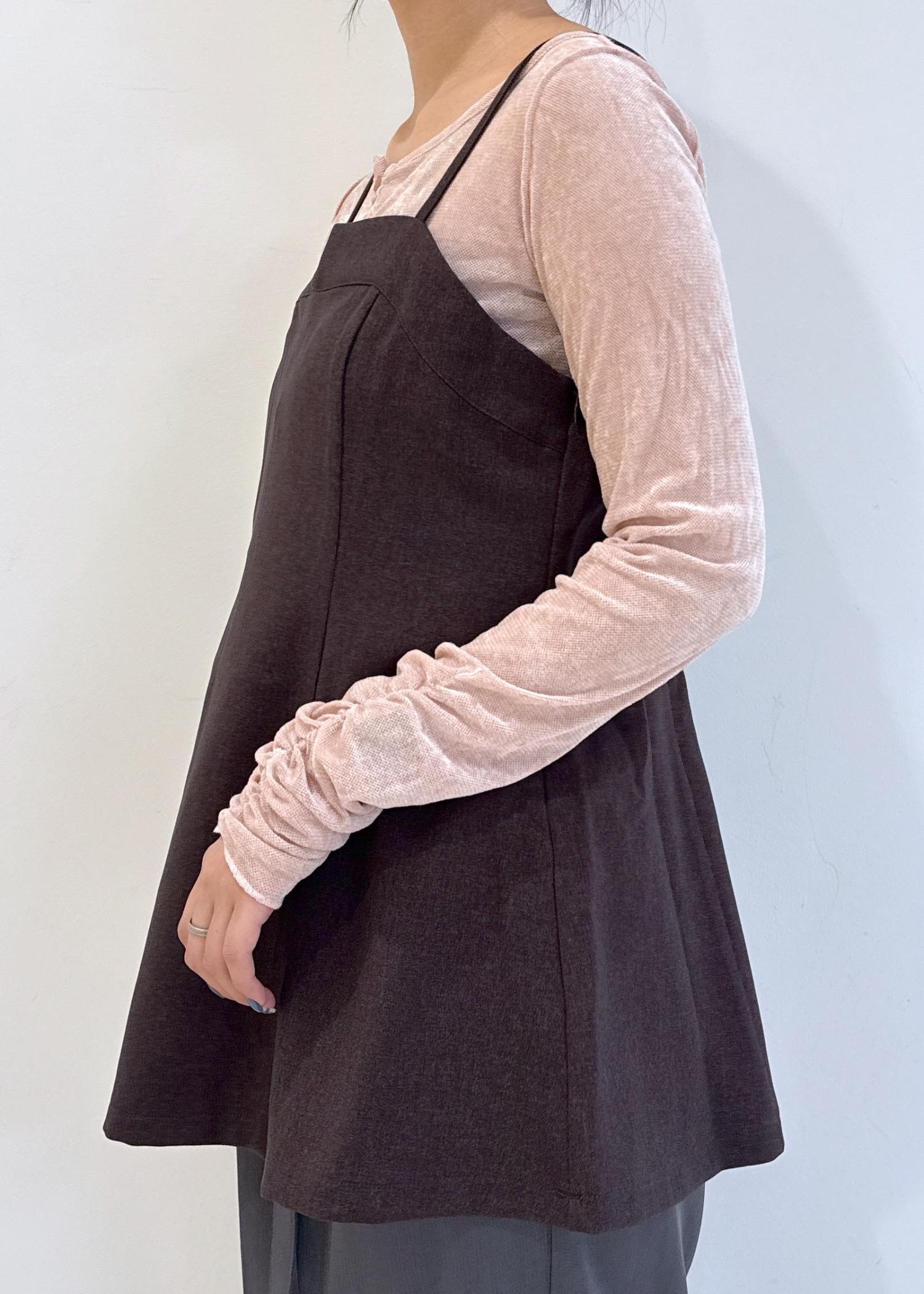 肩紐で調節も可能です。ペプラムシルエットなので、おしりや骨盤が隠せるのも嬉しいです◎ -