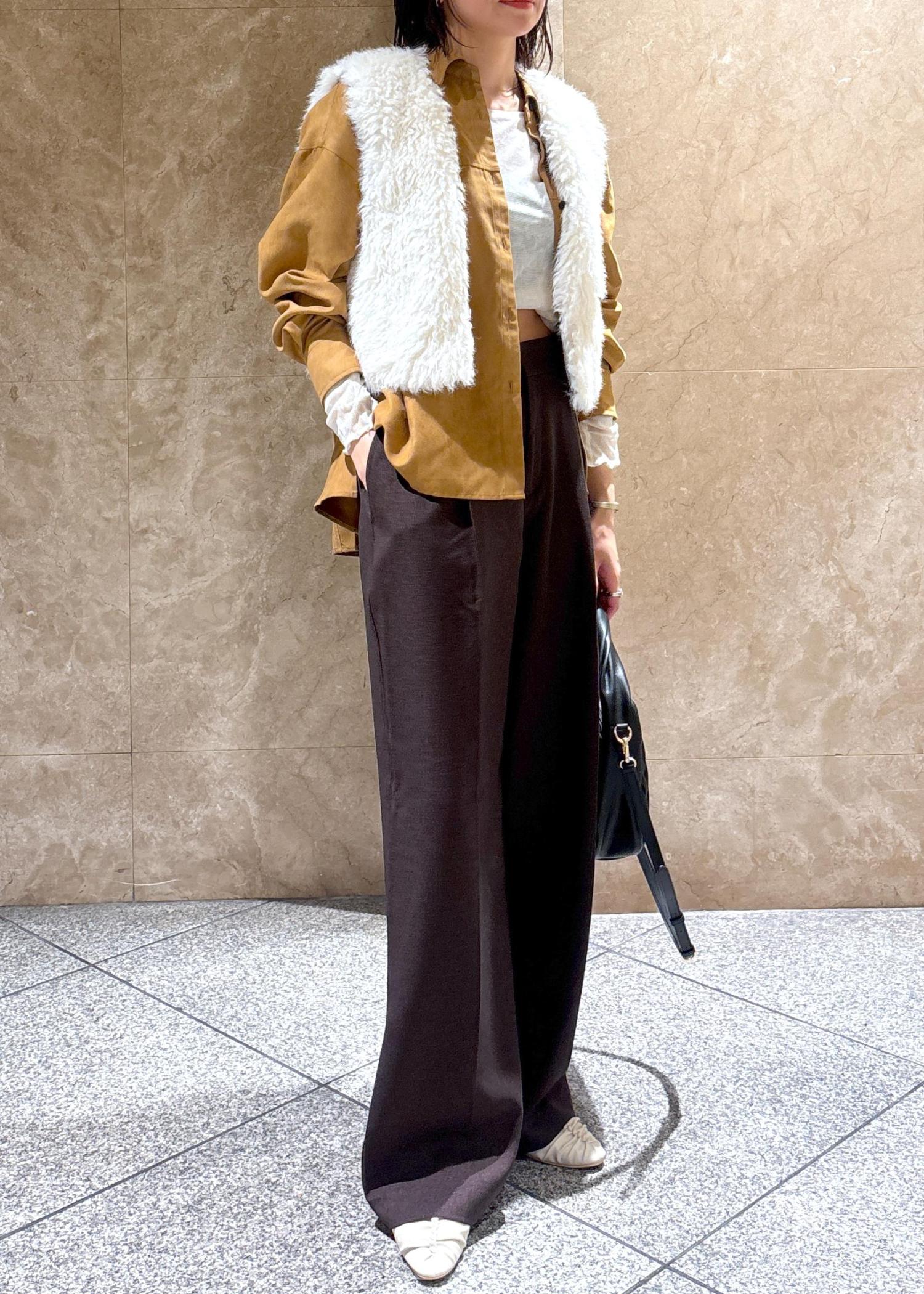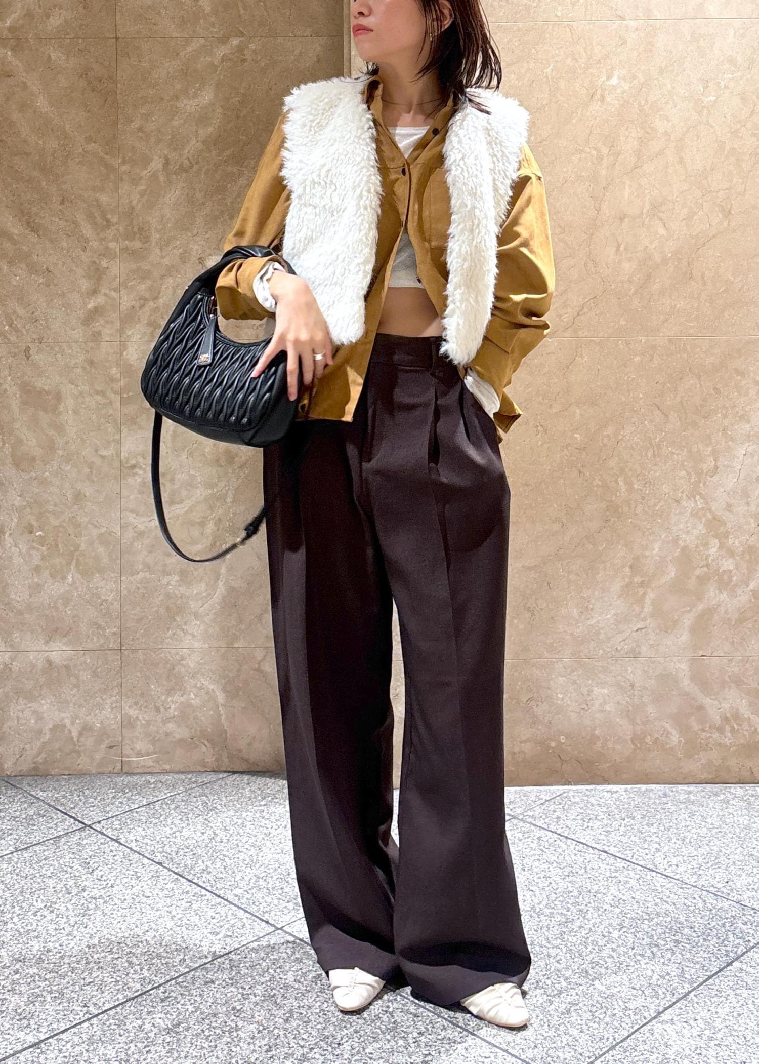 VIS【美easy】ウーリッシュワンタックワイドパンツ【セットアップ対応/洗える】ダークブラウン / L¥6,589レビューMサイズだと長さもウエストもジャスト。