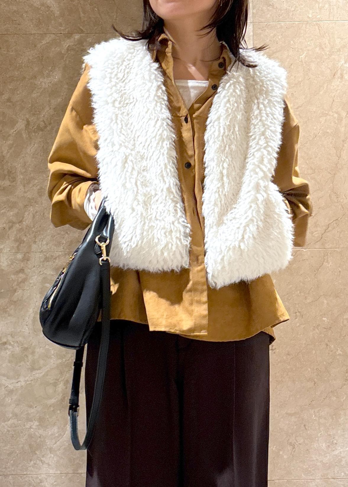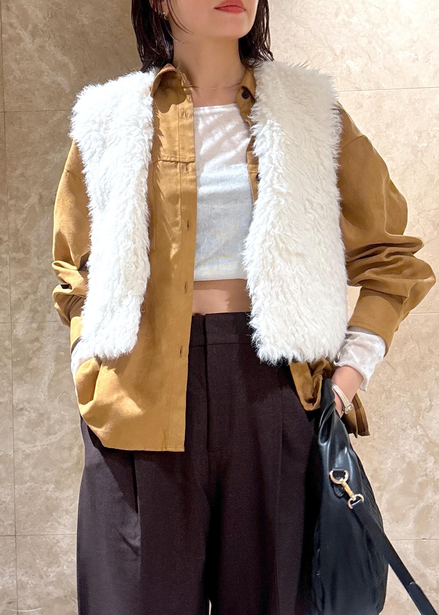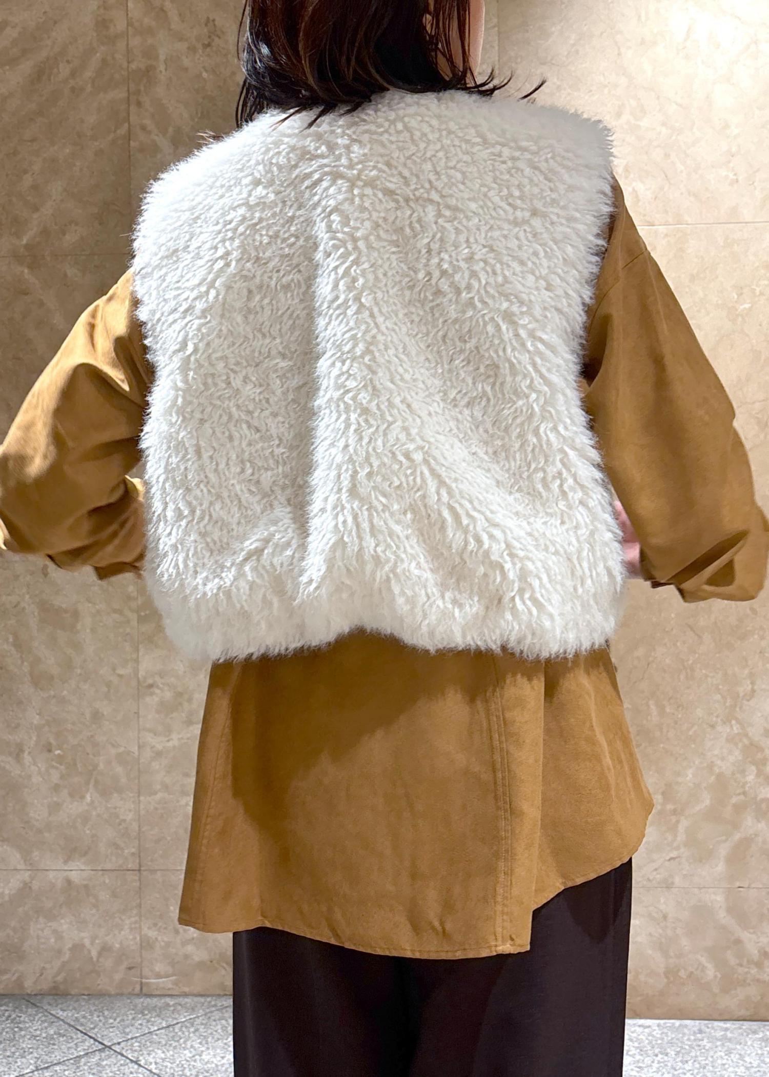 VISアソートファーショートベストキナリ / F¥8,899レビューキナリ(16)は毛足がクリンとうねった素材で、グレー系(09)は毛足はまっすぐで滑らかな柔らかい素材。