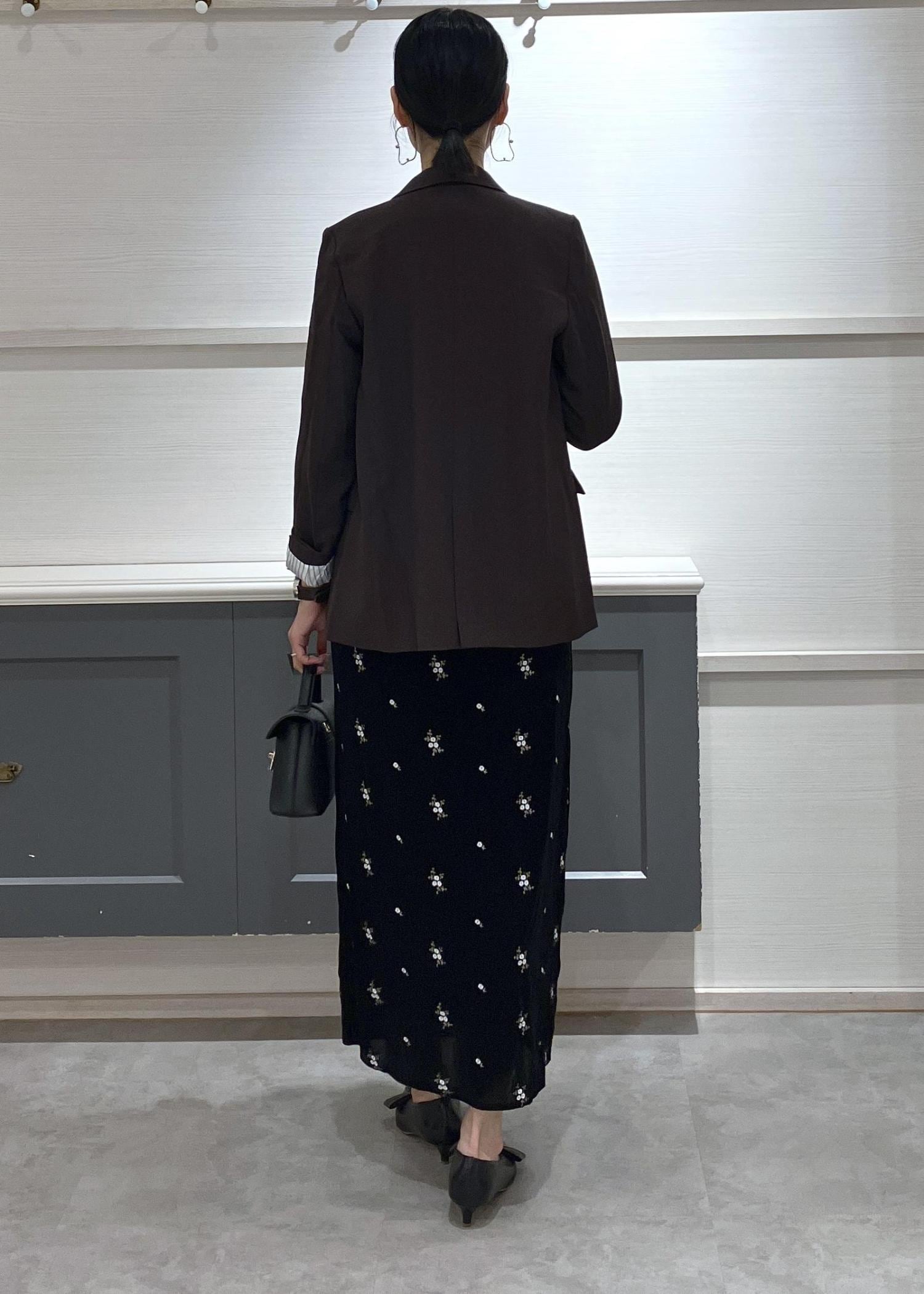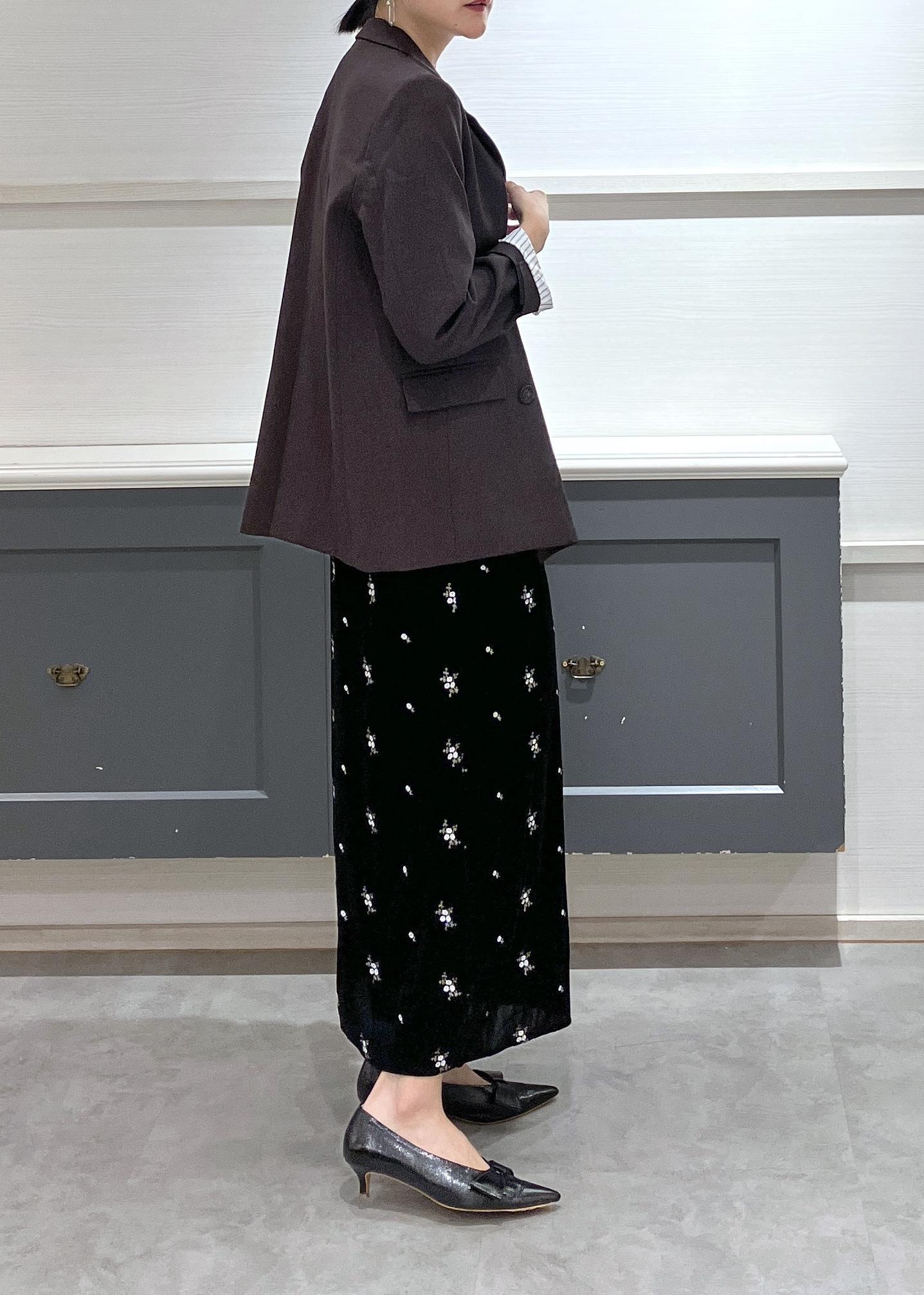 イエベ秋さんなら間違いなく顔映りを良くしてくれるダークブラウンジャケットに上品なベロアワンピを合わせて、お出かけしたくなるようなコーデにしました♡
