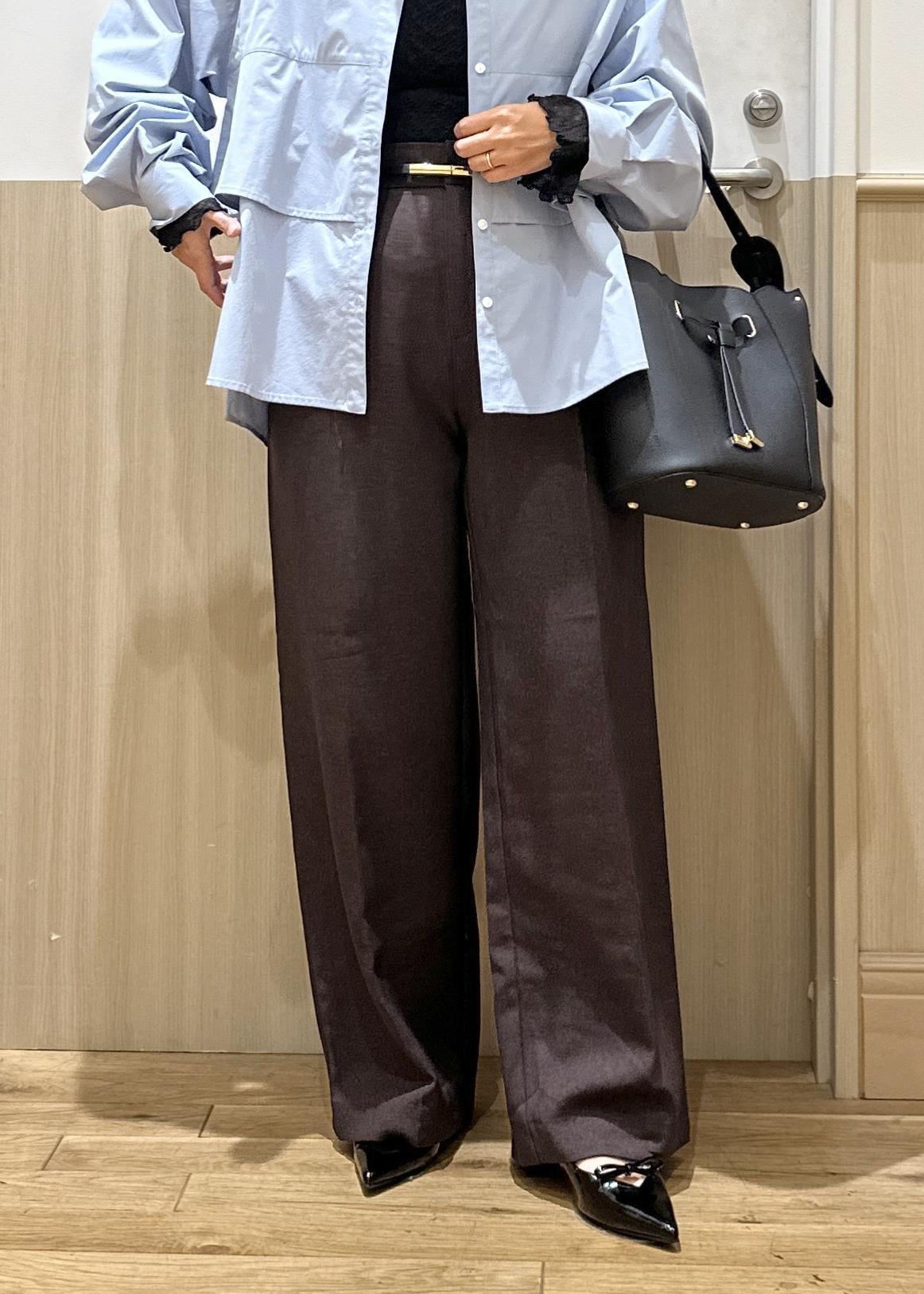 ブラウンはポリエステル100%ですが、高見えする素材感で履くだけで垢抜けるパンツです。