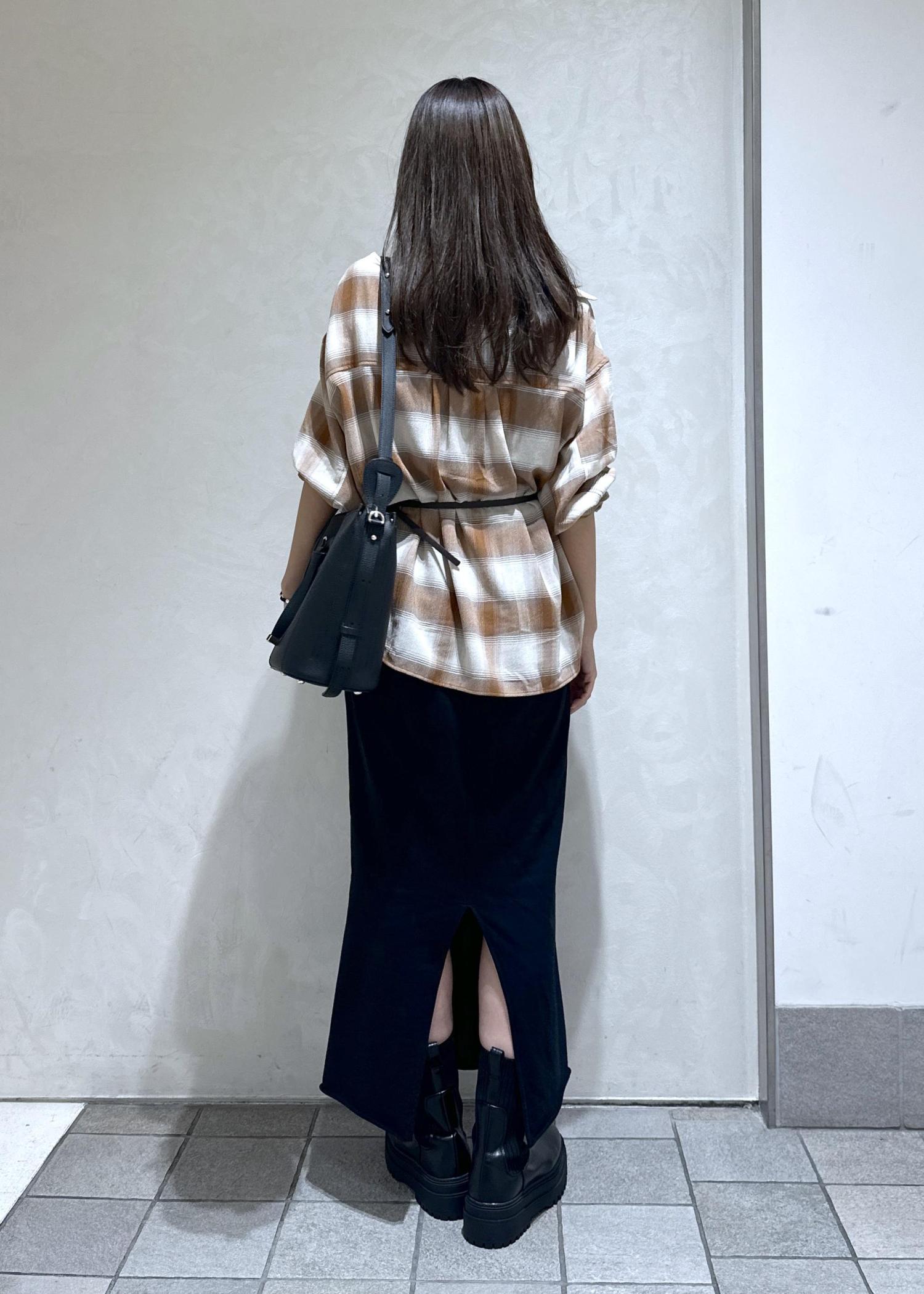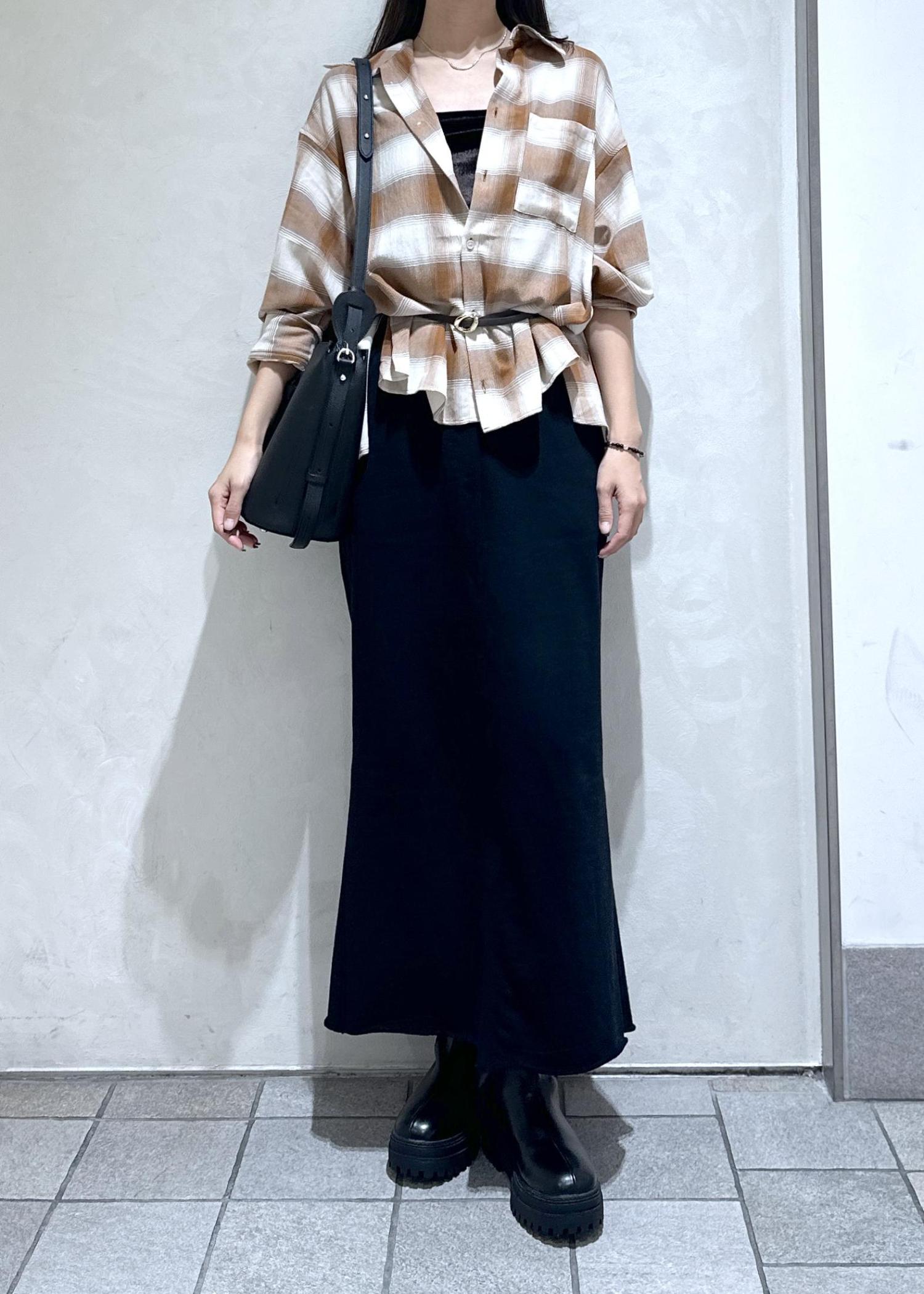 VISミニ裏毛ナロースカートブラック / F¥5,489レビュー165cmの私が着用してしっかりロング丈になりました!シルエットがすごく綺麗です!合わせ方次第でキレイめや甘めにもコーディネートできます◎スリットも入っていて歩きやすいです!