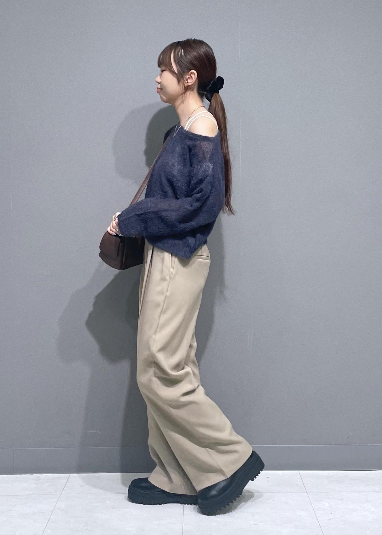透け感があるので、見えても大丈夫なキャミソールや、シャツなどをレイヤードすると可愛く着こなせます -