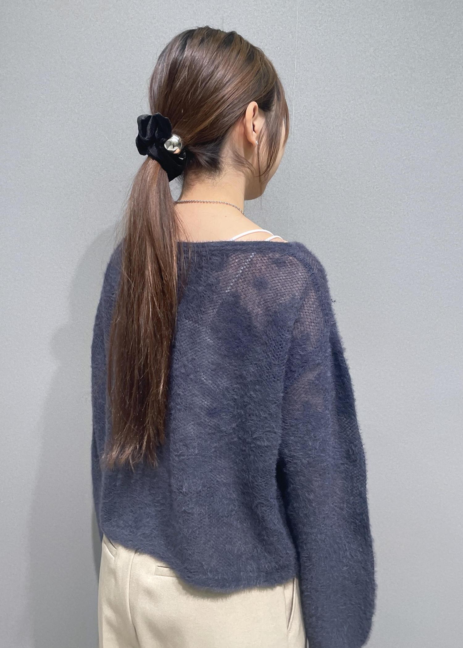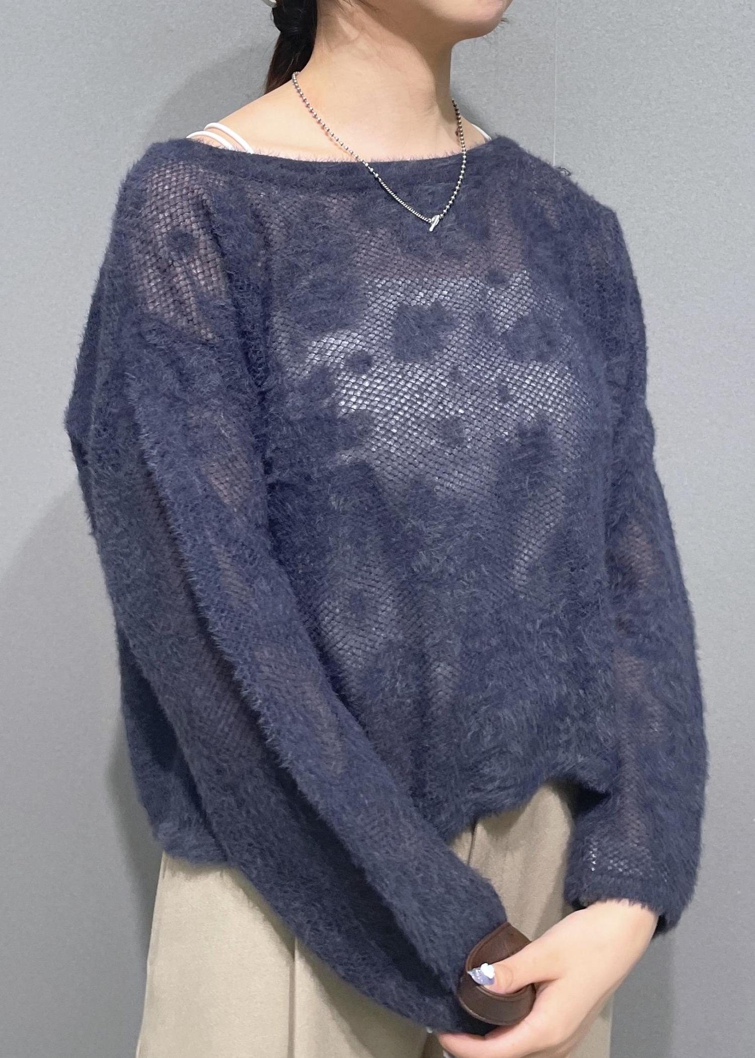VISフラワーモチーフフェザーシアーニットチャコール / F¥3,842レビュー柔らかいフェザーのシアーニットです