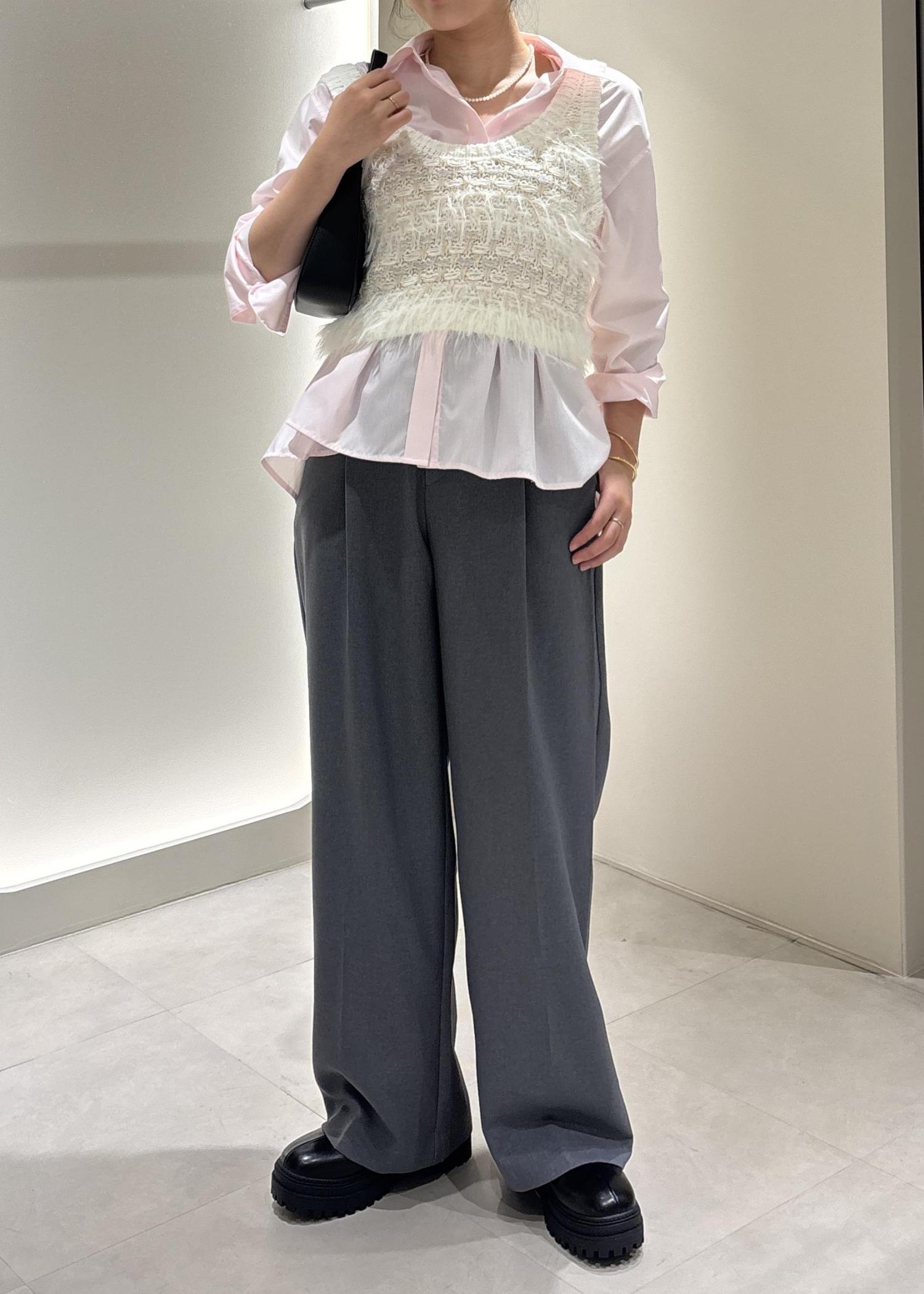 広がりすぎないワイドシルエットで、オンオフ着回せます◎