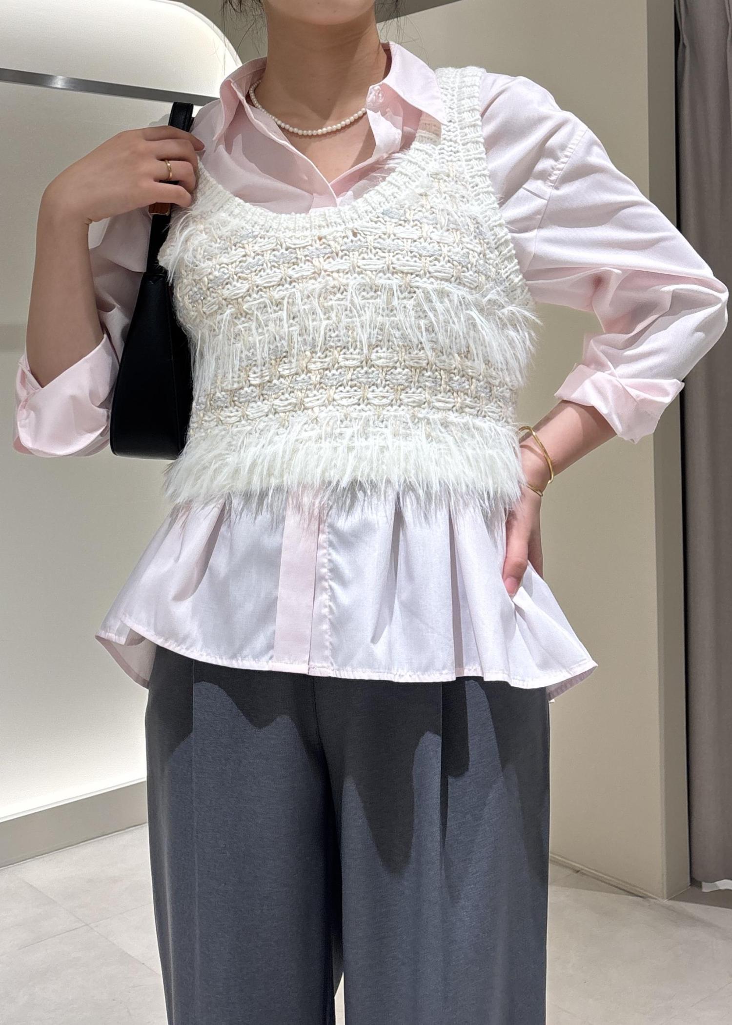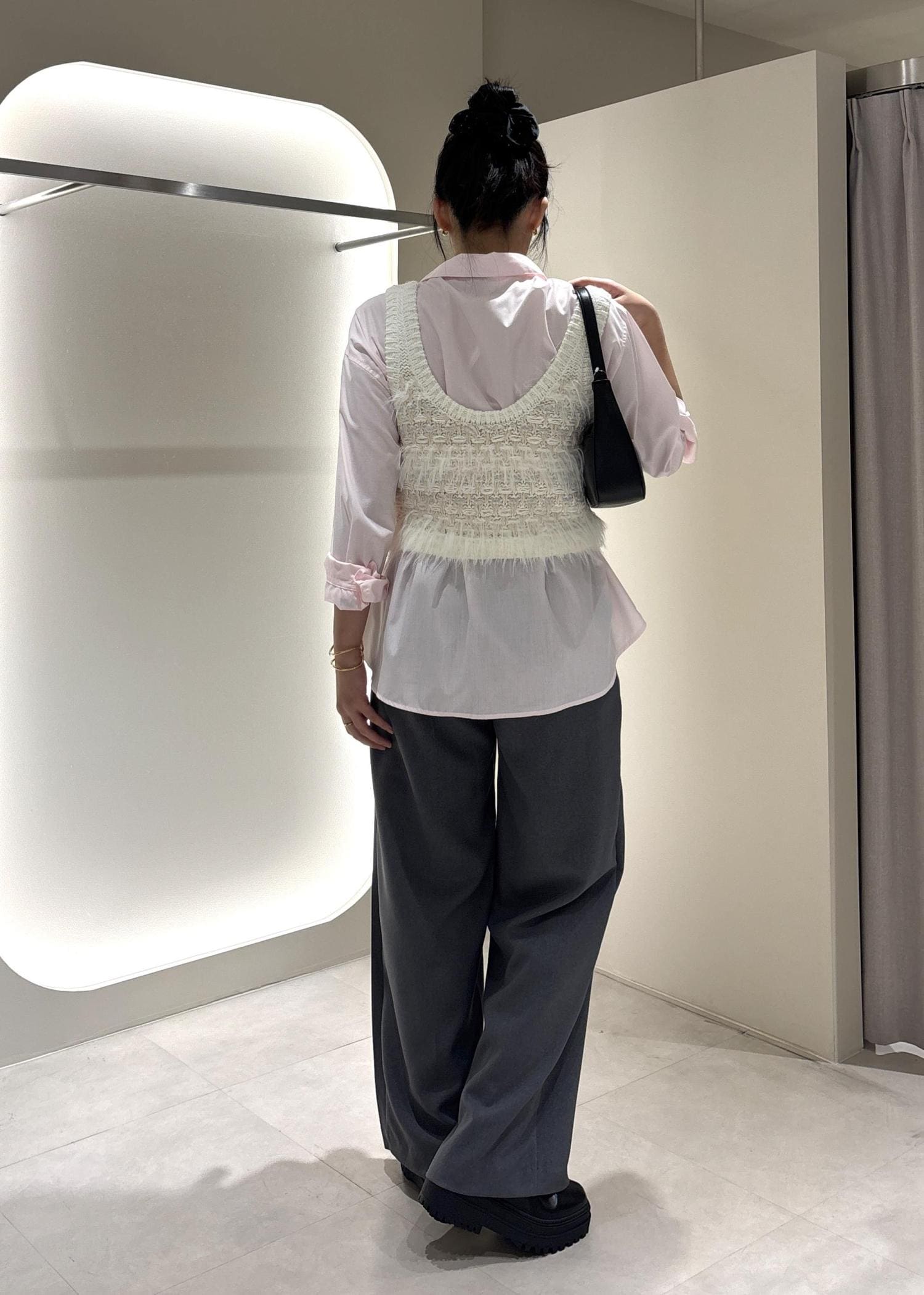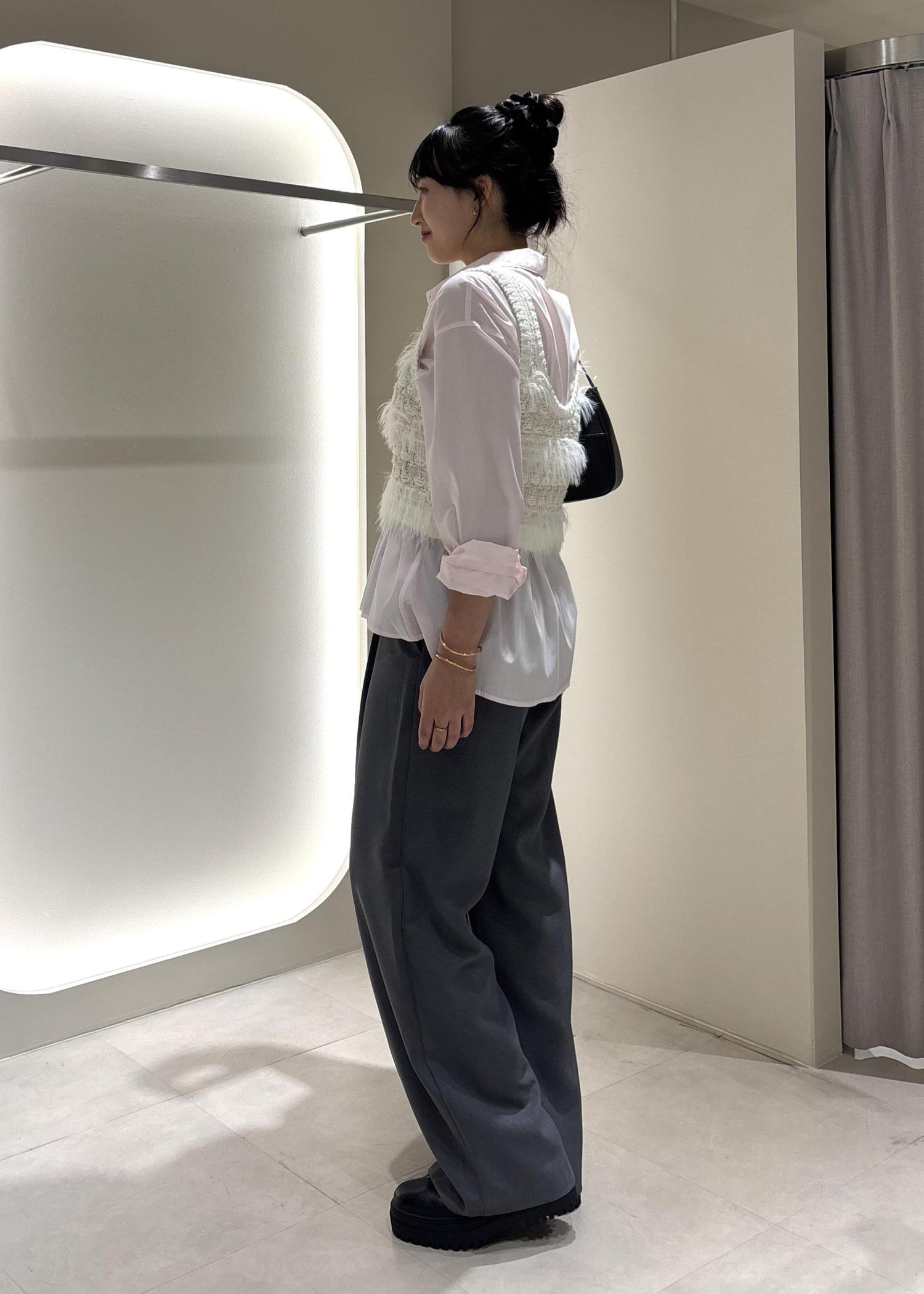 シャツやカットソー、ゆとりがあるのでニットにも合わせていただけます!