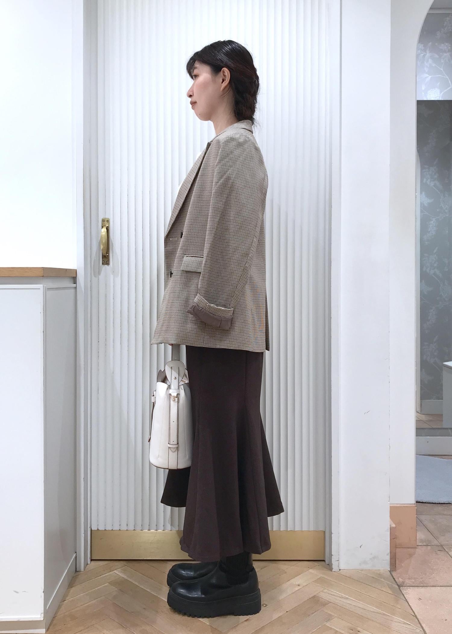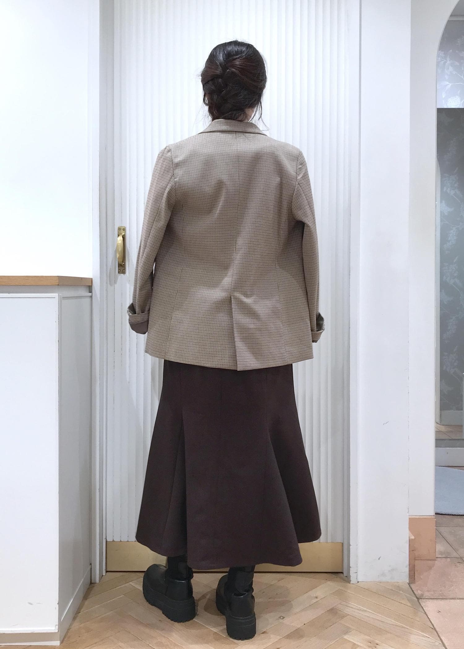 チェックジャケット×ニット×スカートの定番キレイ目コーデです!