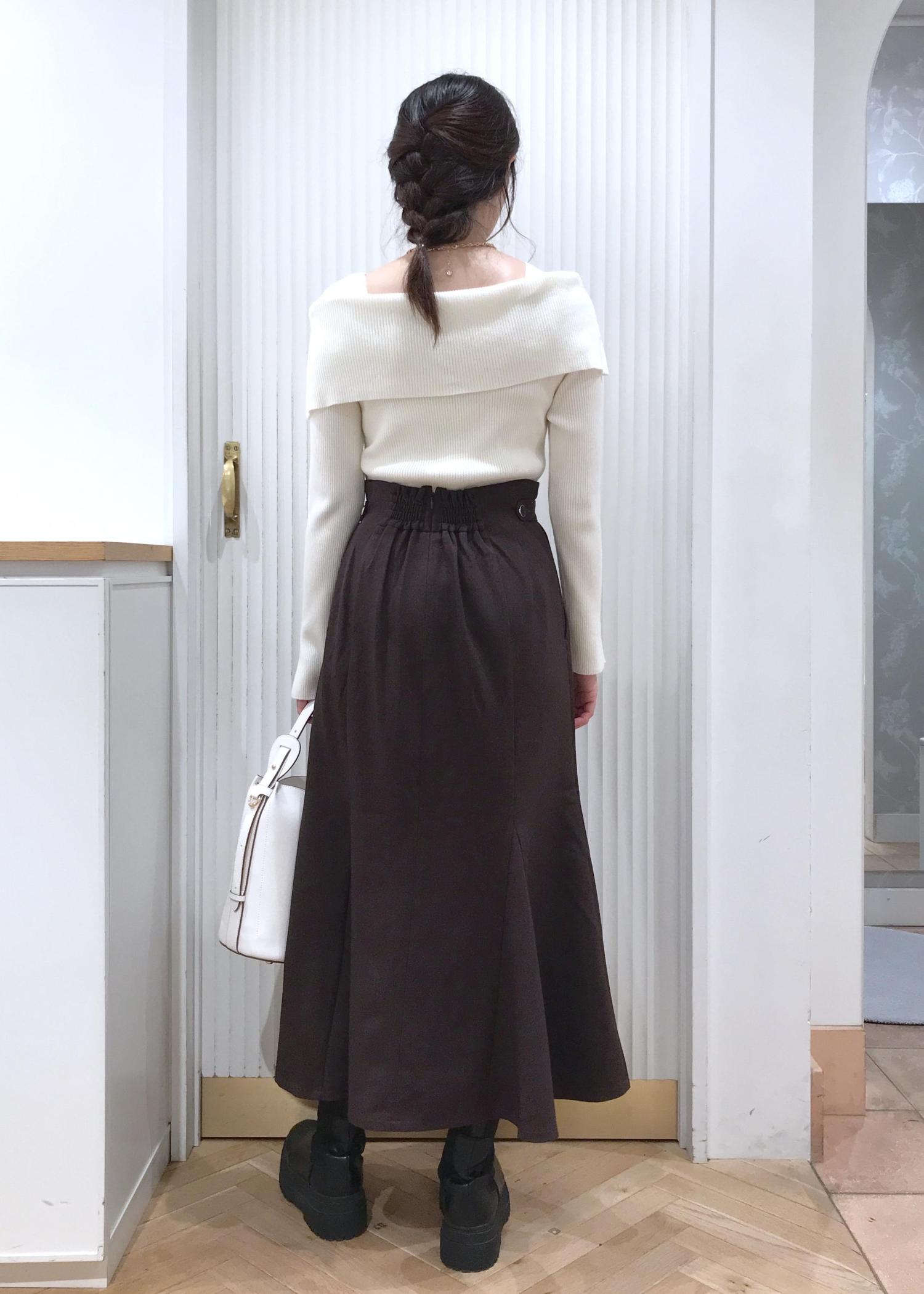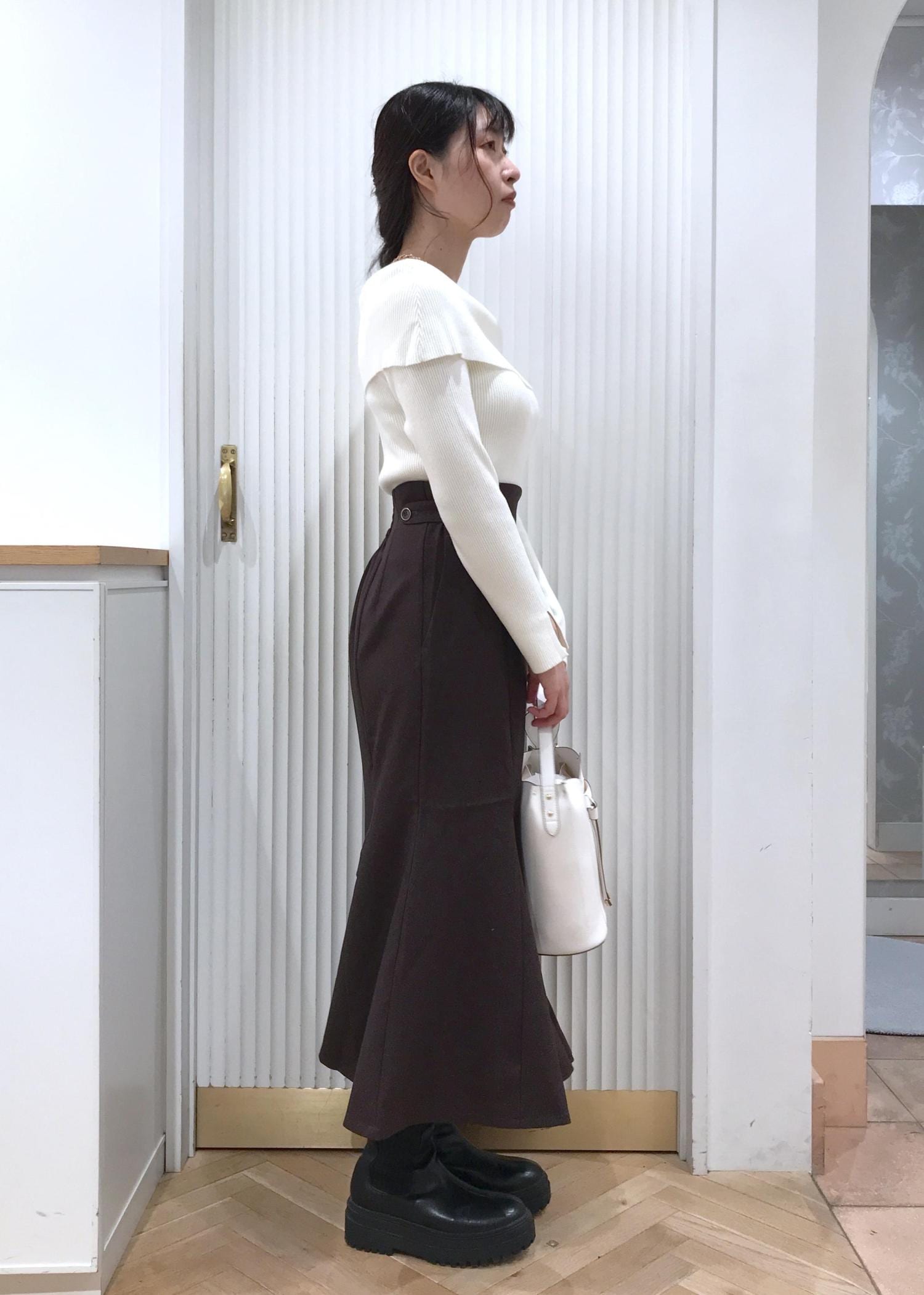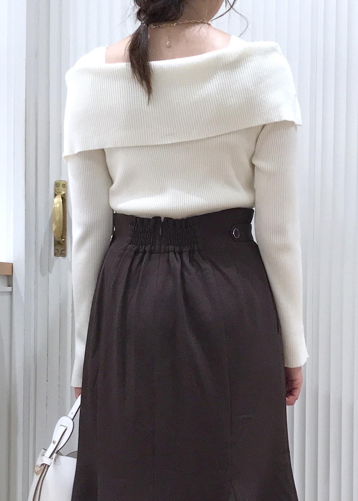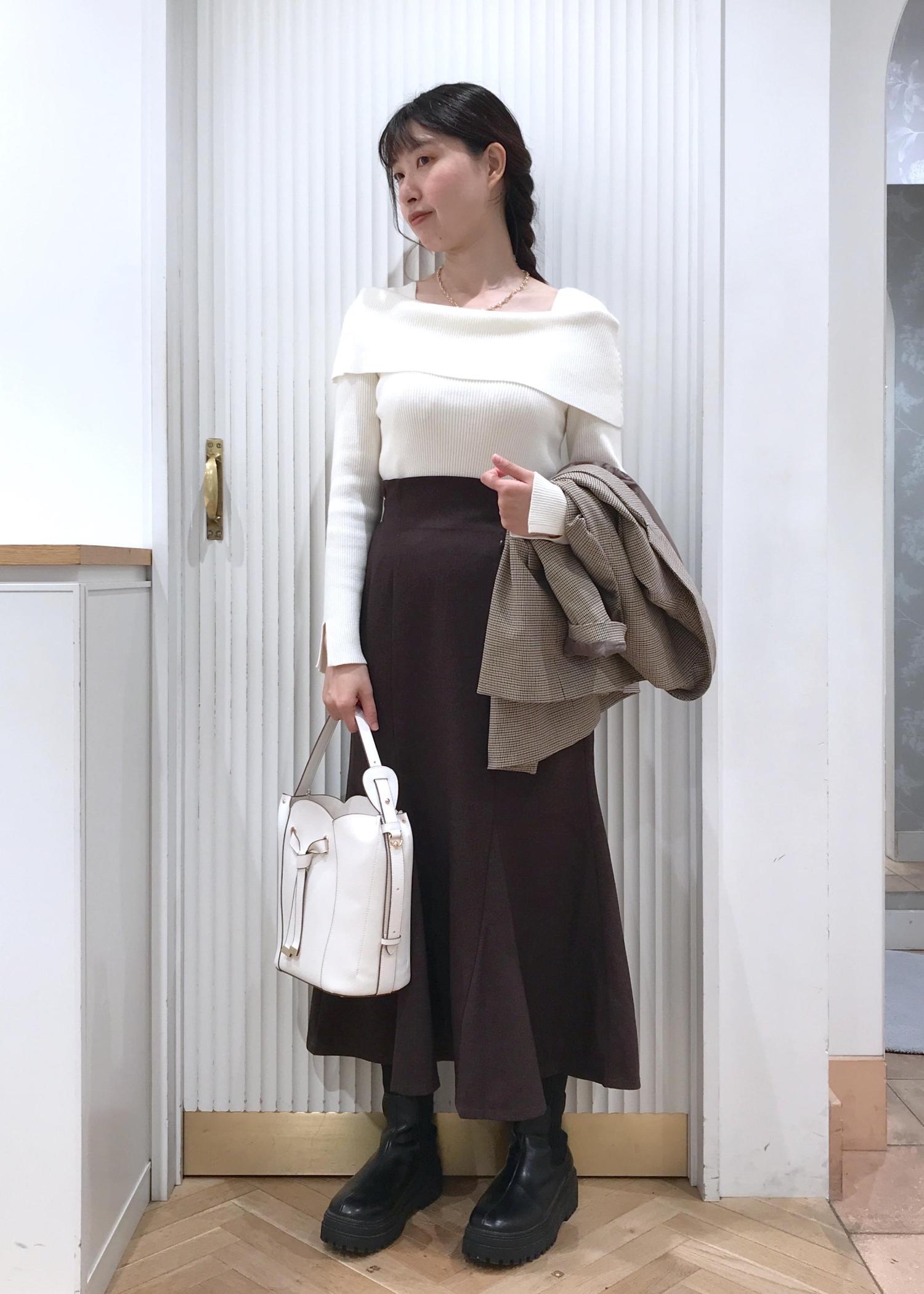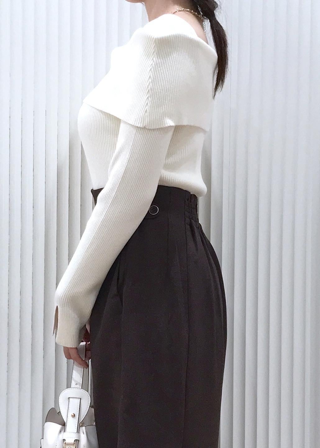 ニットはオフショル風なので、ジャケットを脱いでも可愛いです。