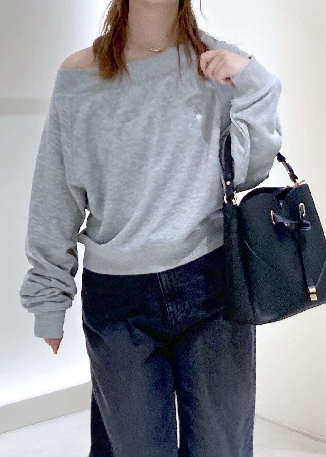 VIS【POLO BCS】VIS別注ワンショルダースウェットトップスグレー / F¥5,940レビュー155cmで腰くらいの丈感です。