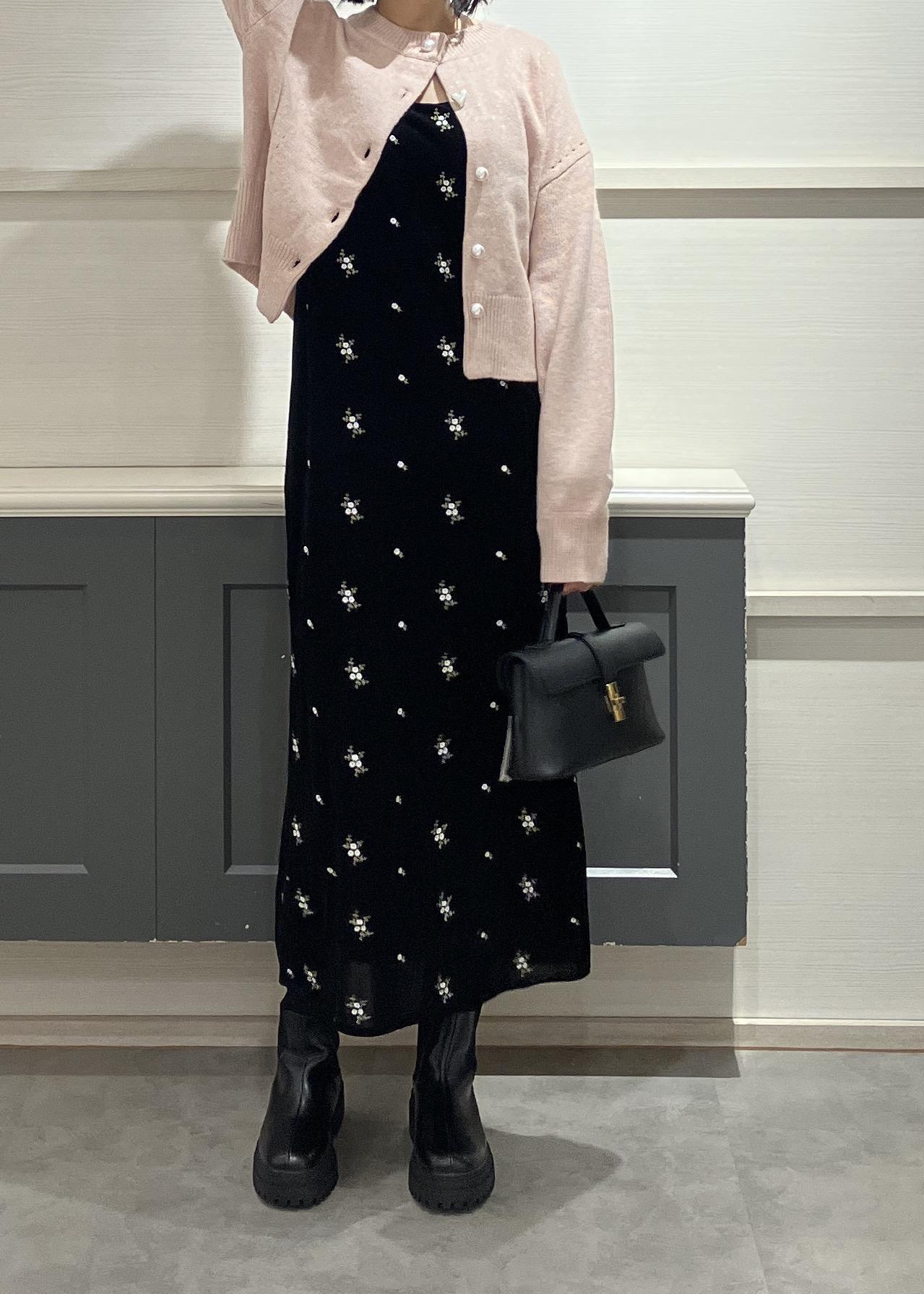 VIS刺繍アソートベロアキャミワンピース/2WAYブラック系 / F¥8,899レビュー身長168センチで足首にかかる長さですが調節出来るので、短くも長くもお好みで合わせることが出来るので嬉しいです♡