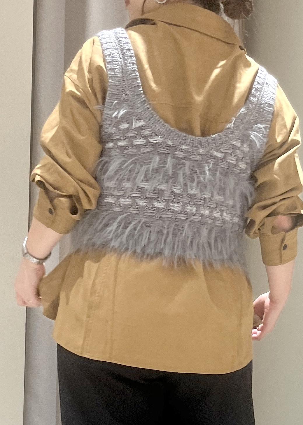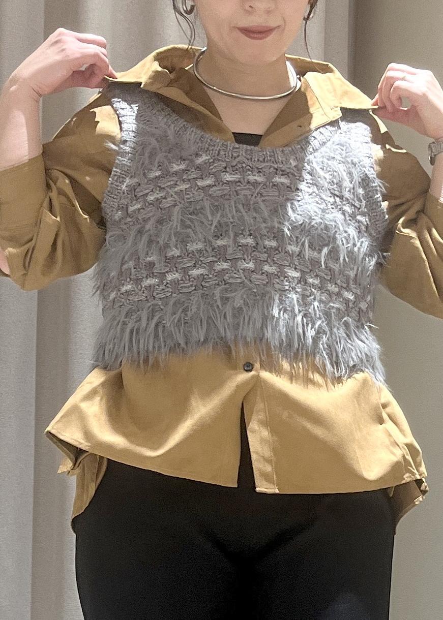 VISフェザーツイードニットビスチェ/2WAYグレー / F¥5,489レビューニット素材なので柔らかく、伸縮するので着脱もラクなベストです。