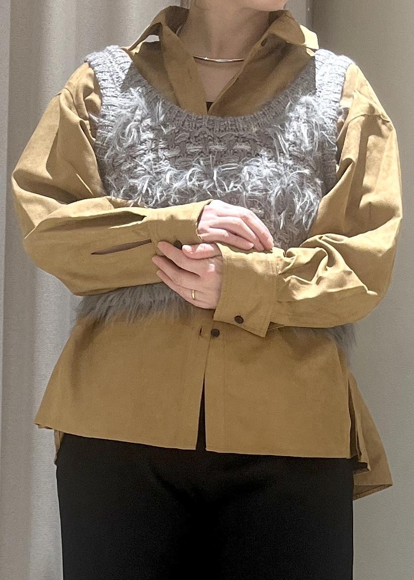 VISスエードライクロングスリーブシャツキャメル系 / F¥4,843レビュースウェードなので季節感が出ておしゃれ見えするシャツ!