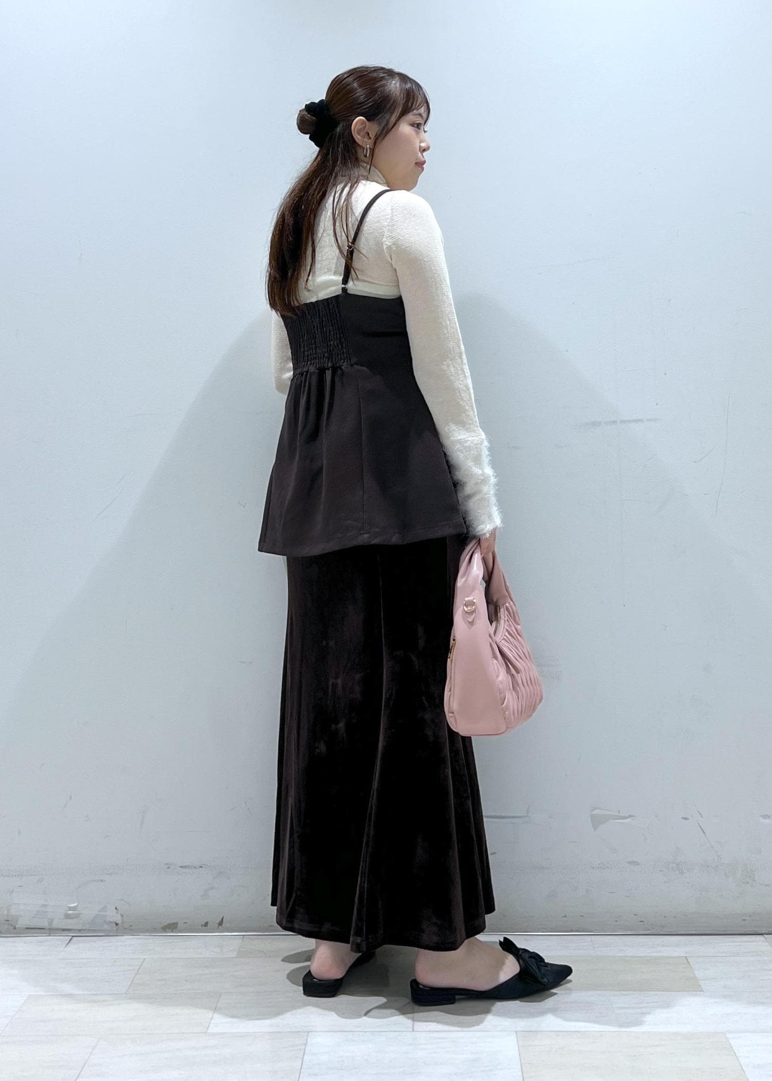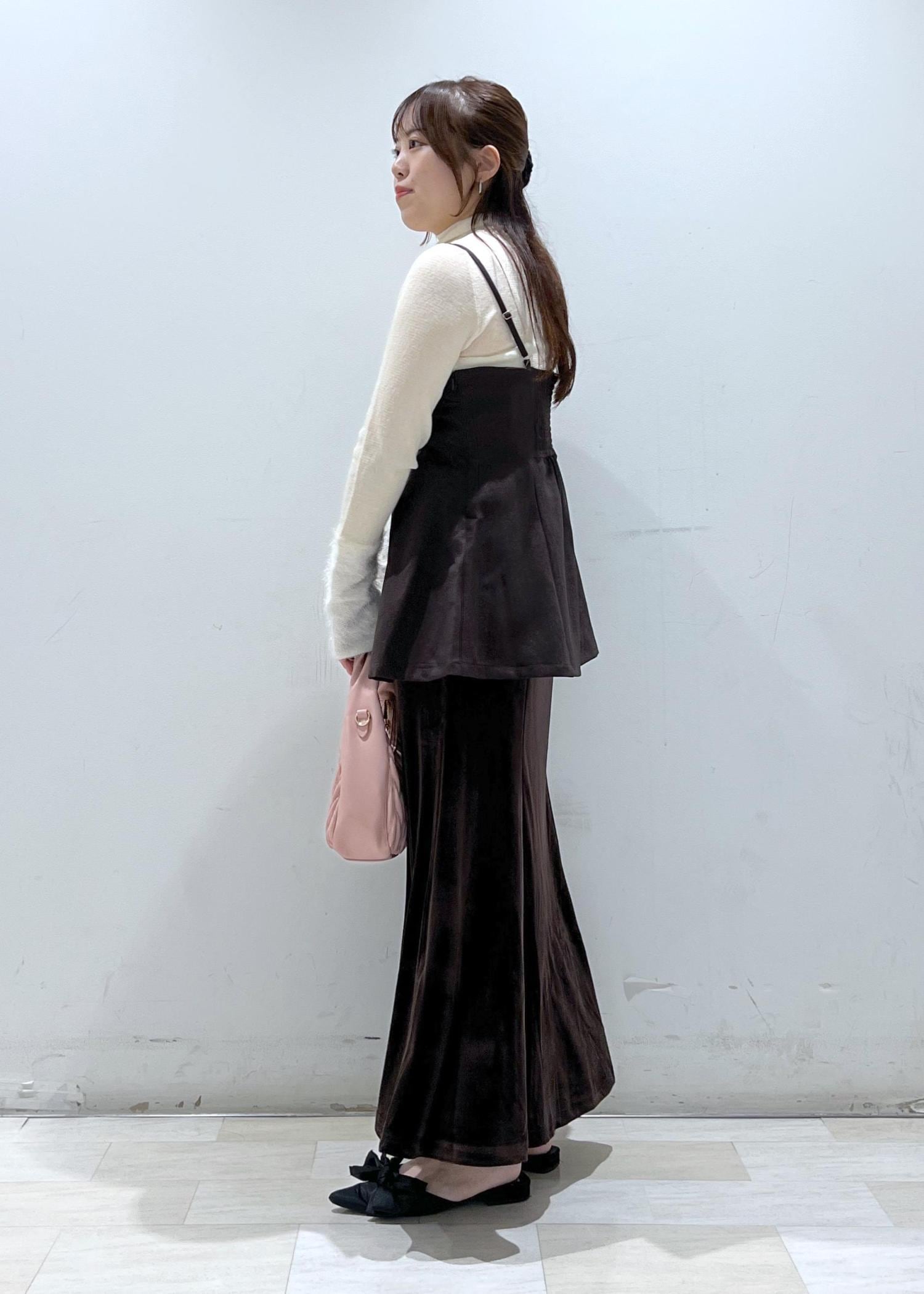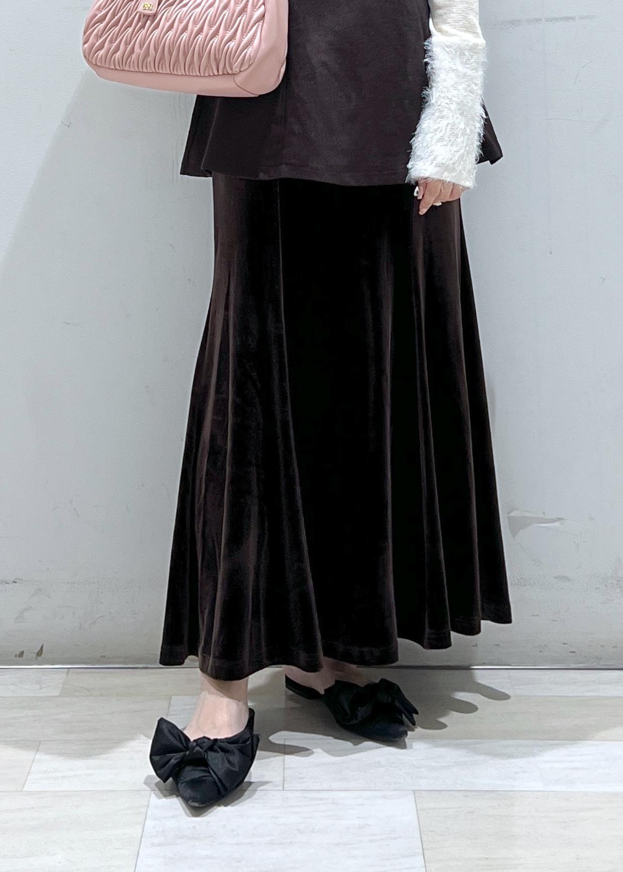 VISベロアナロースカートダークブラウン / M¥6,589レビュー上品な光沢がスタイリングを華やかにするベロアスカートです!
